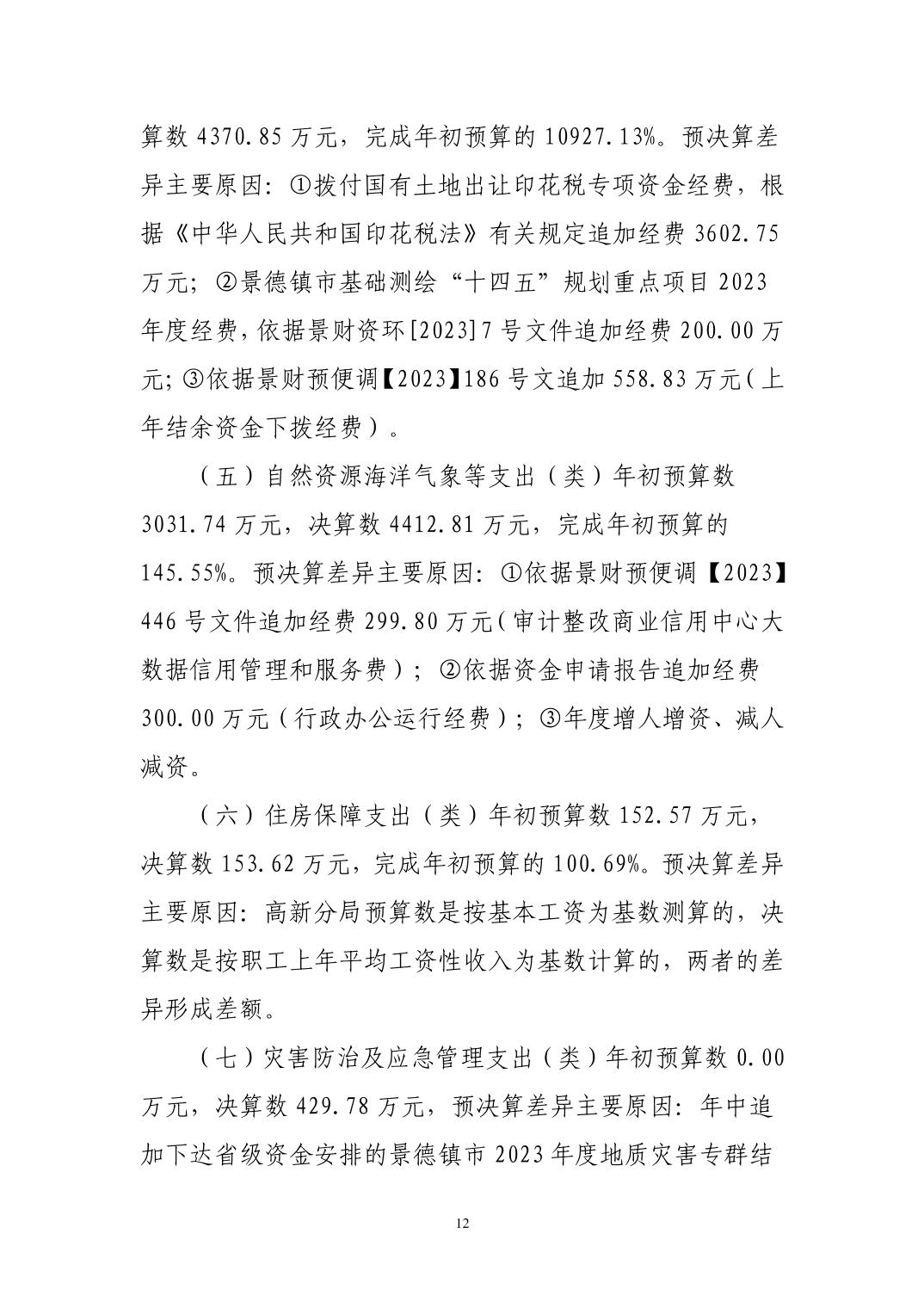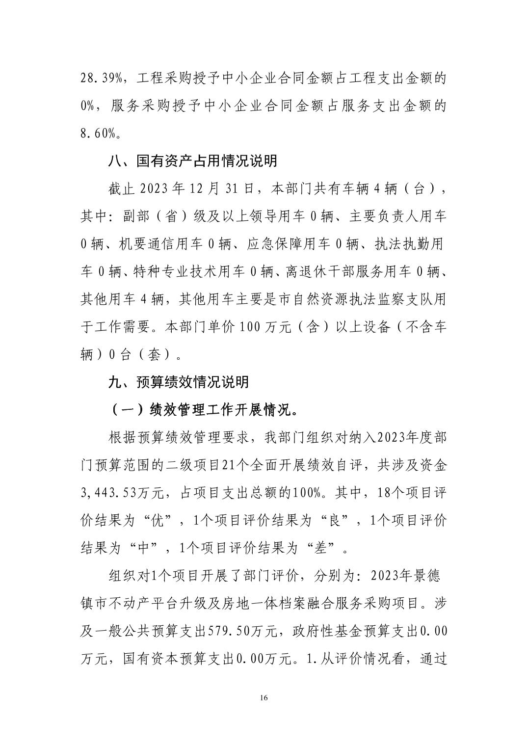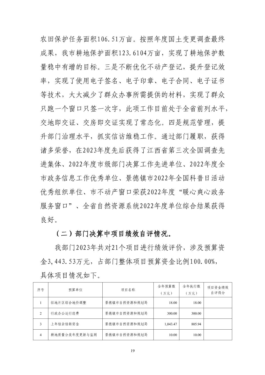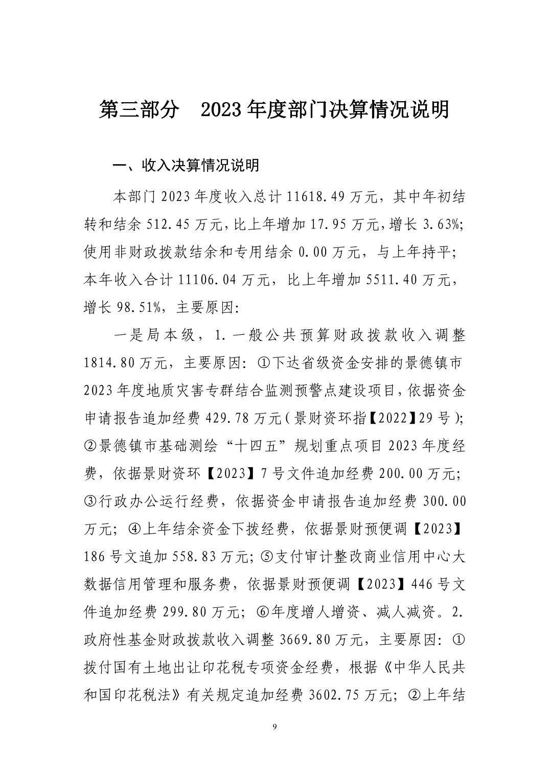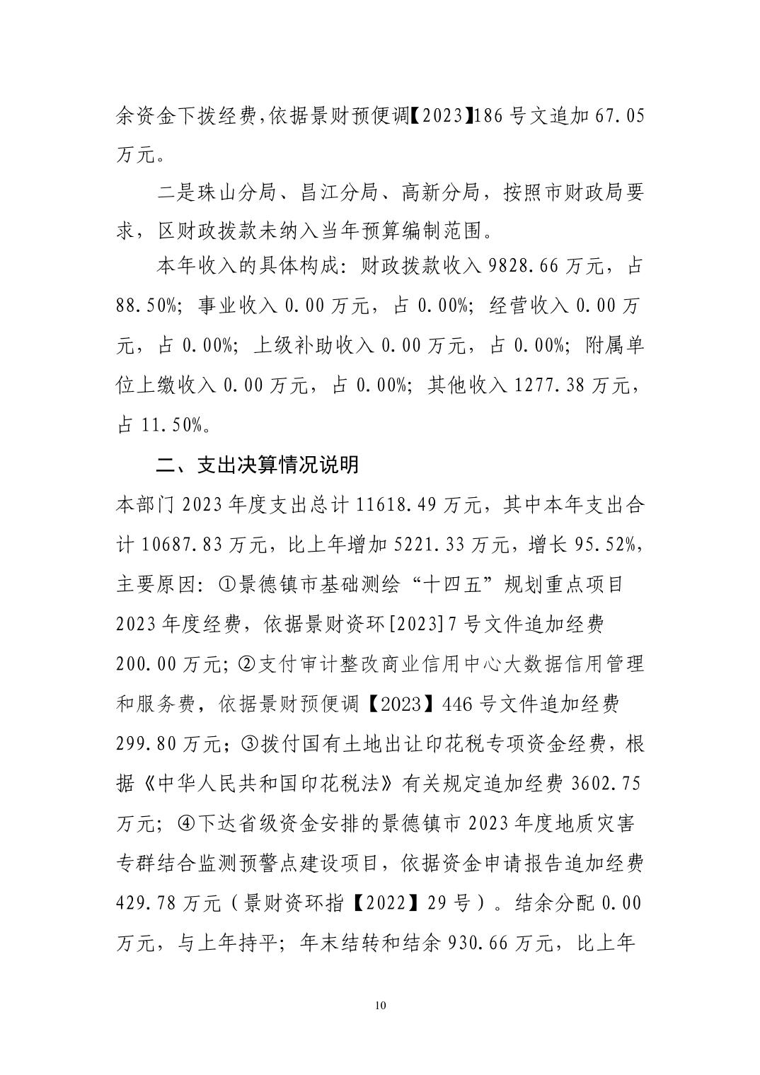 景德镇市自然资源和规划局2023年决算