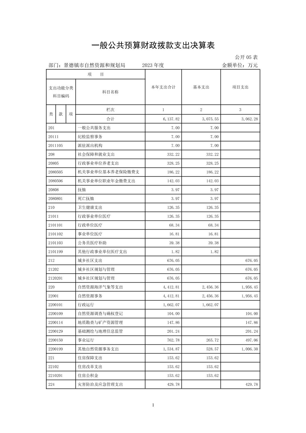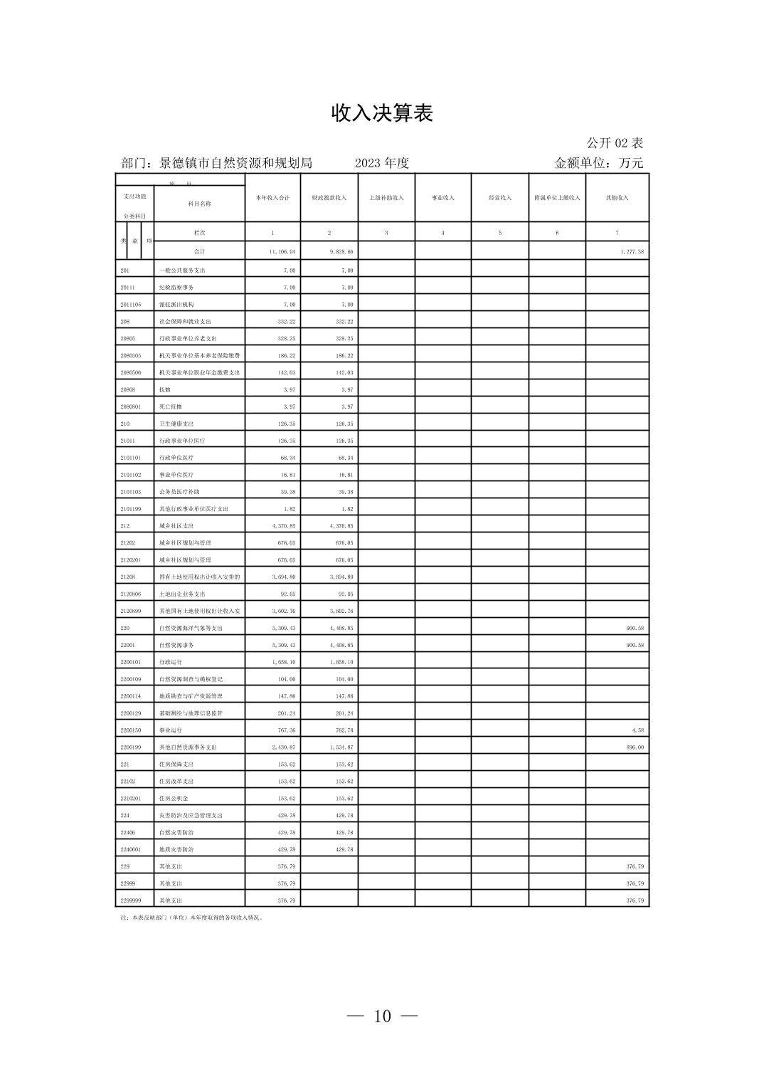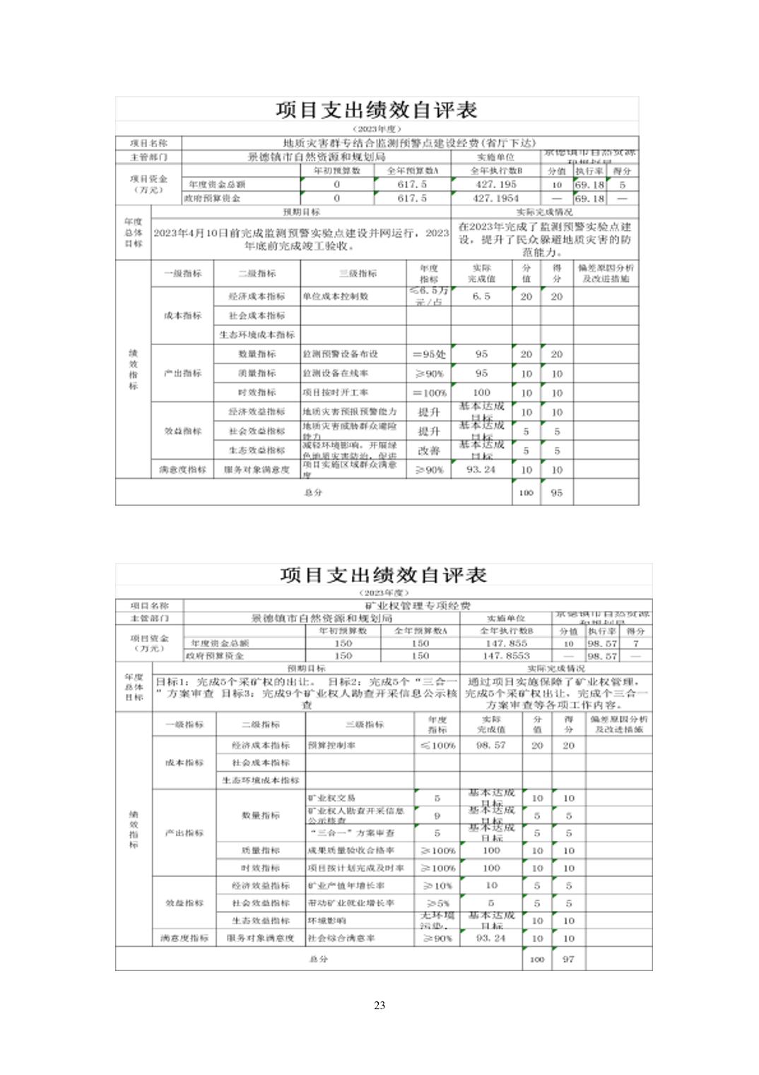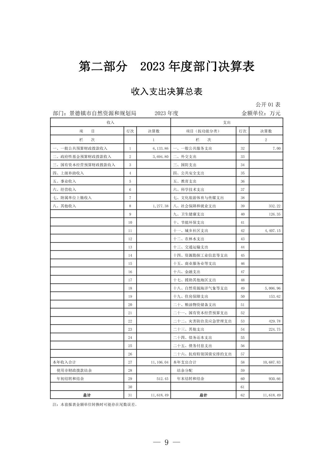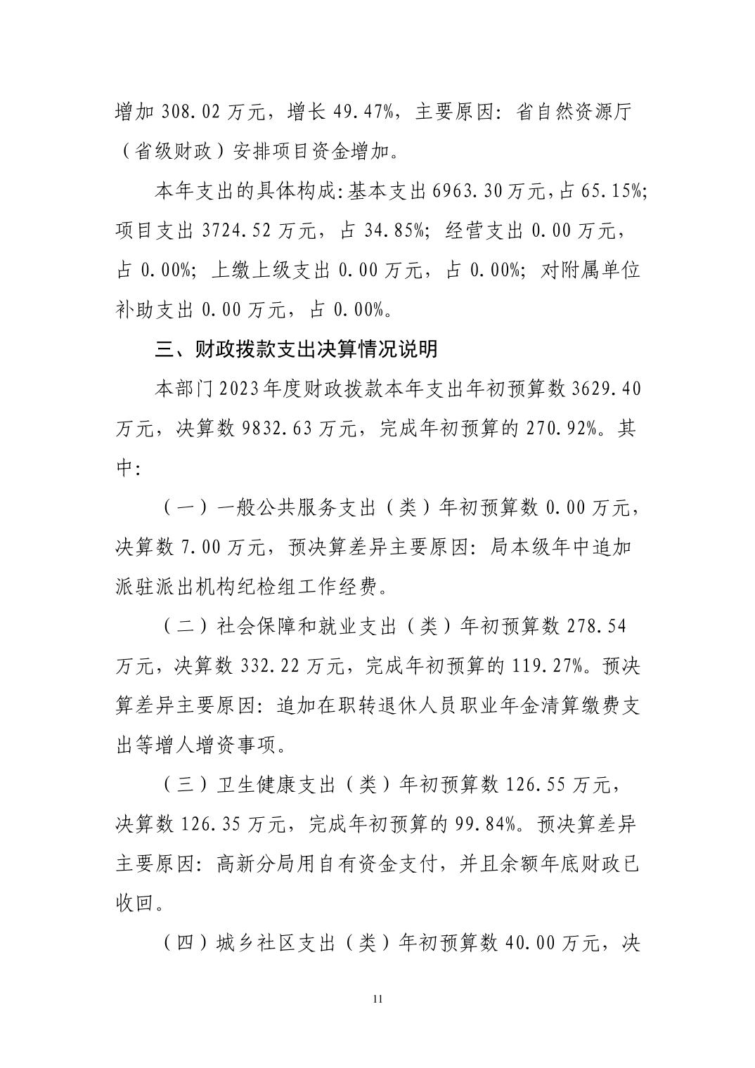 景德镇市自然资源和规划局2023年决算