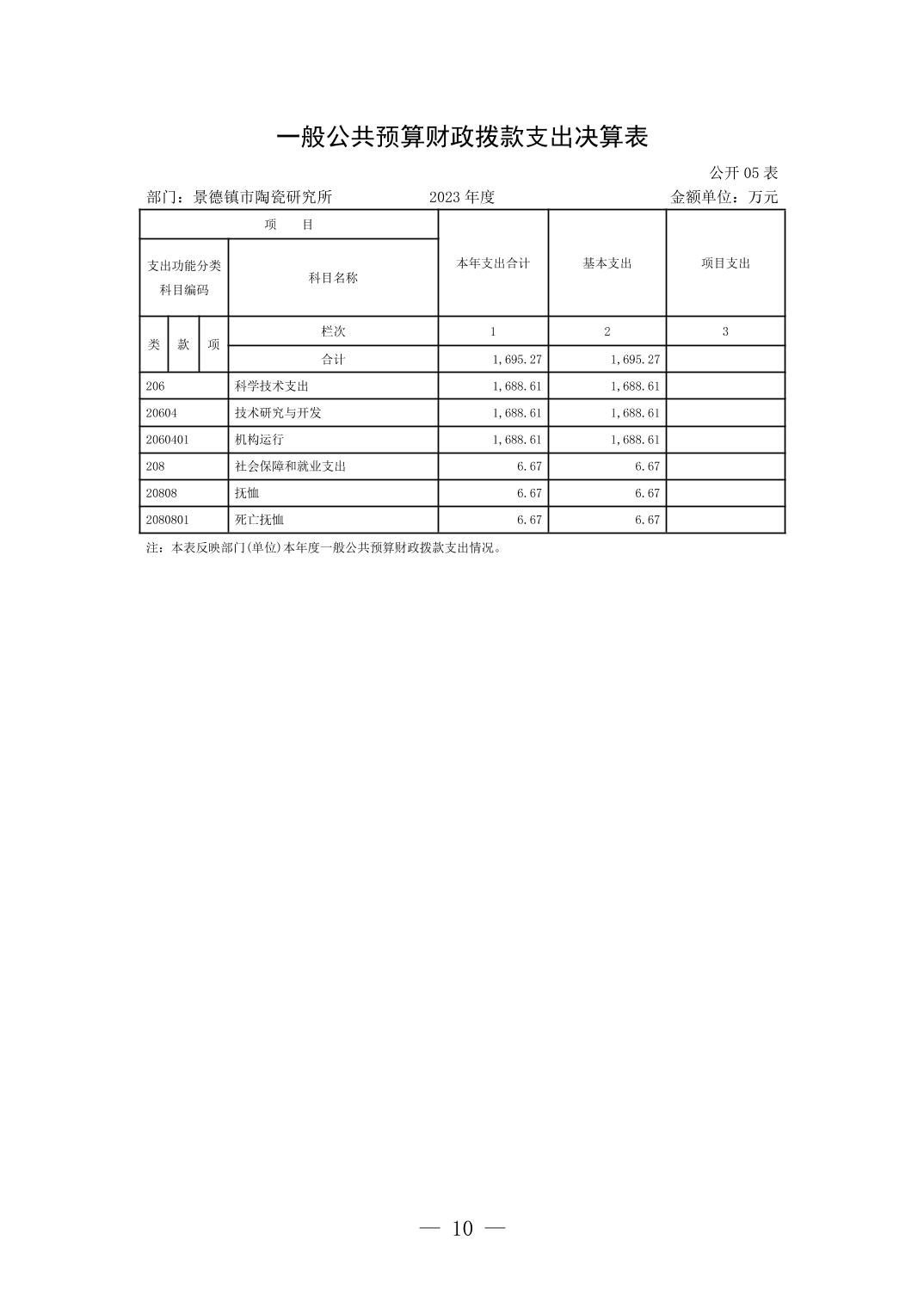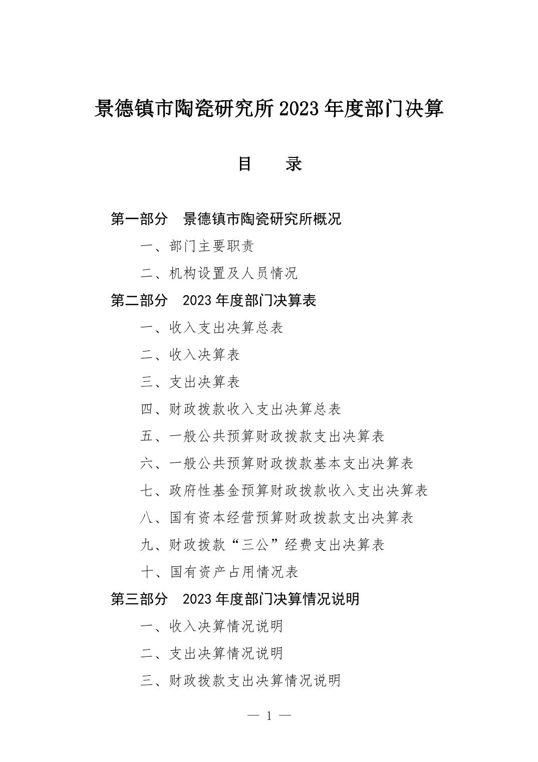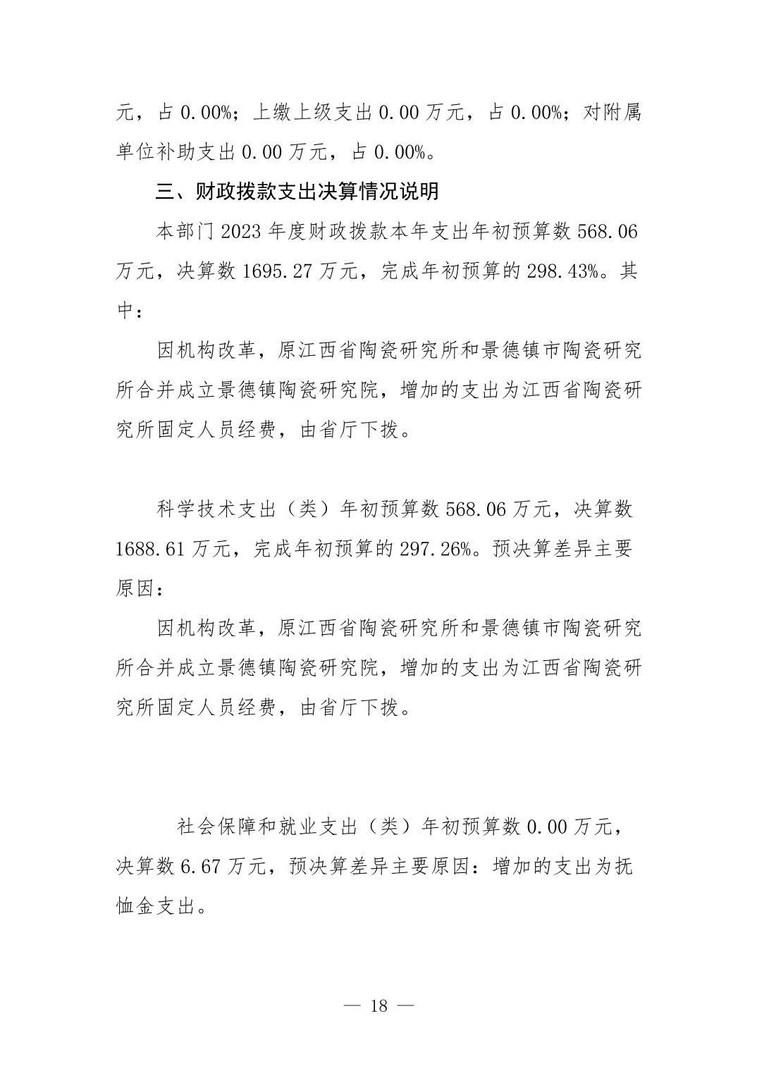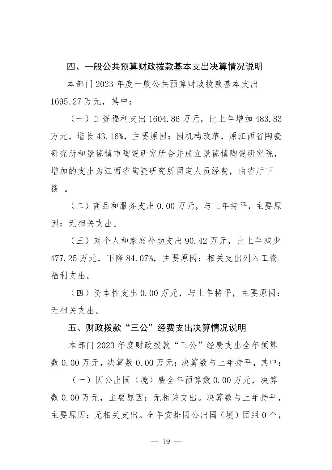 景德镇市陶瓷研究所2023年部门决算公开
