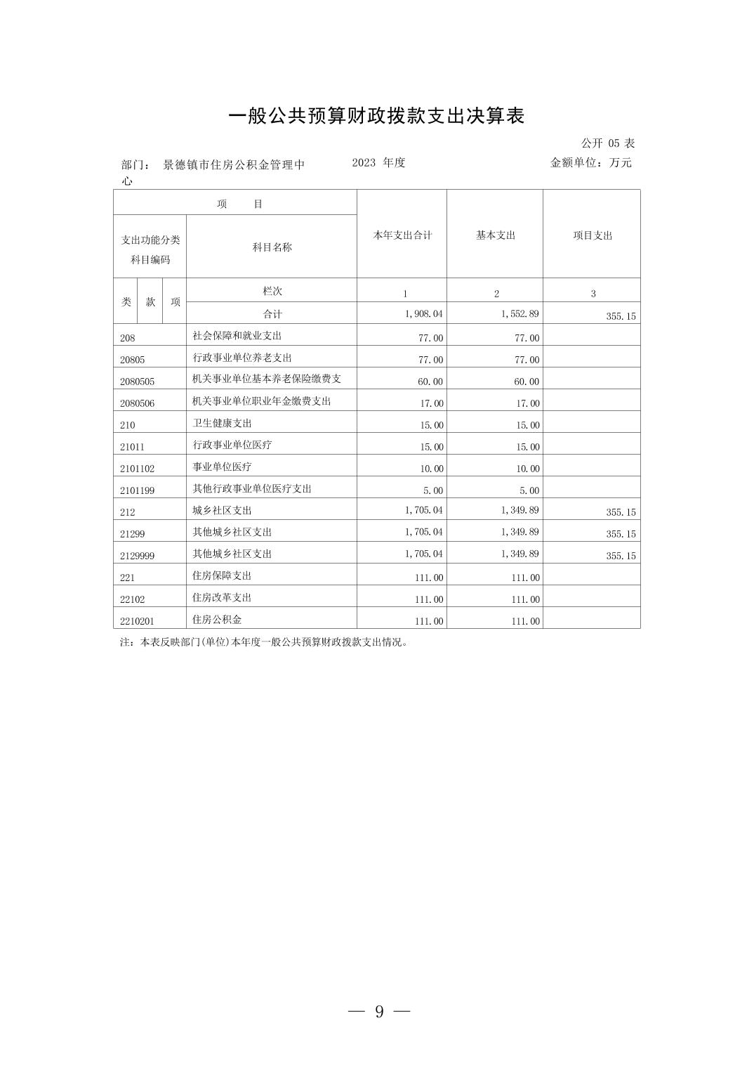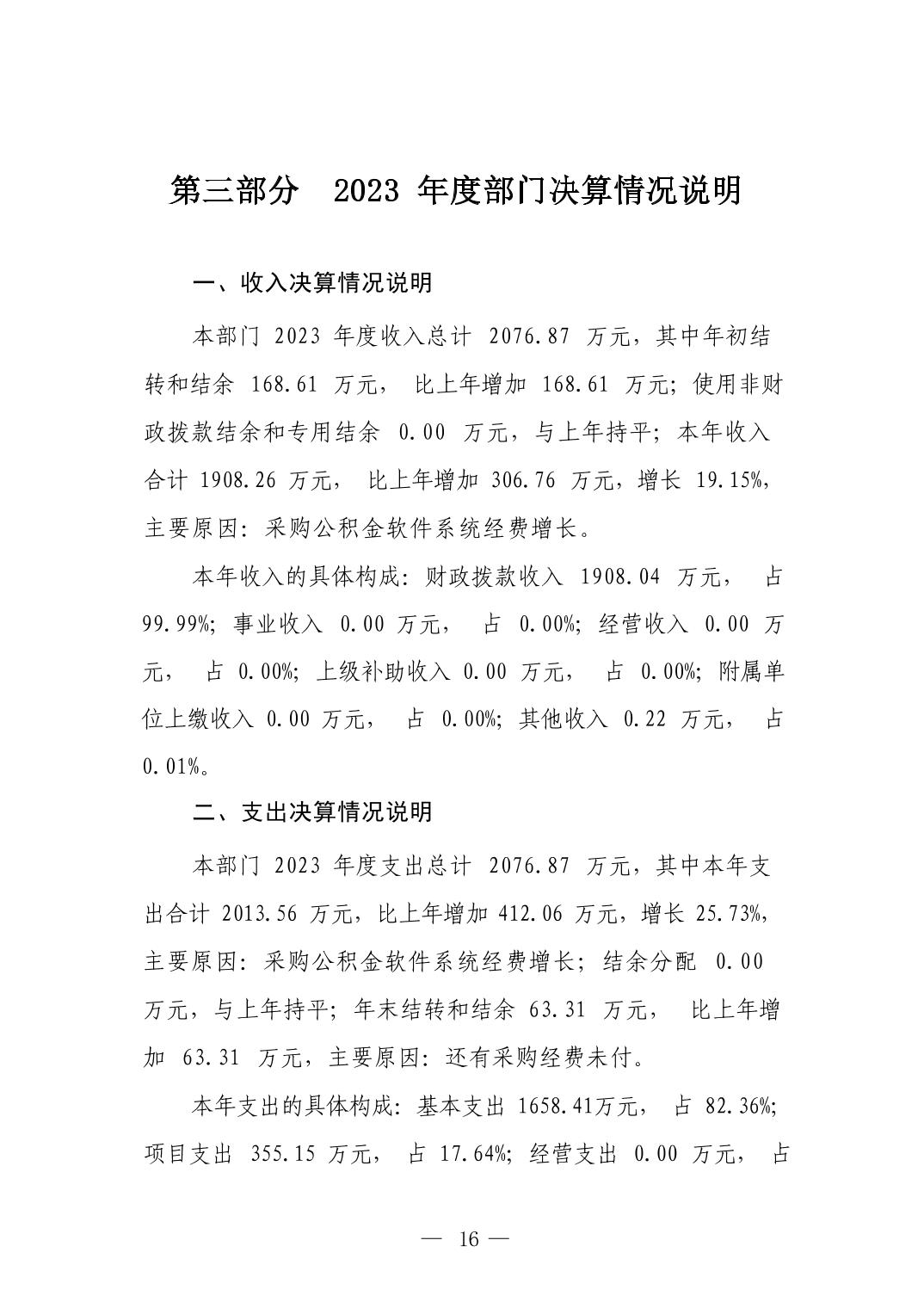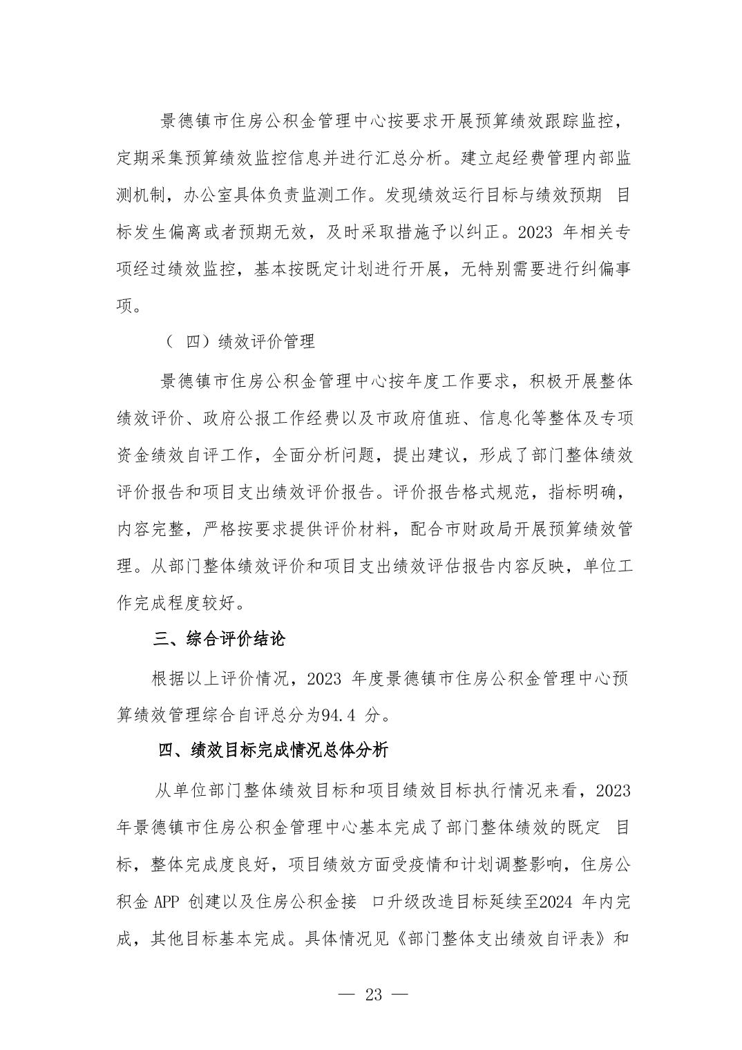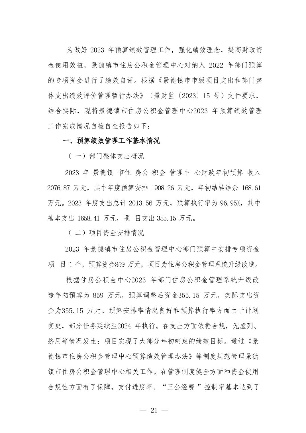 景德镇市住房公积金管理中心2023年部门决算公开报告