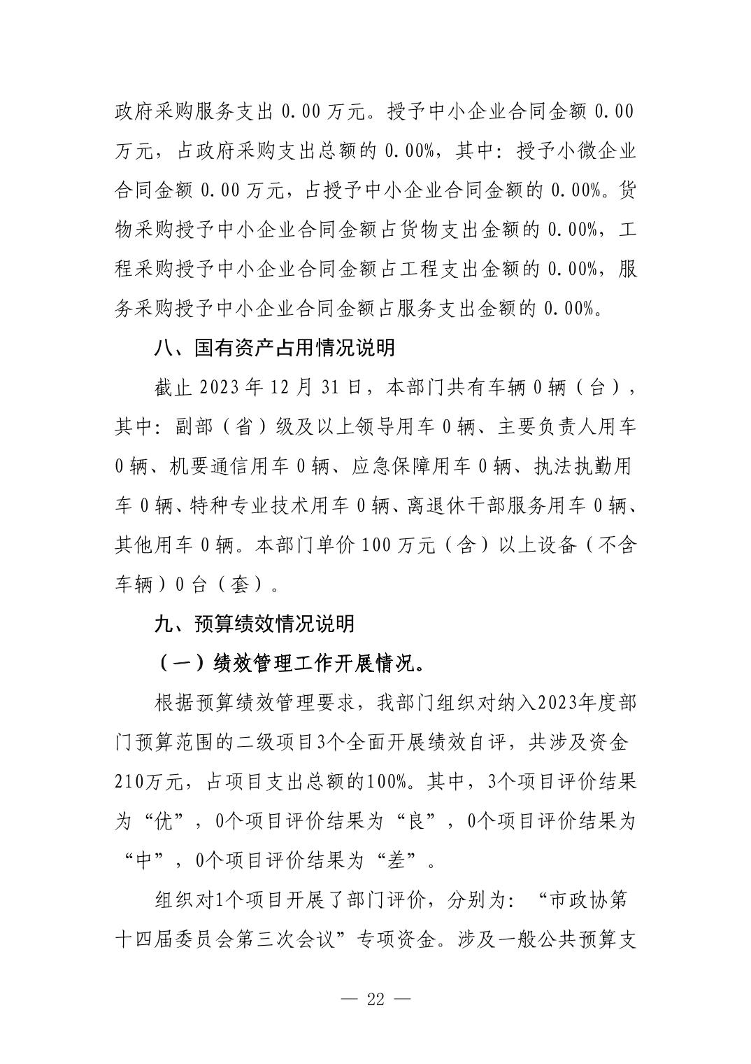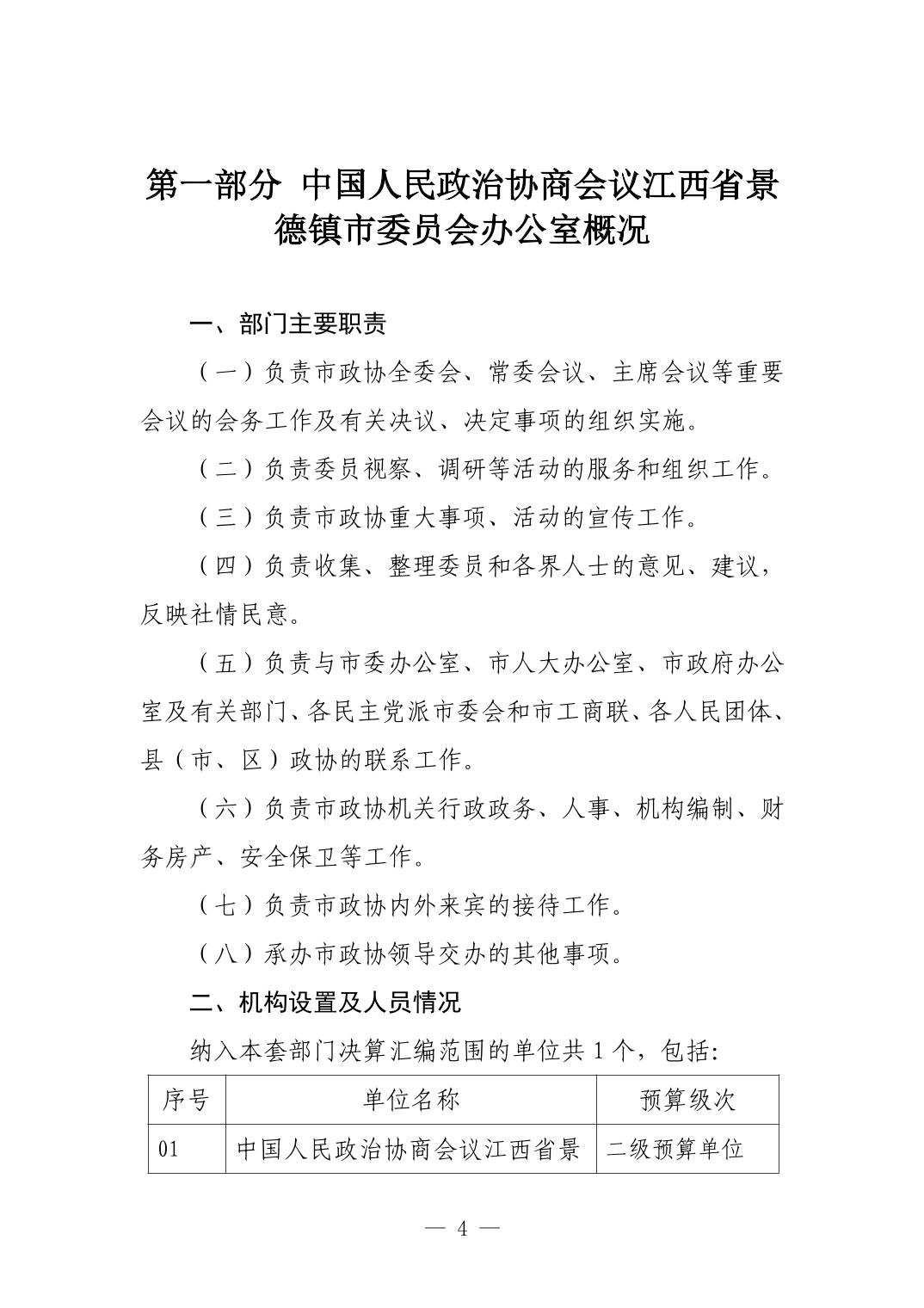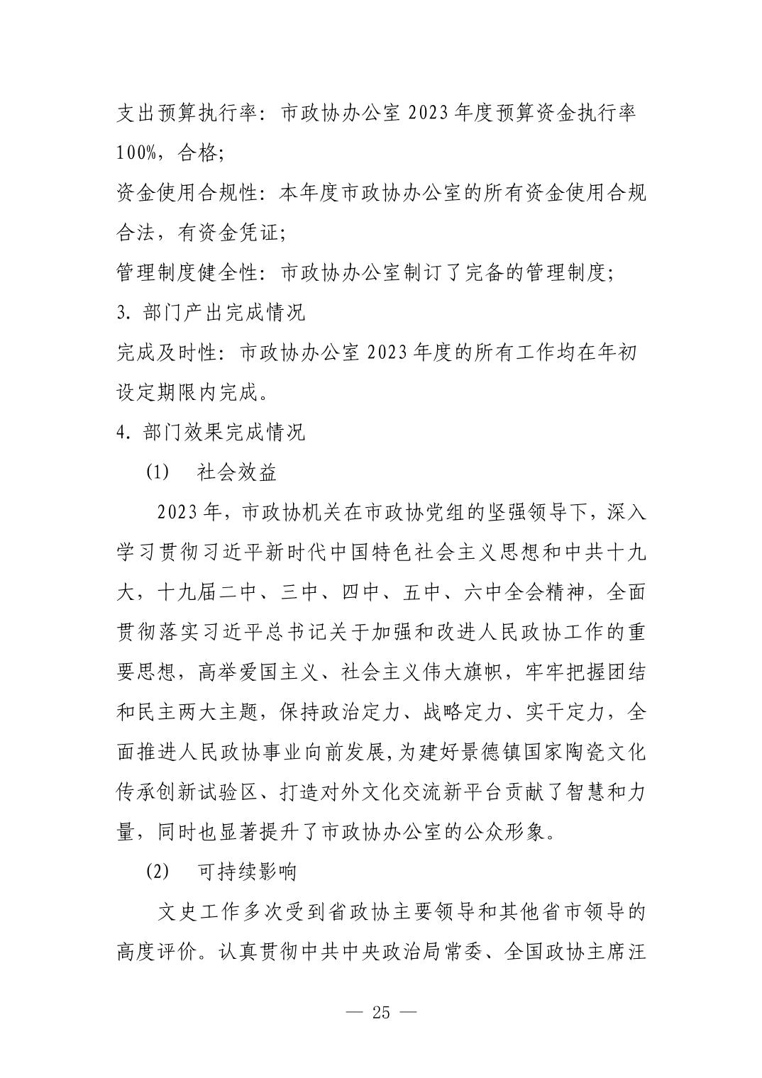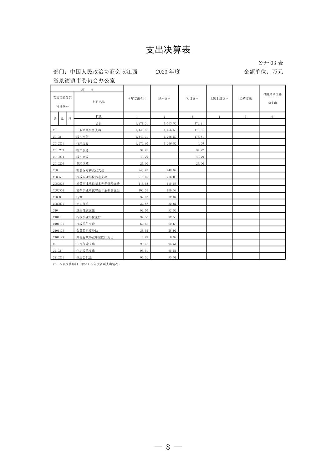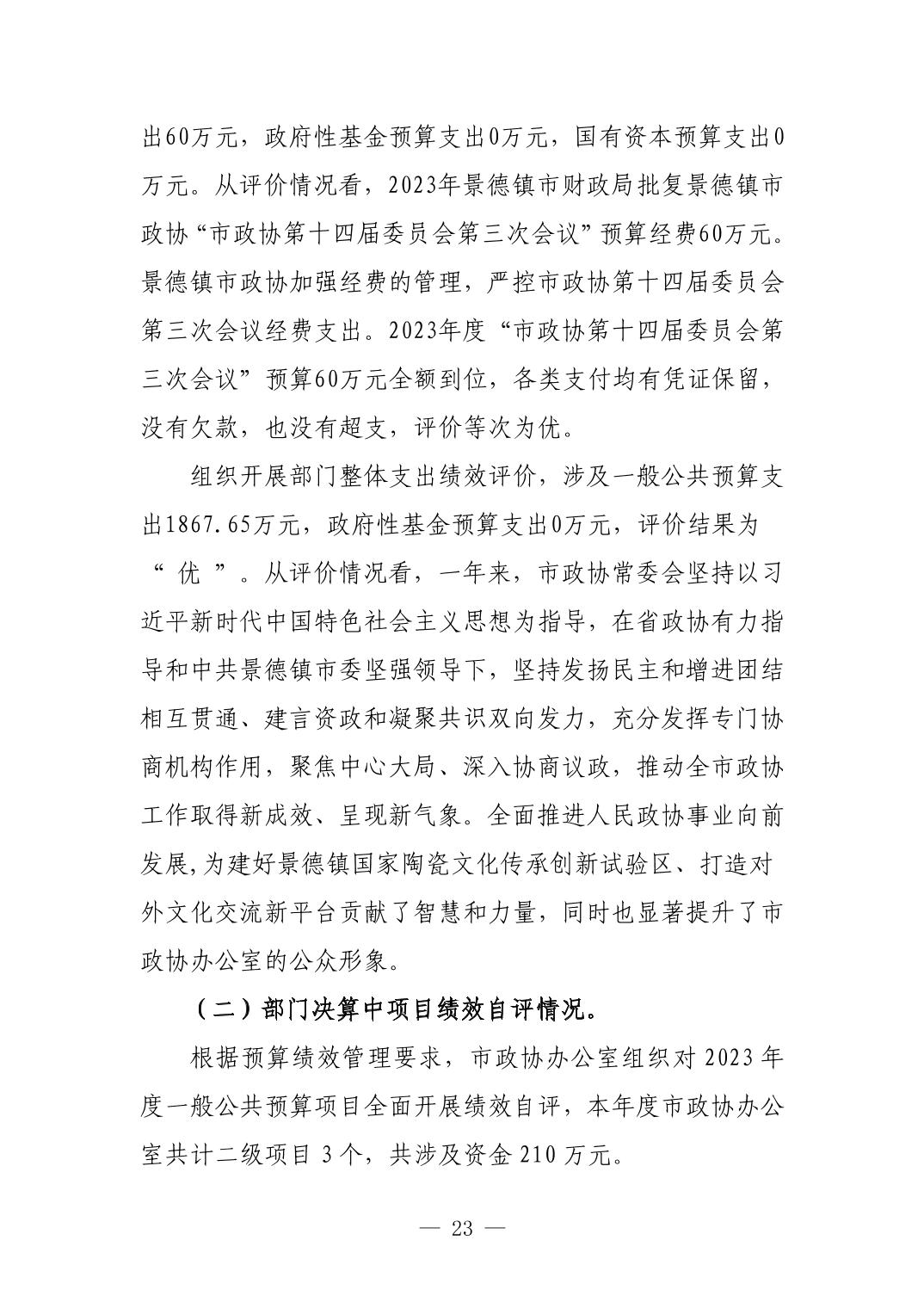 中国人民政治协商会议江西省景德镇市委员会办公室2023年部门决算