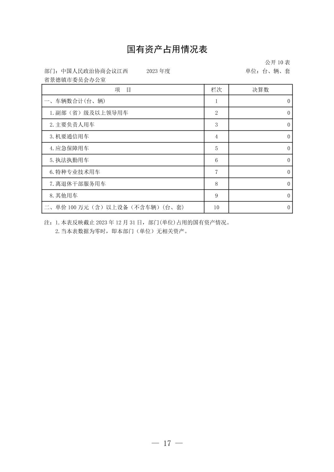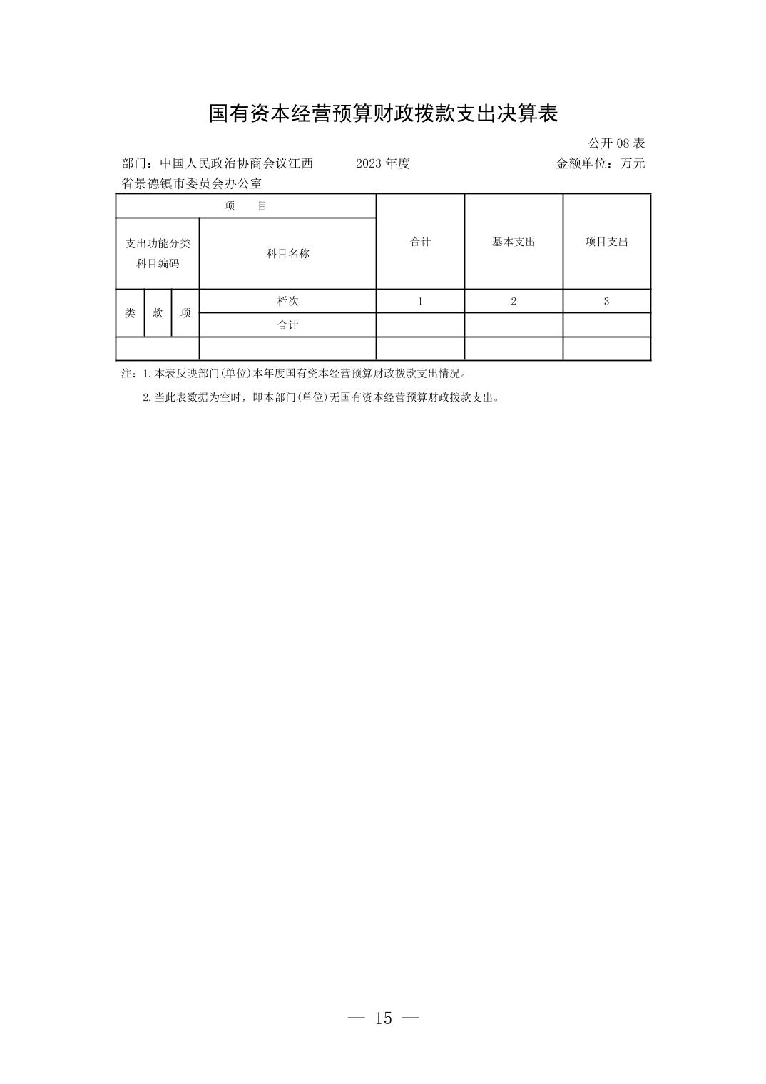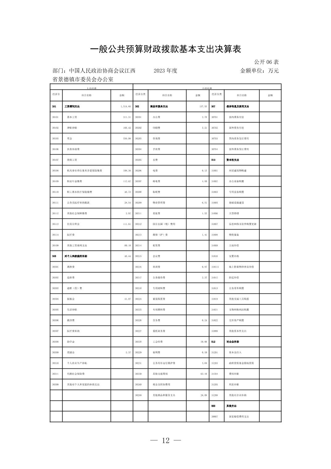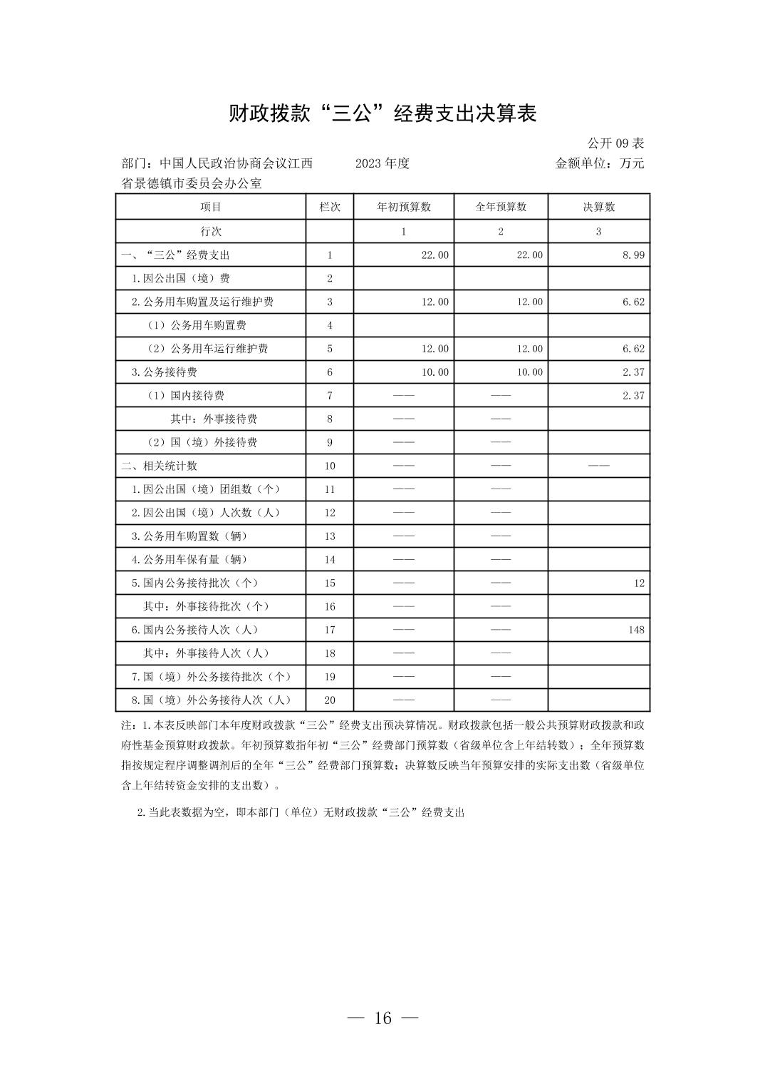 中国人民政治协商会议江西省景德镇市委员会办公室2023年部门决算