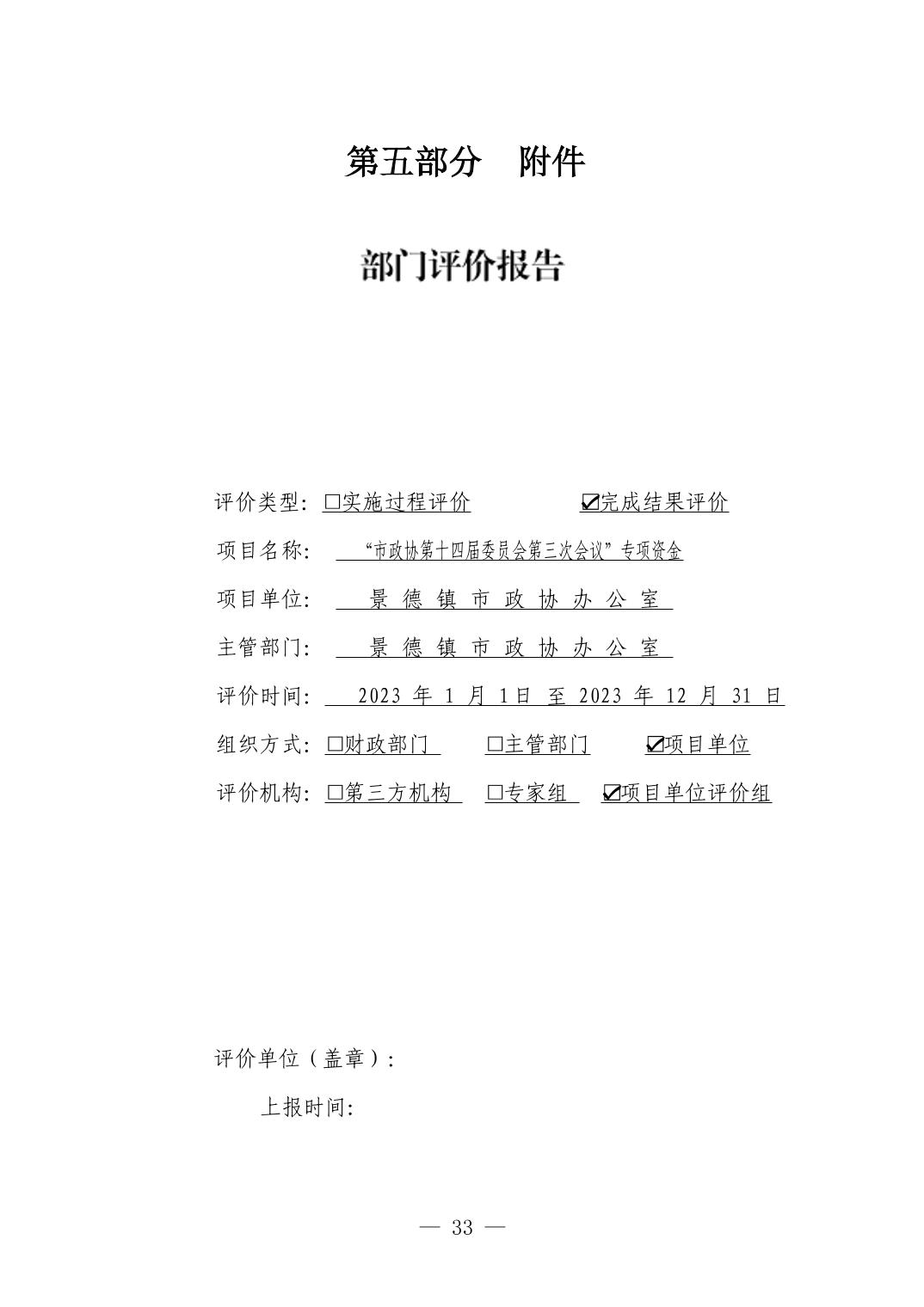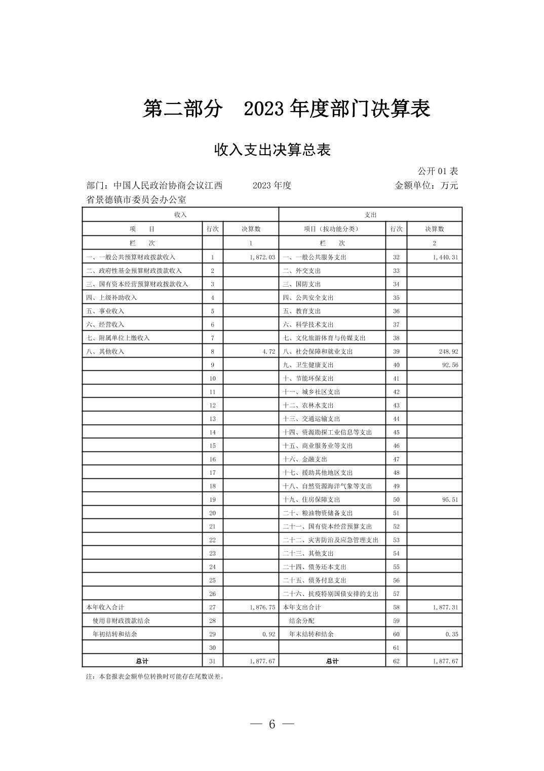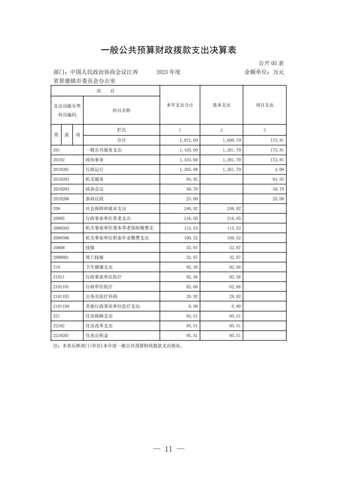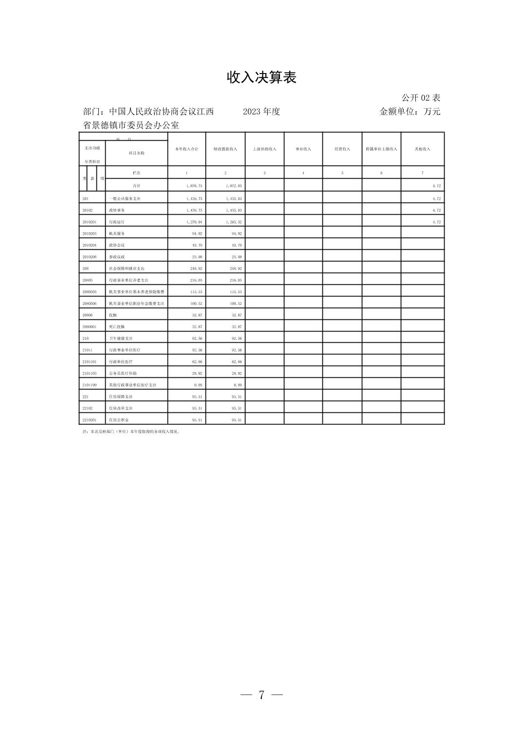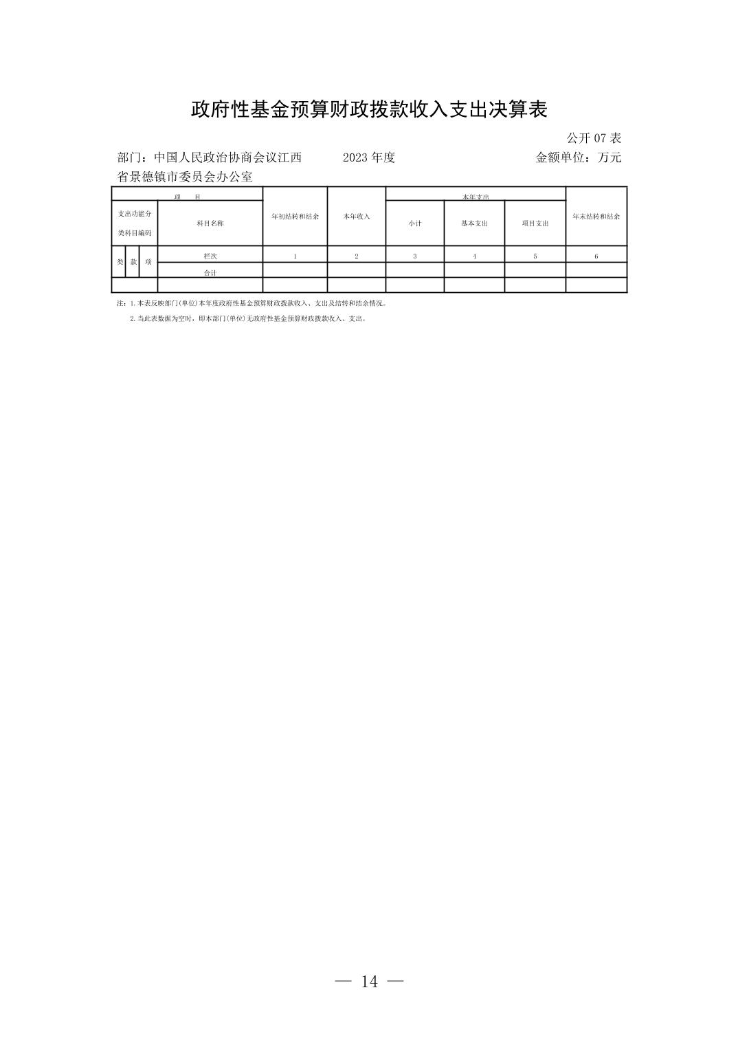 中国人民政治协商会议江西省景德镇市委员会办公室2023年部门决算