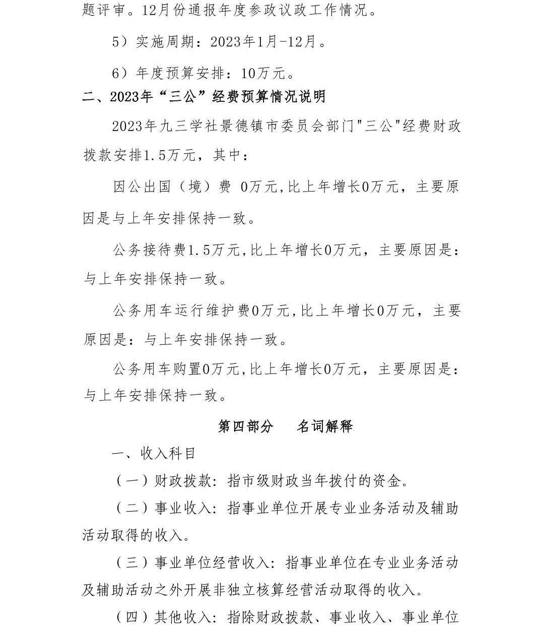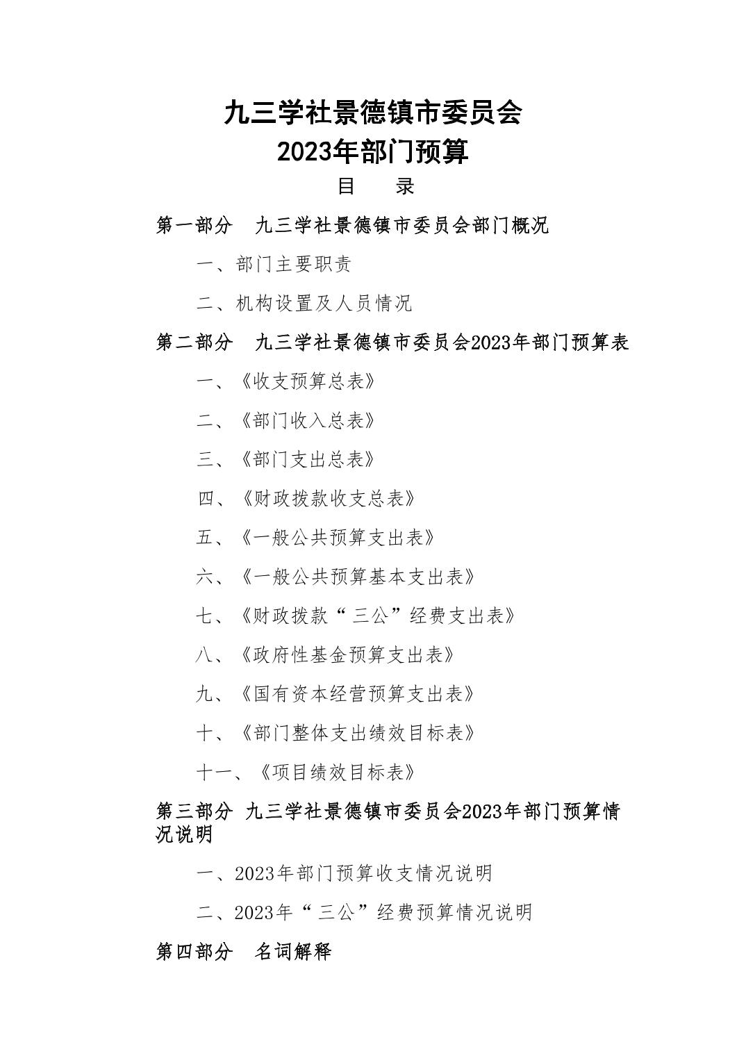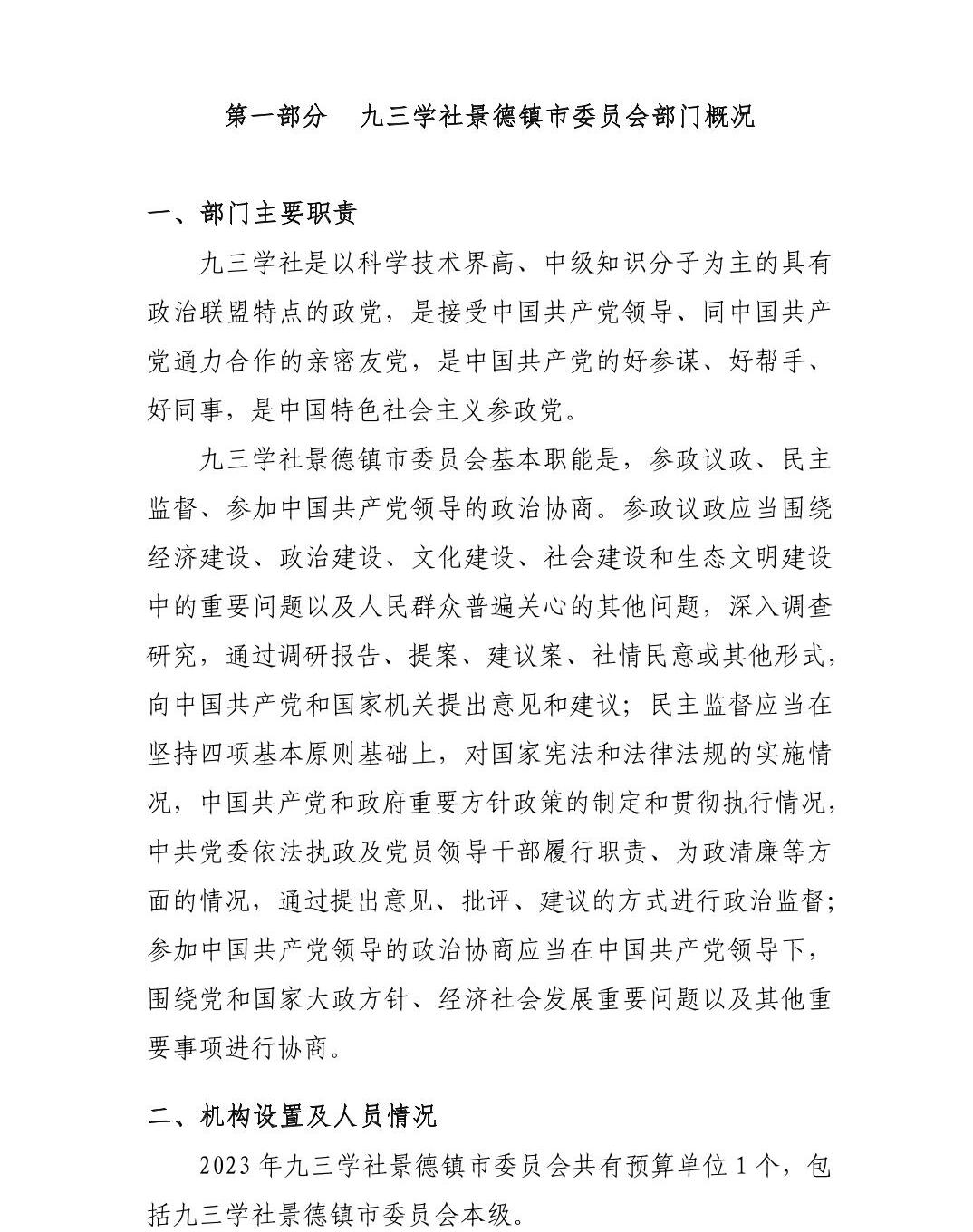 九三学社景德镇市委员会2023年部门预算编制说明