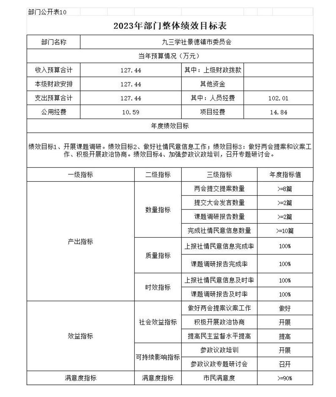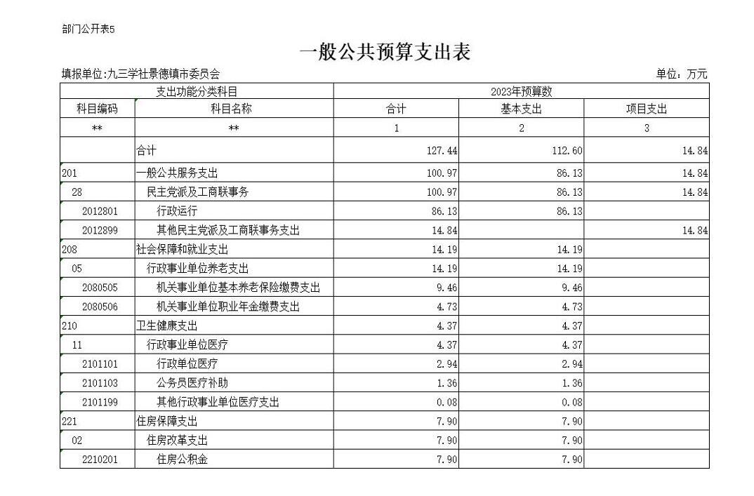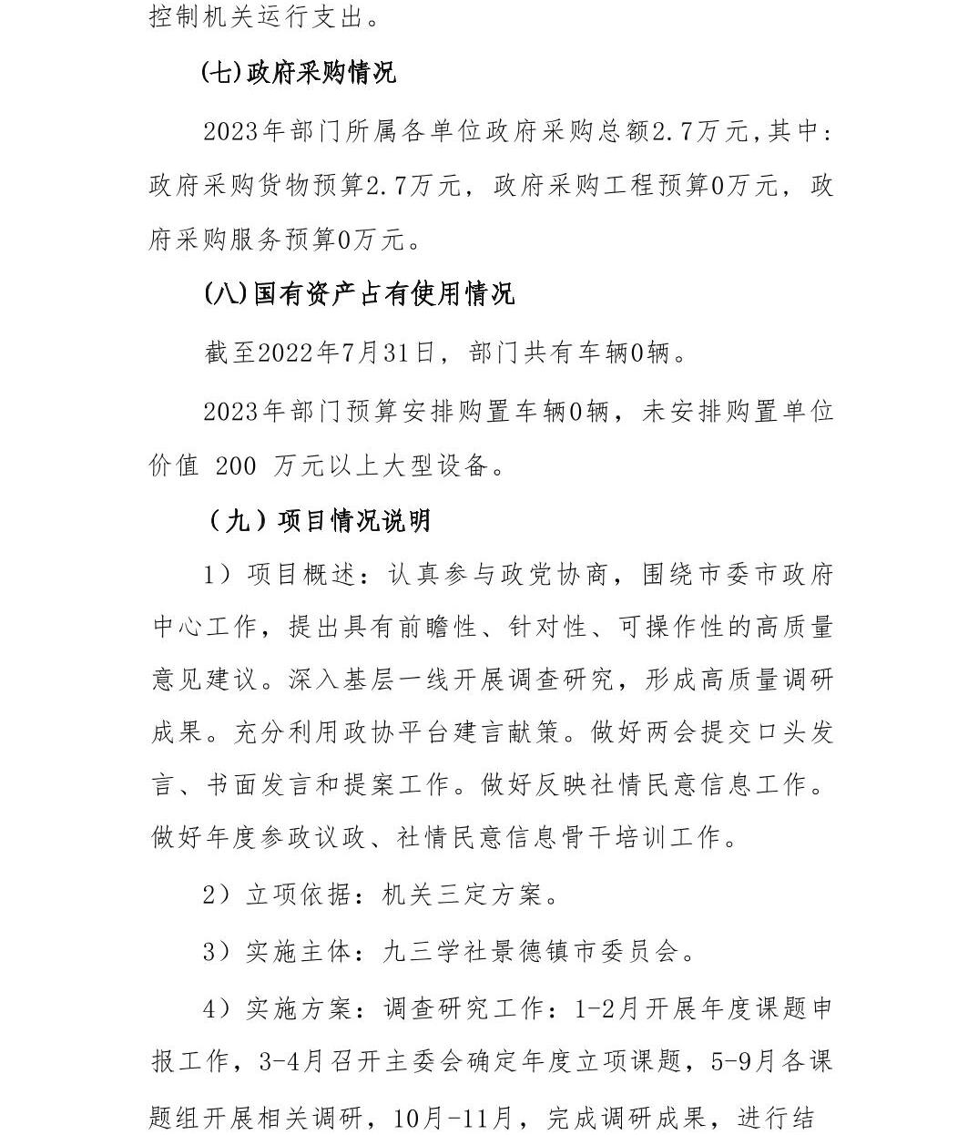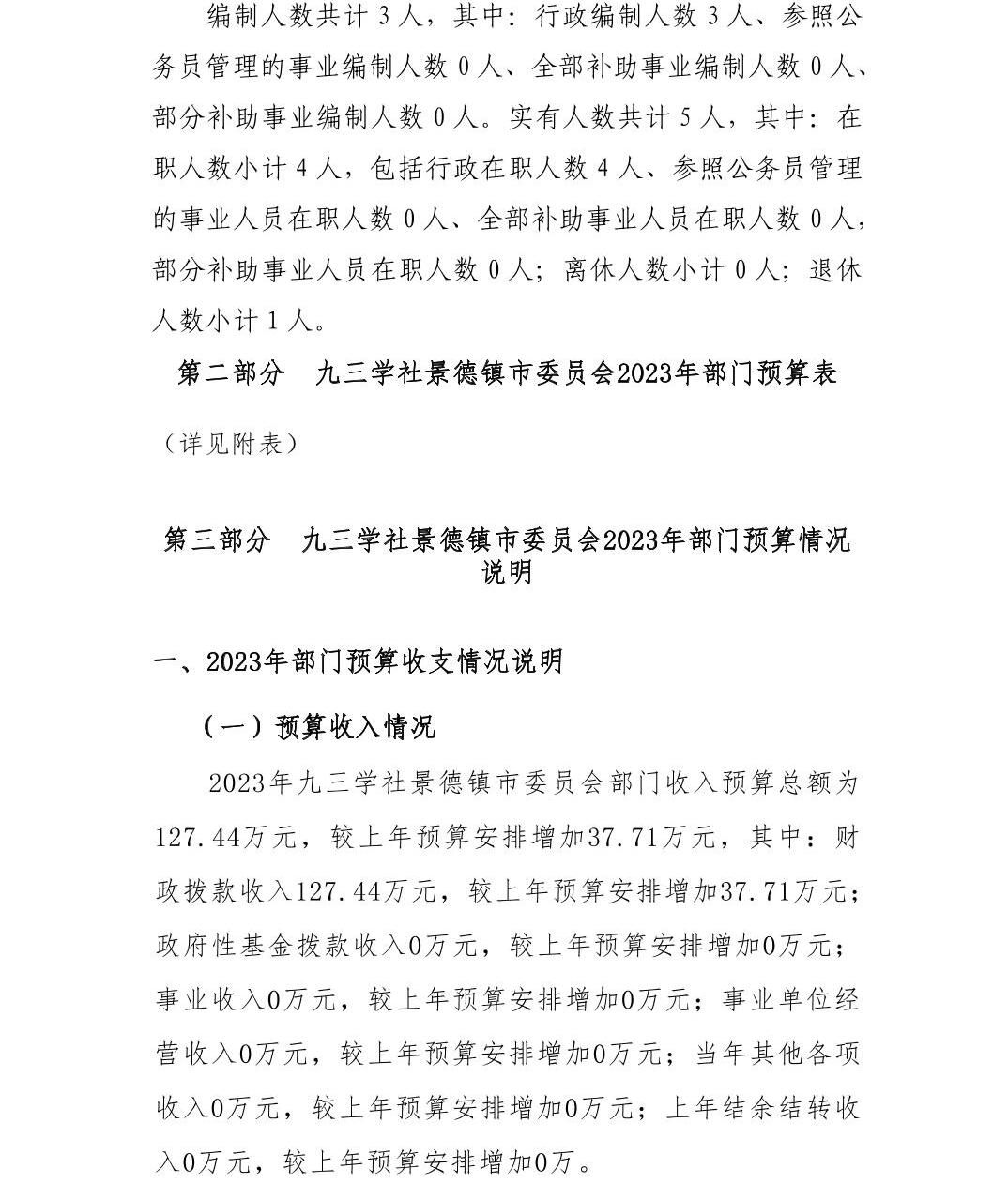 九三学社景德镇市委员会2023年部门预算编制说明