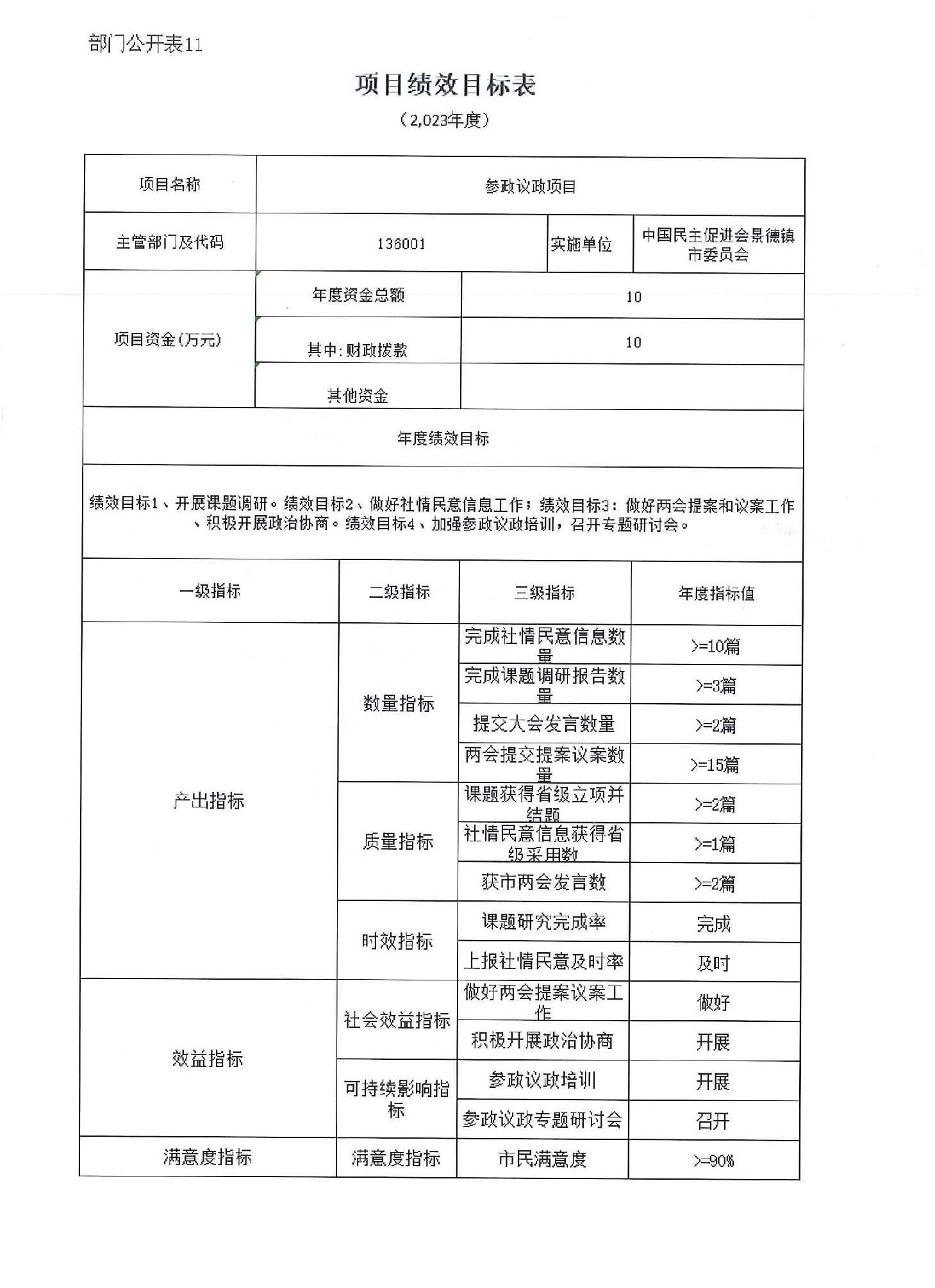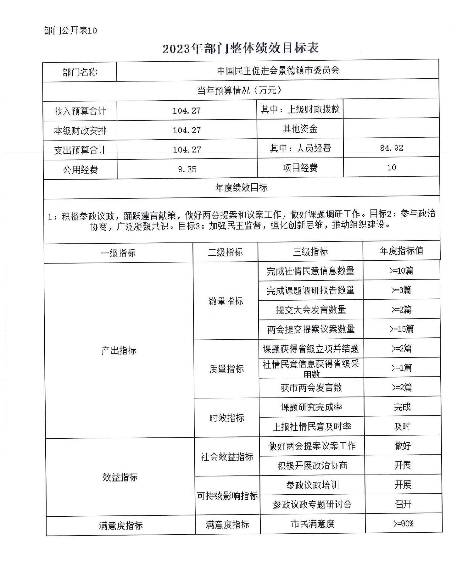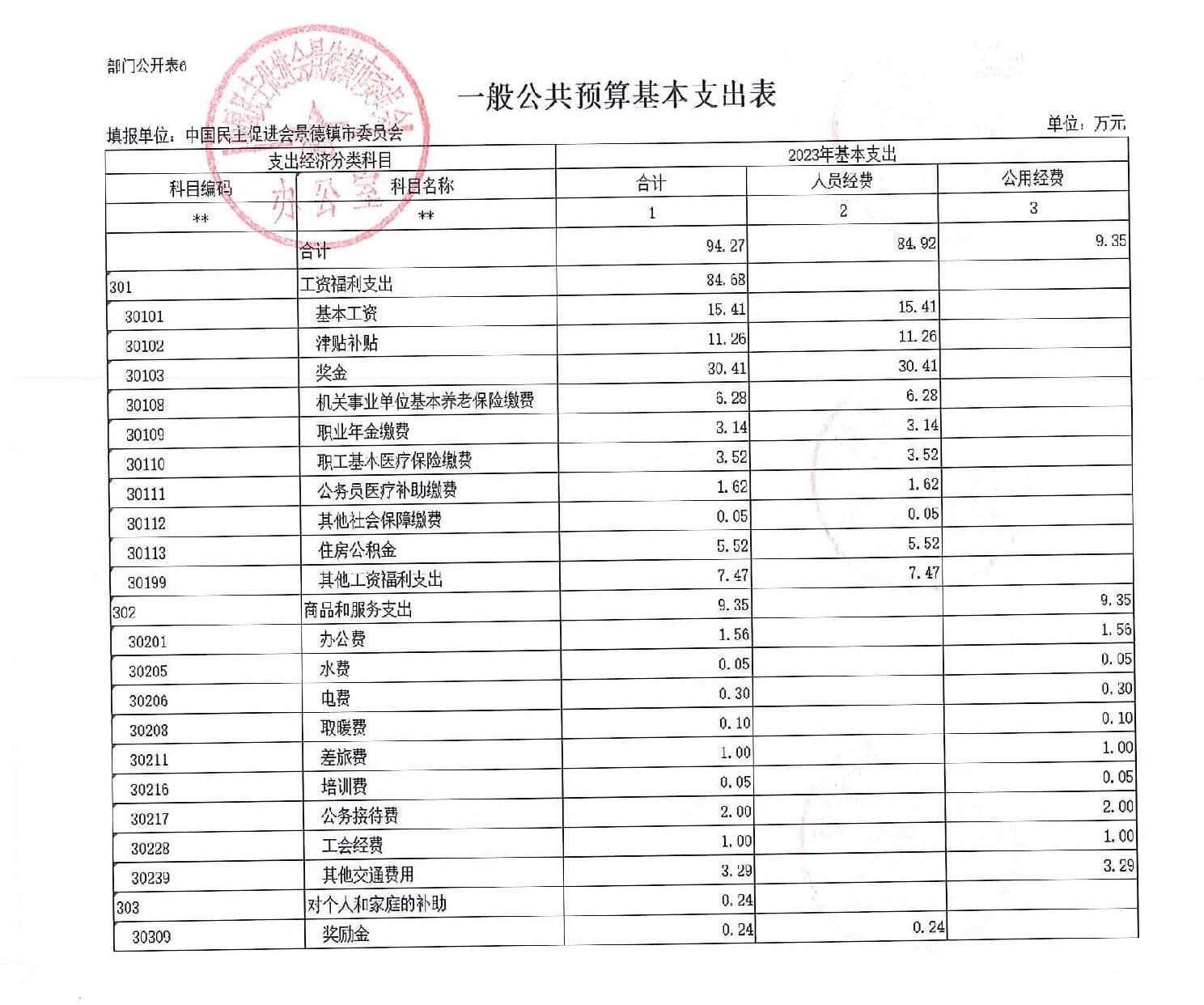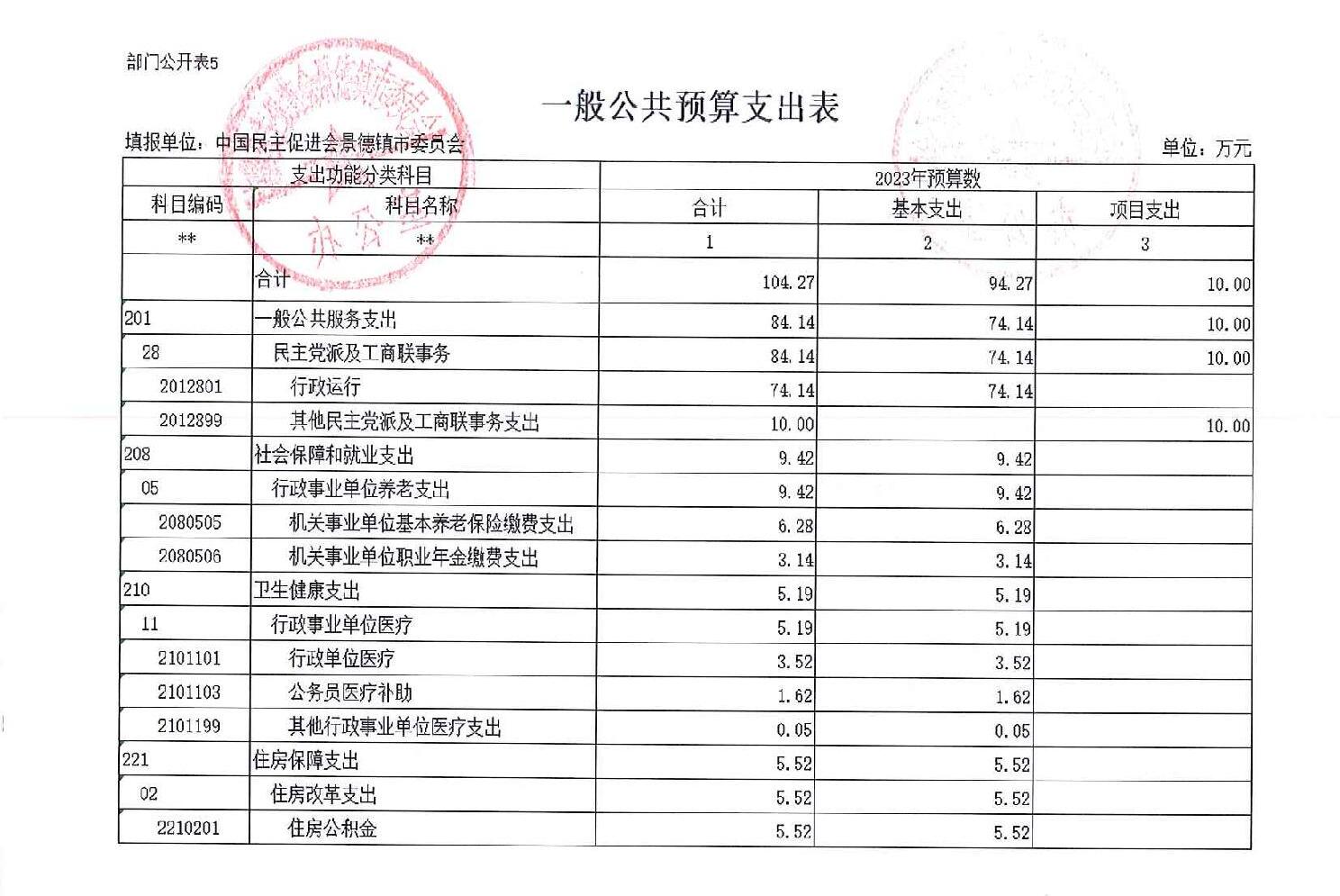 中国民主促进会景德镇市委员会2023年部门预算公开
