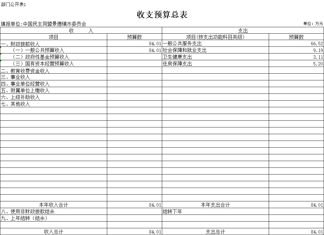 中国民主同盟景德镇市委员会2023年部门预算