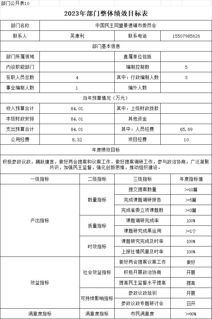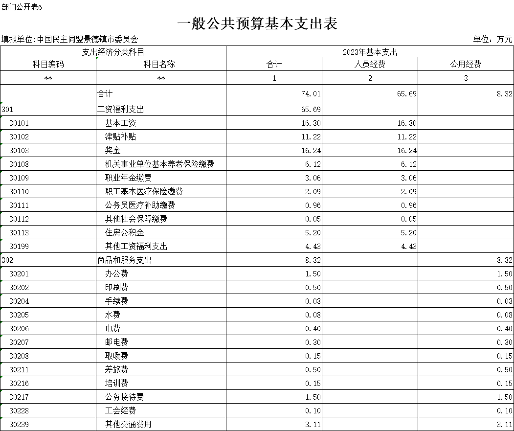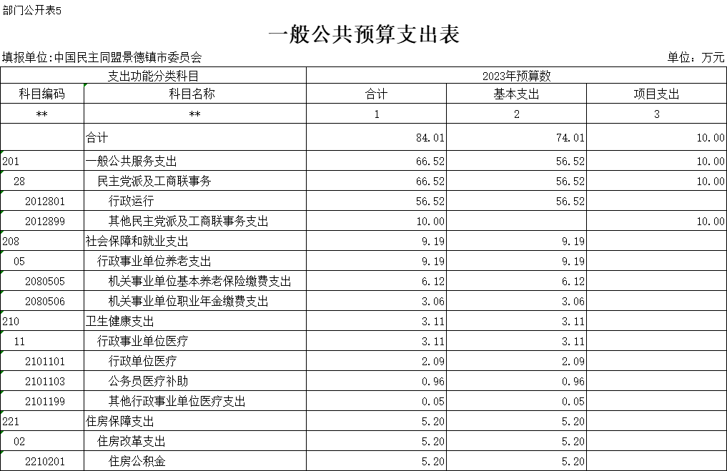 第二部分 中国民主同盟景德镇市委员会2023年部门预算表