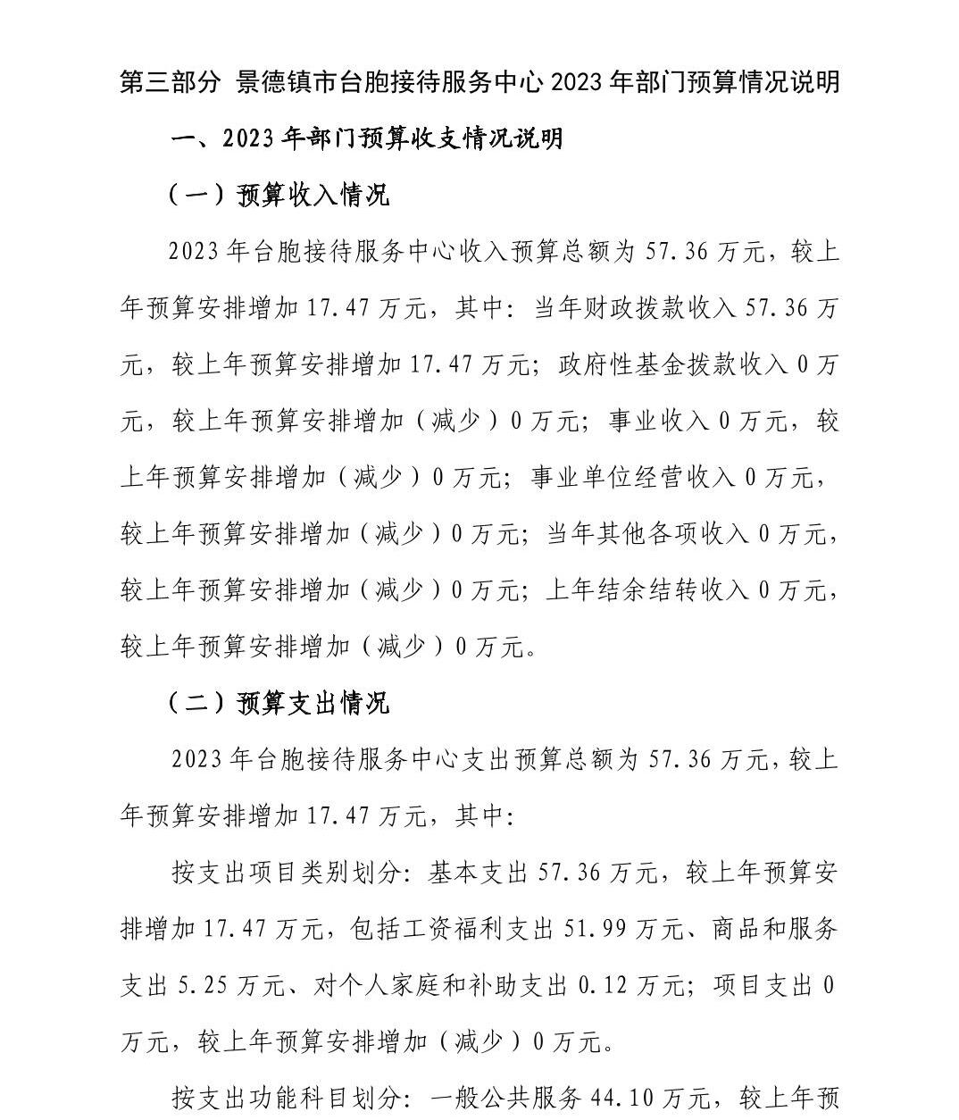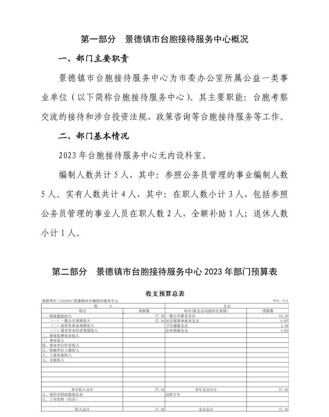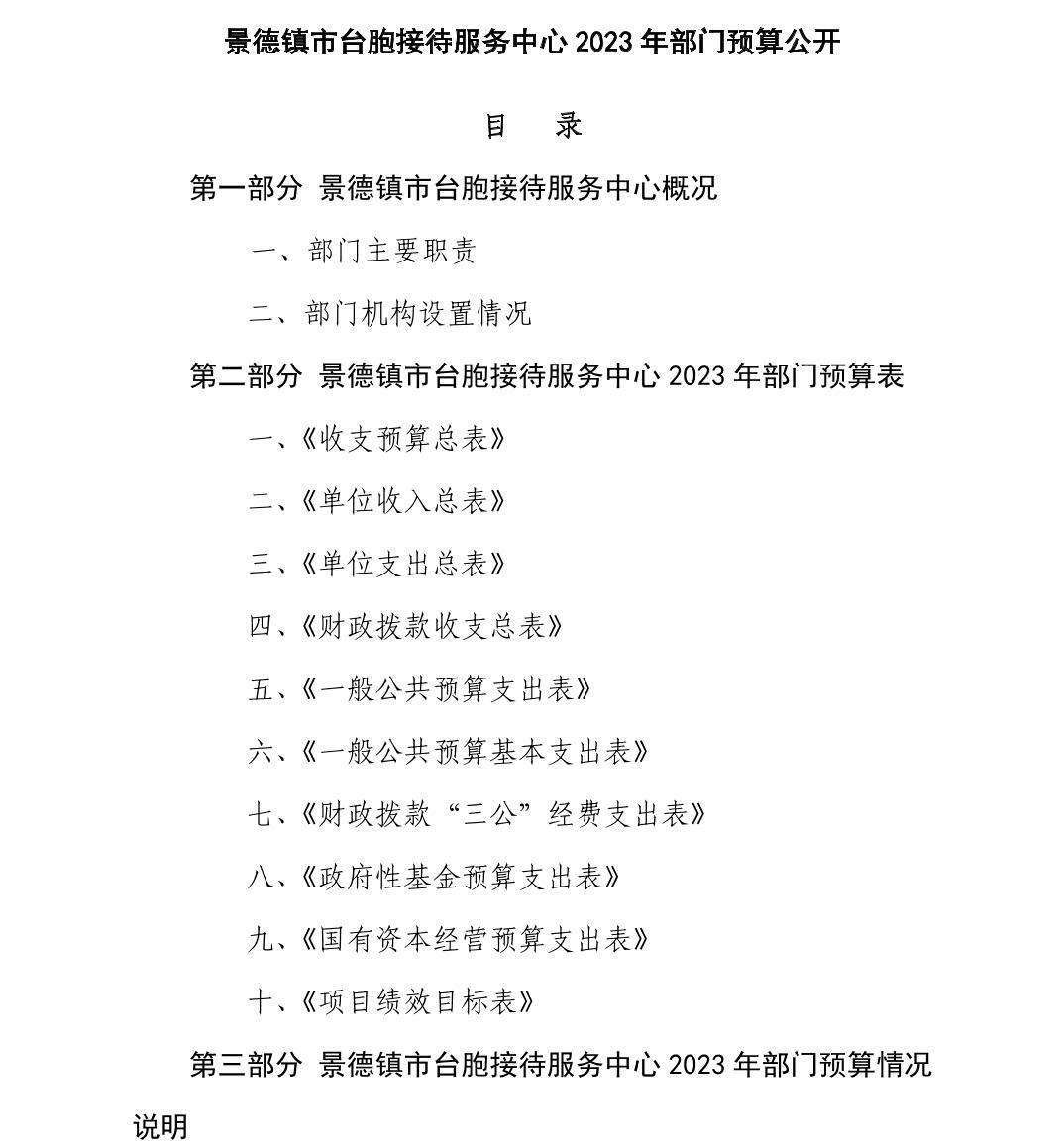 景德镇市台胞接待服务中心2023年部门预算公开