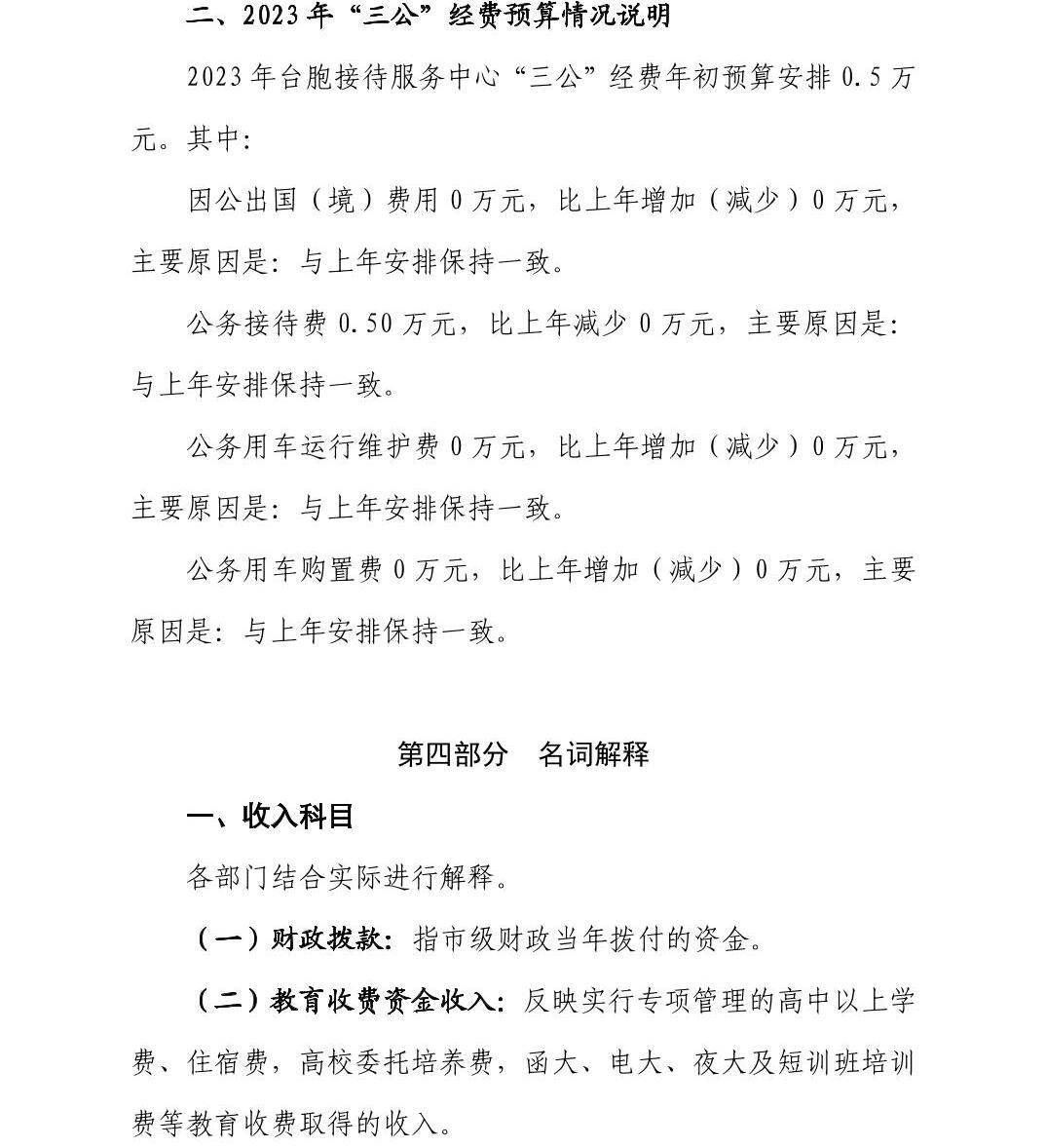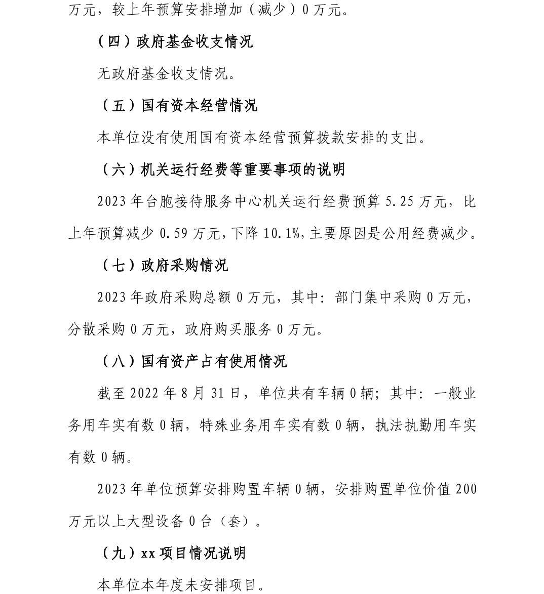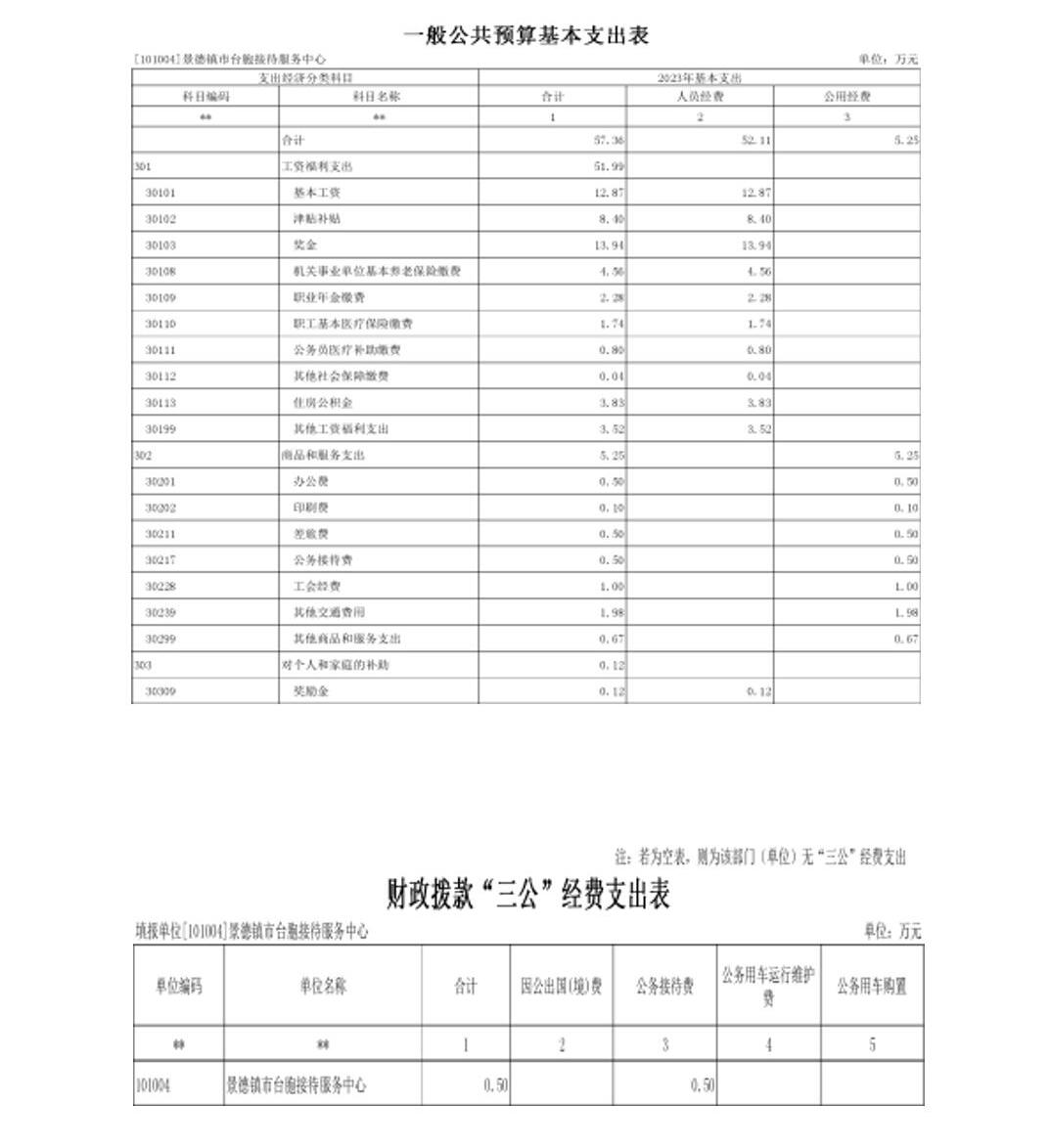 景德镇市台胞接待服务中心2023年部门预算公开