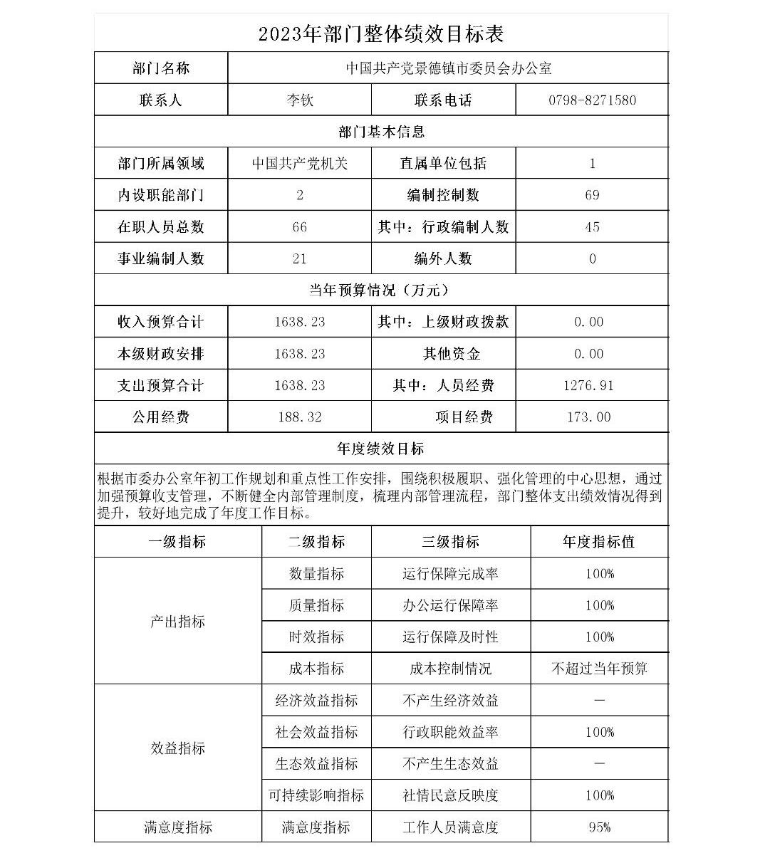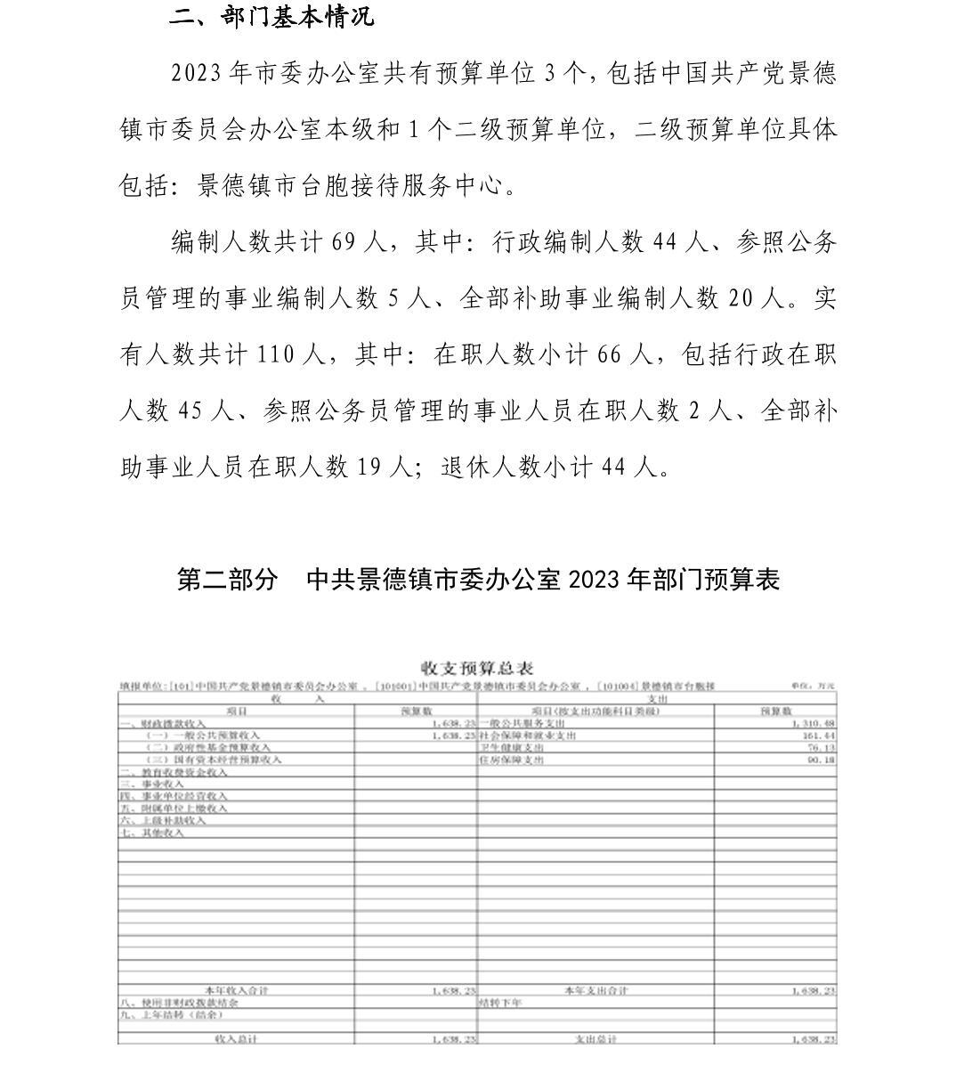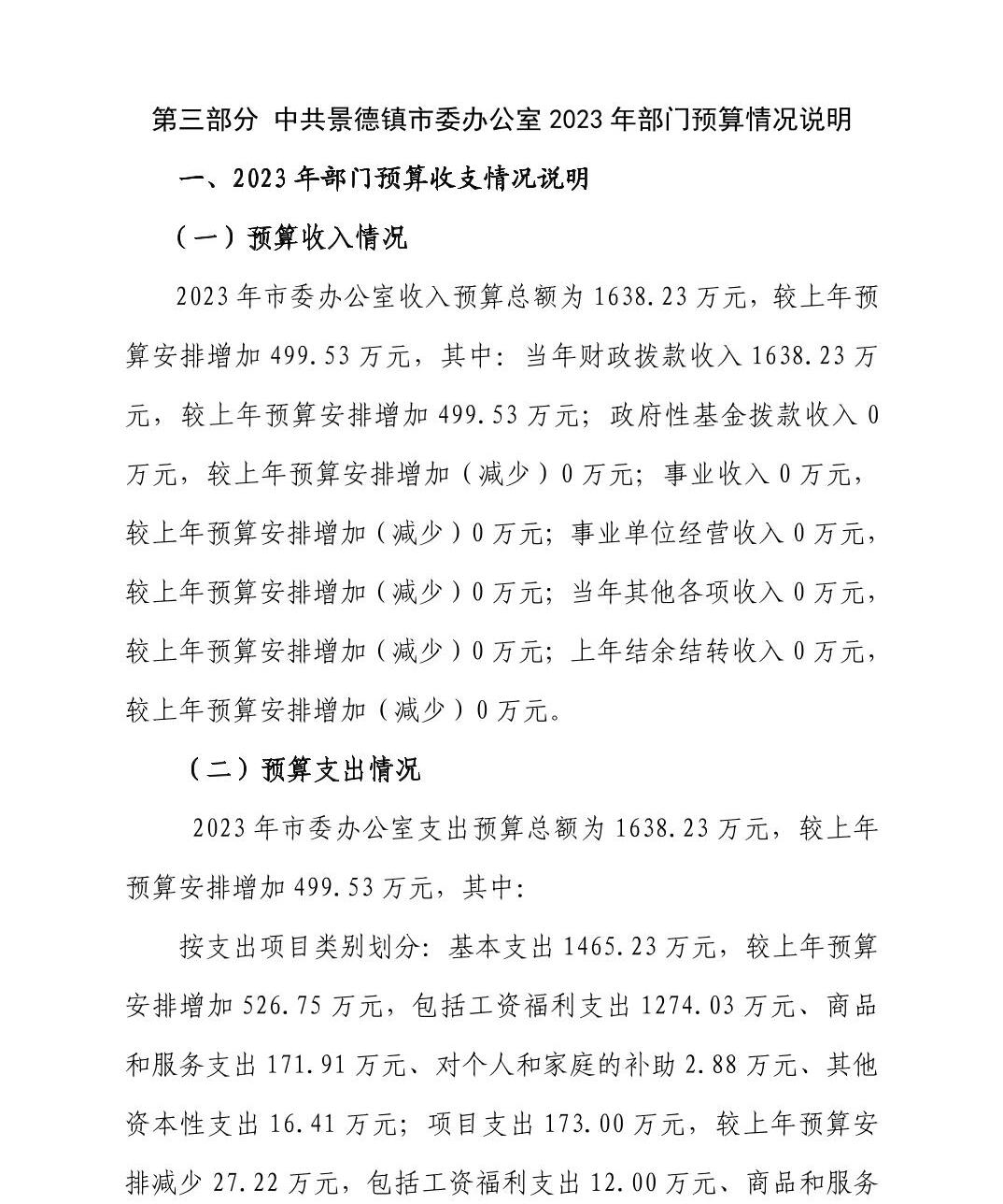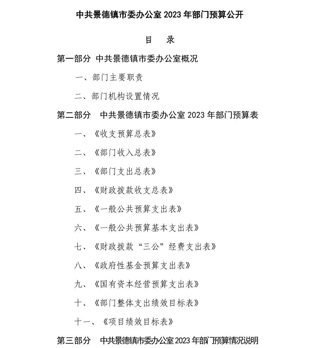 中国共产党景德镇市委员会办公室2023年部门预算公开