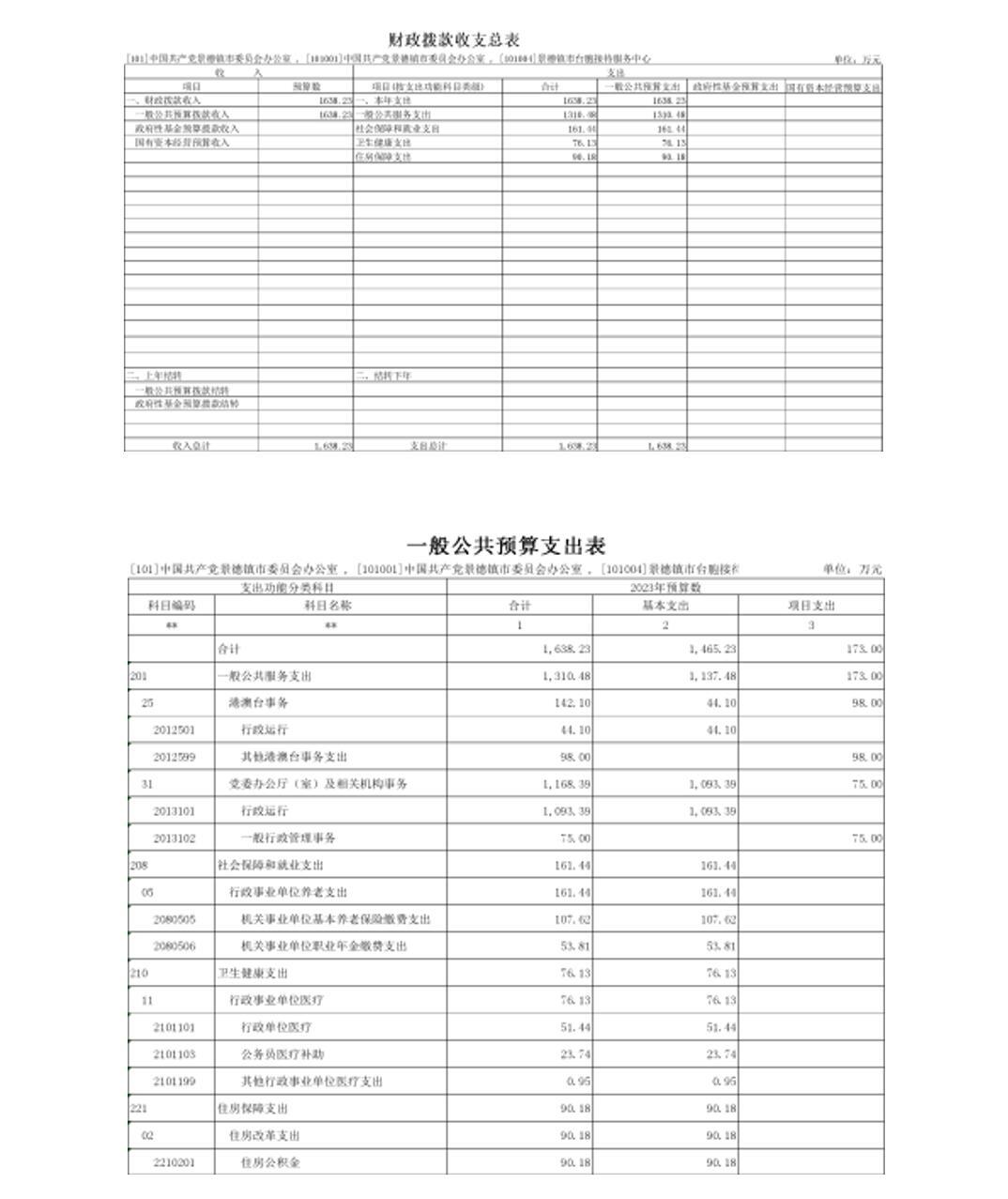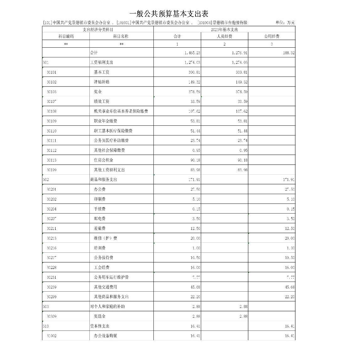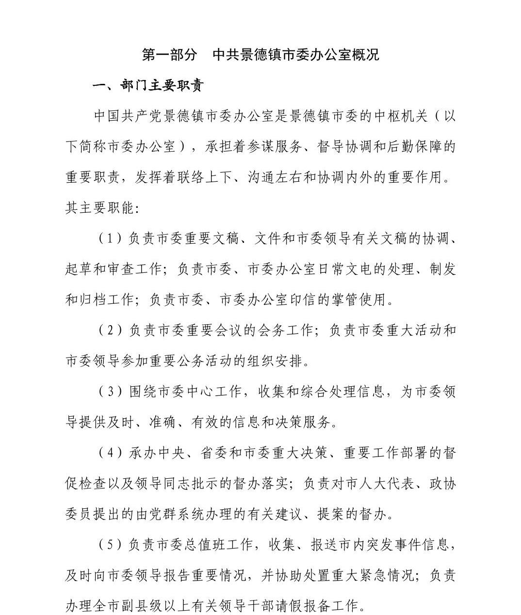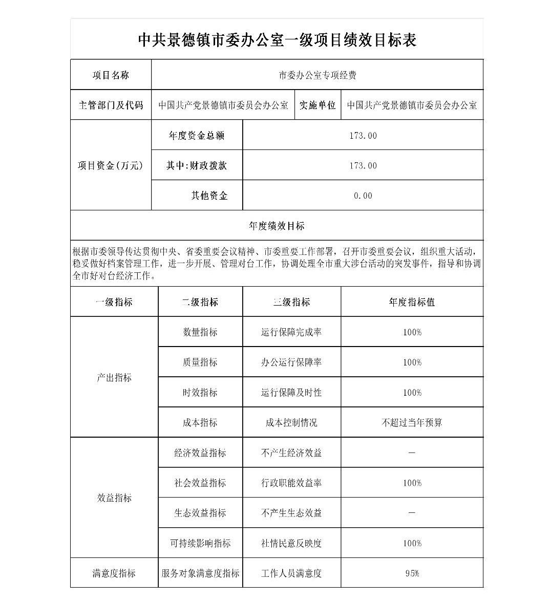 中国共产党景德镇市委员会办公室2023年部门预算公开