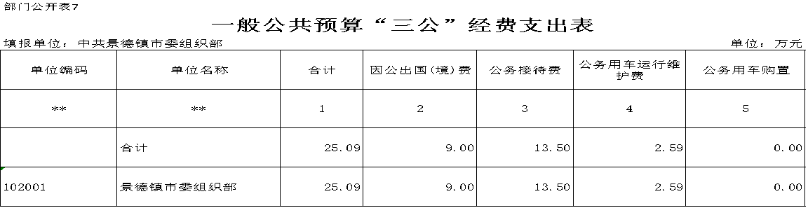 (十)“三公”经费:纳入财政预决算管理的“三公”经费,是指用财政拨款安排的因公出国(境)费、公务用车购置及运行费和公务接待费,是维持部门运转或完成特定工作任务所开支的相关支出,是行政开支的一部分。其中,因公出国(境)费反映单位公务出国(境)的国际旅费、国外城市间交通费、住宿费、伙食费、培训费、公杂费等支出;公务用车购置及运行费反映单位公务用车车辆购置支出(含车辆购置税)及燃料费、维修费、过桥过路费、保险费、安全奖励费用等支出;公务接待费反映单位按规定开支的各类公务接待(含外宾接待)支出。