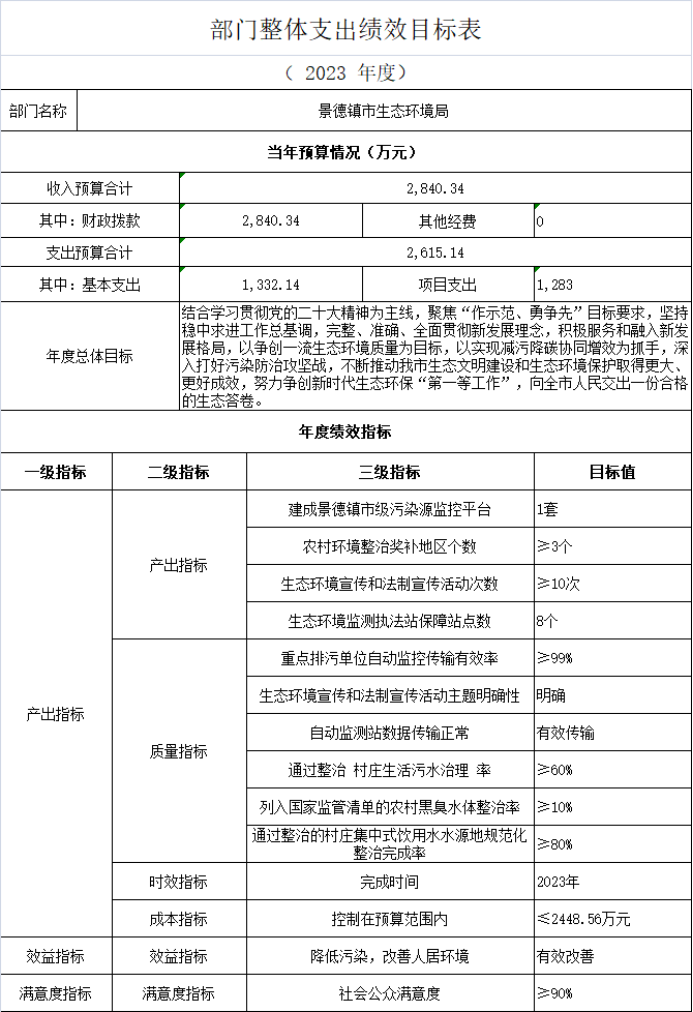 景德镇市生态环境局2023年部门预算公开