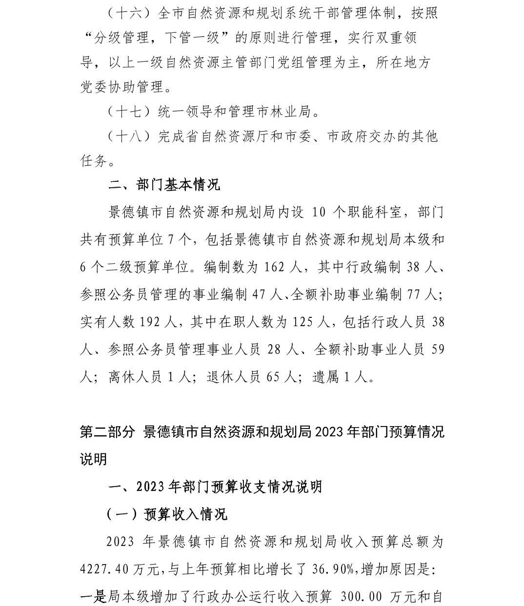 景德镇市自然资源储备利用中心2023年部门预算编制说明
