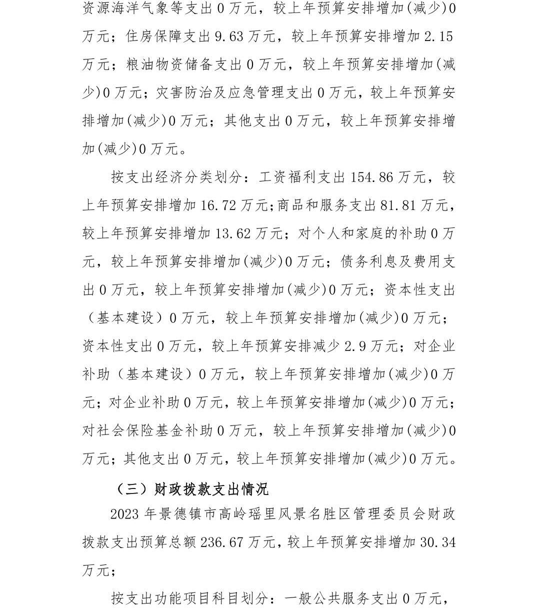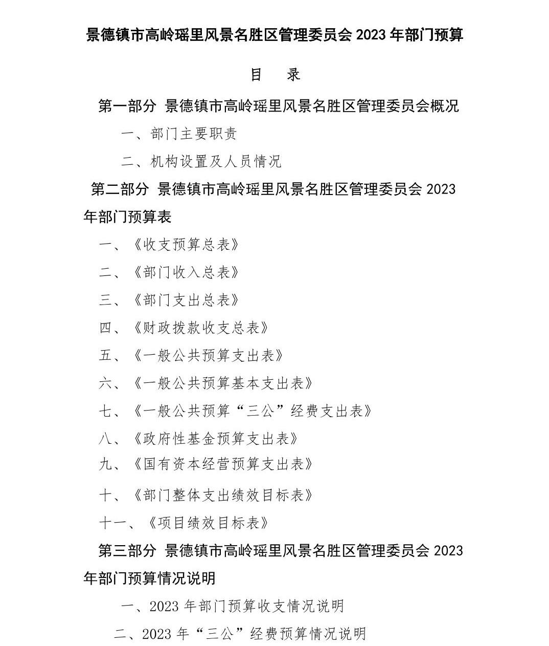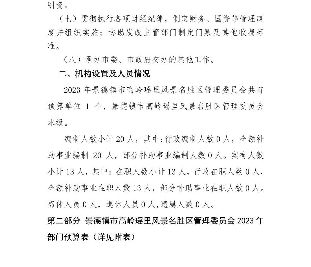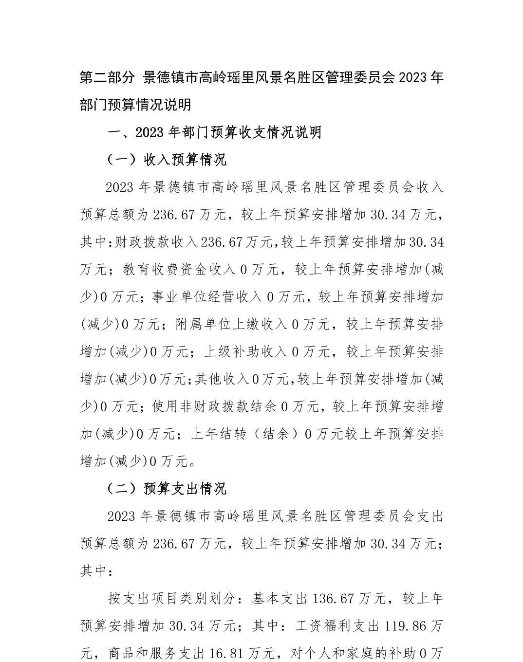 景德镇市高岭瑶里风景名胜区管理委员会2023年度部门预算公开
