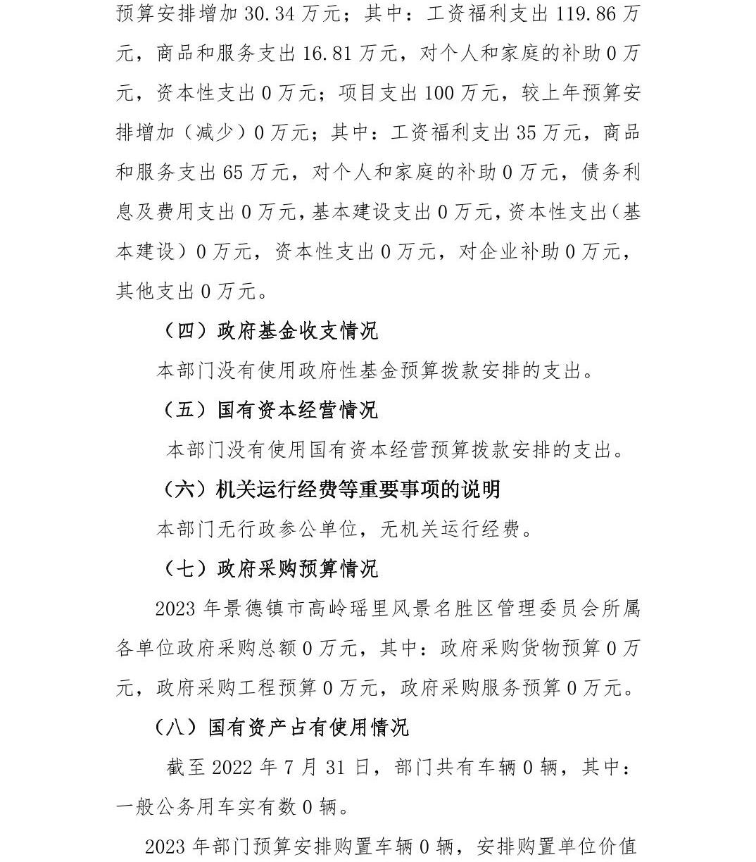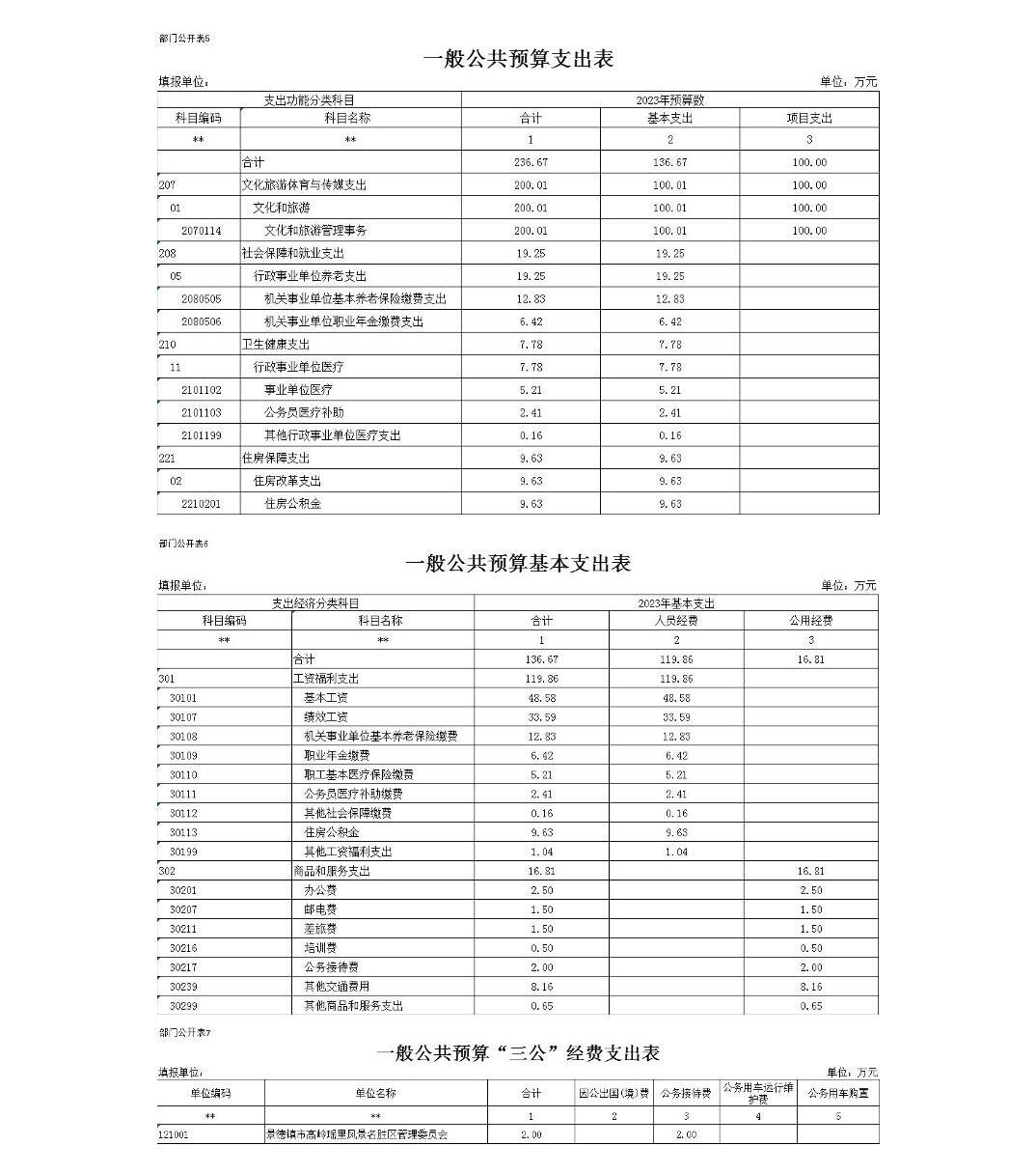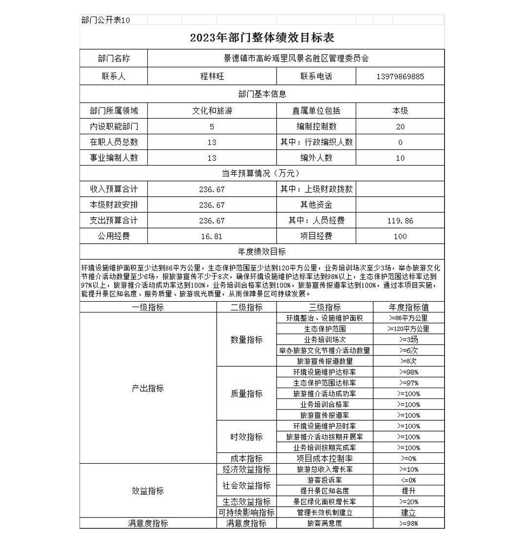 景德镇市高岭瑶里风景名胜区管理委员会2023年度部门预算公开