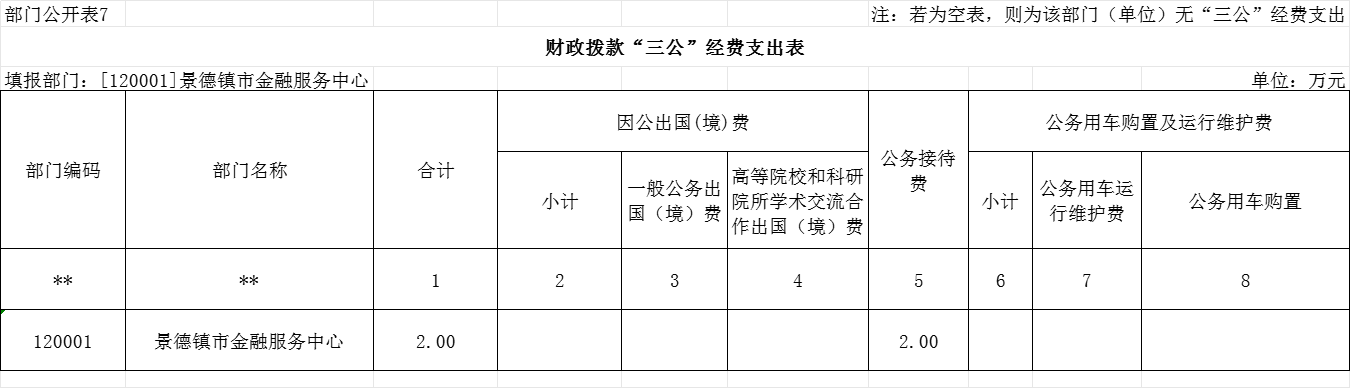 2023年景德镇市金融服务中心"三公"经费财政拨款安排2万元,其中:公务接待费2.00万元,比上年增加2万元,主要原因是:2022年景德镇市金融服务中心未安排“三公”经费支出。