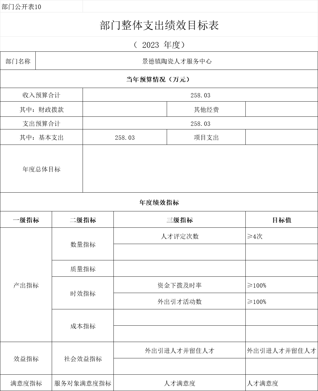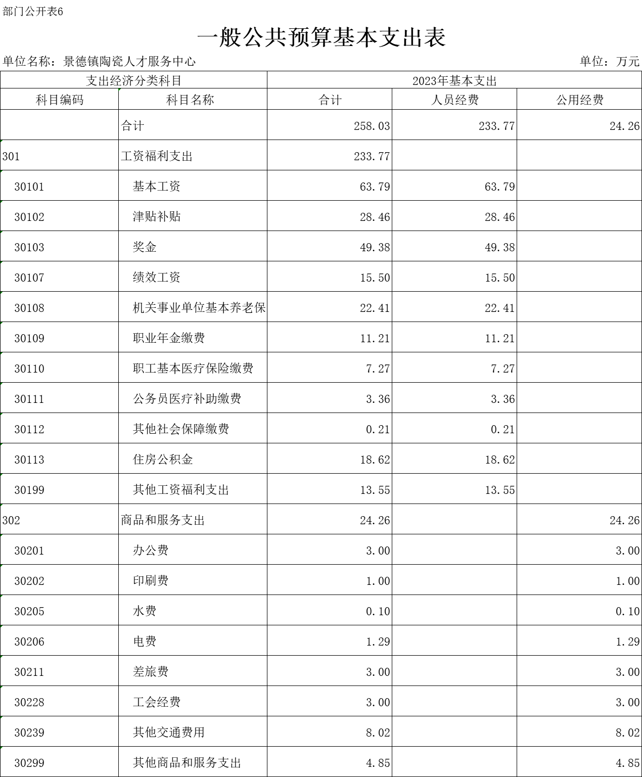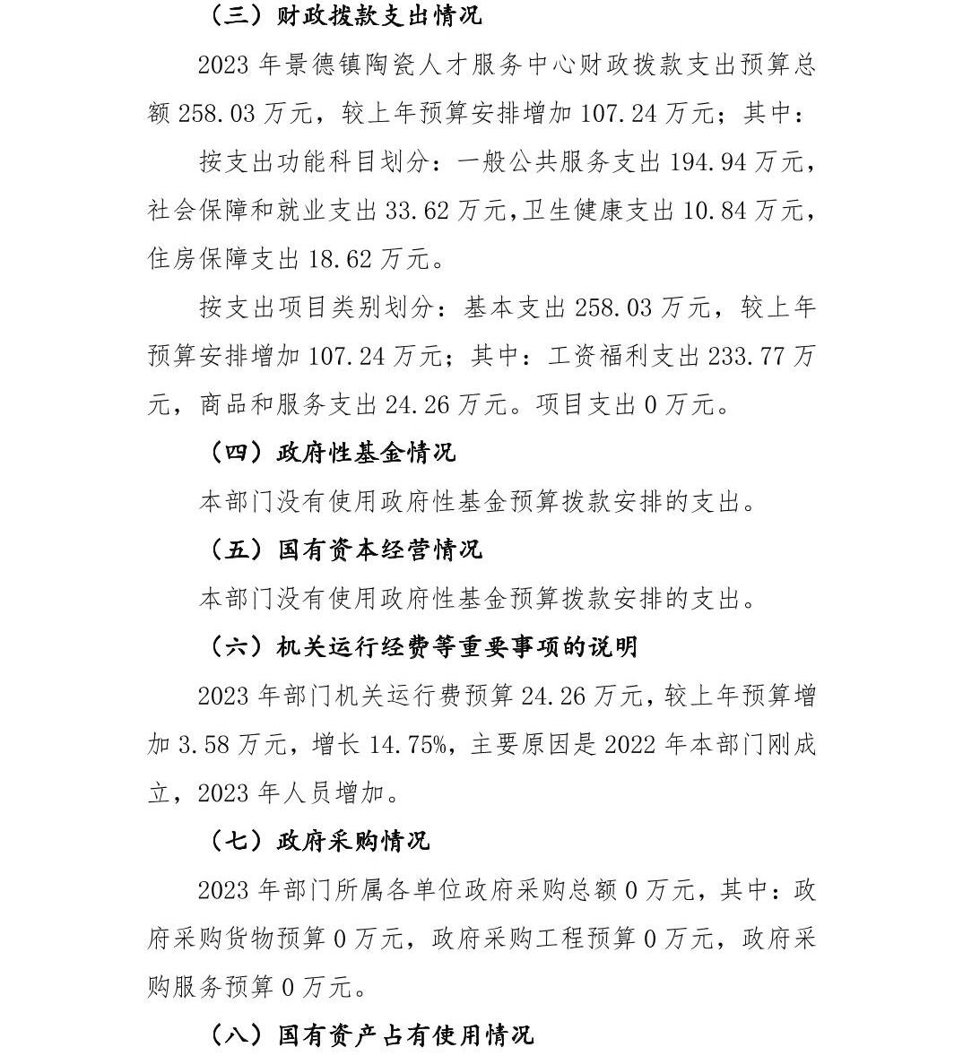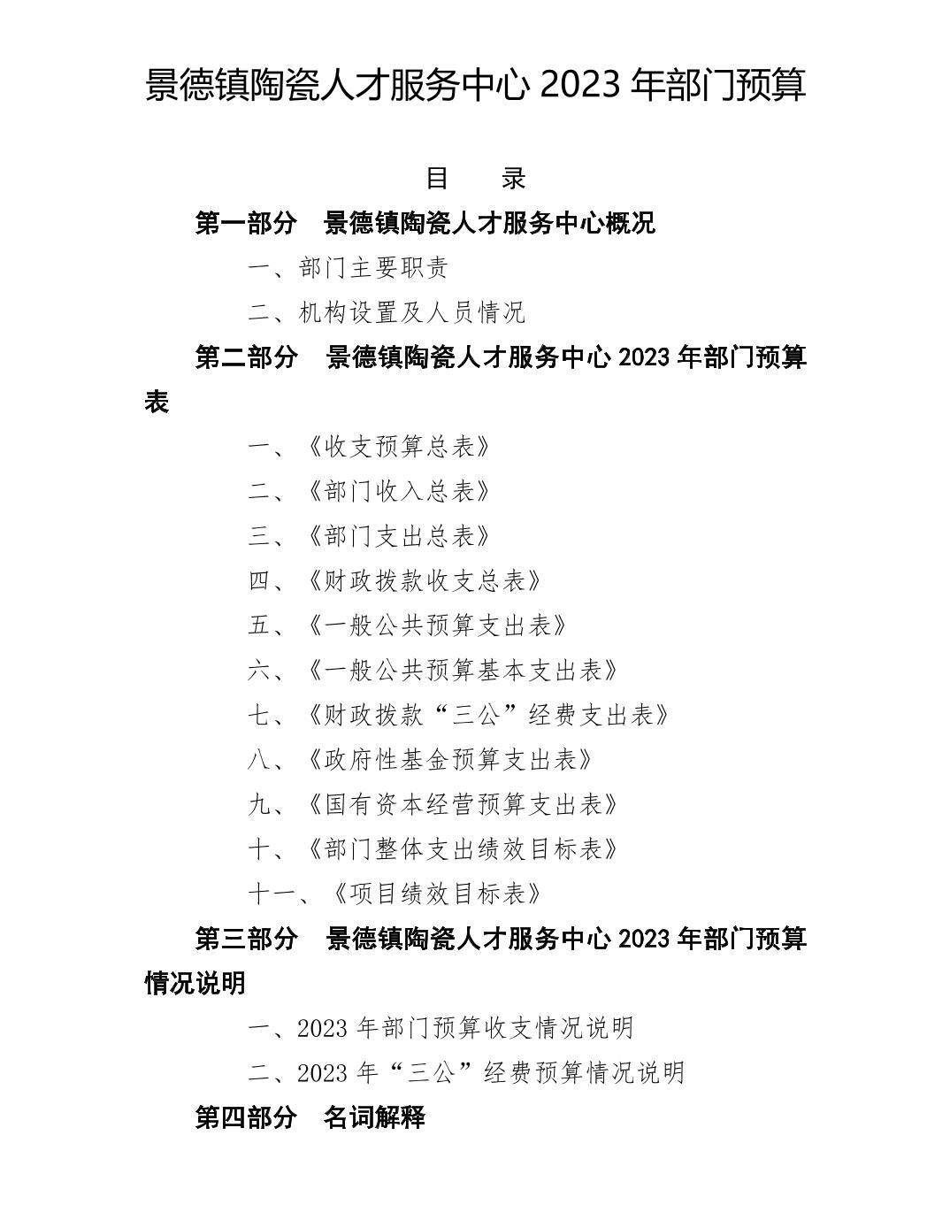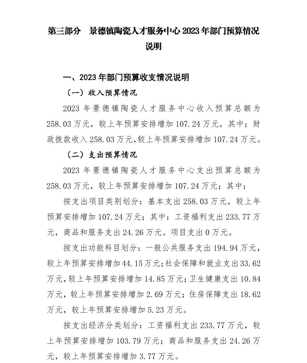 第二部分 景德镇陶瓷人才服务中心部门2023年部门预算表