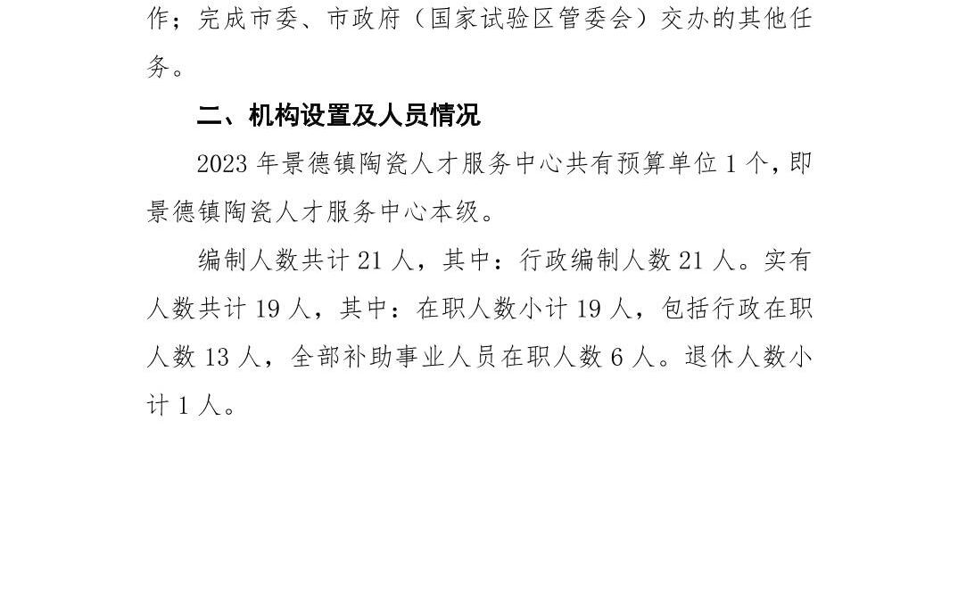 景德镇陶瓷人才服务中心2023年部门预算说明