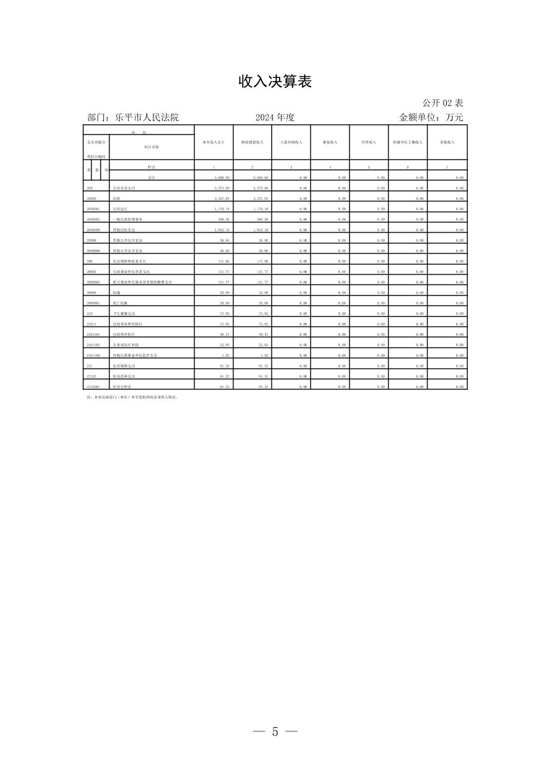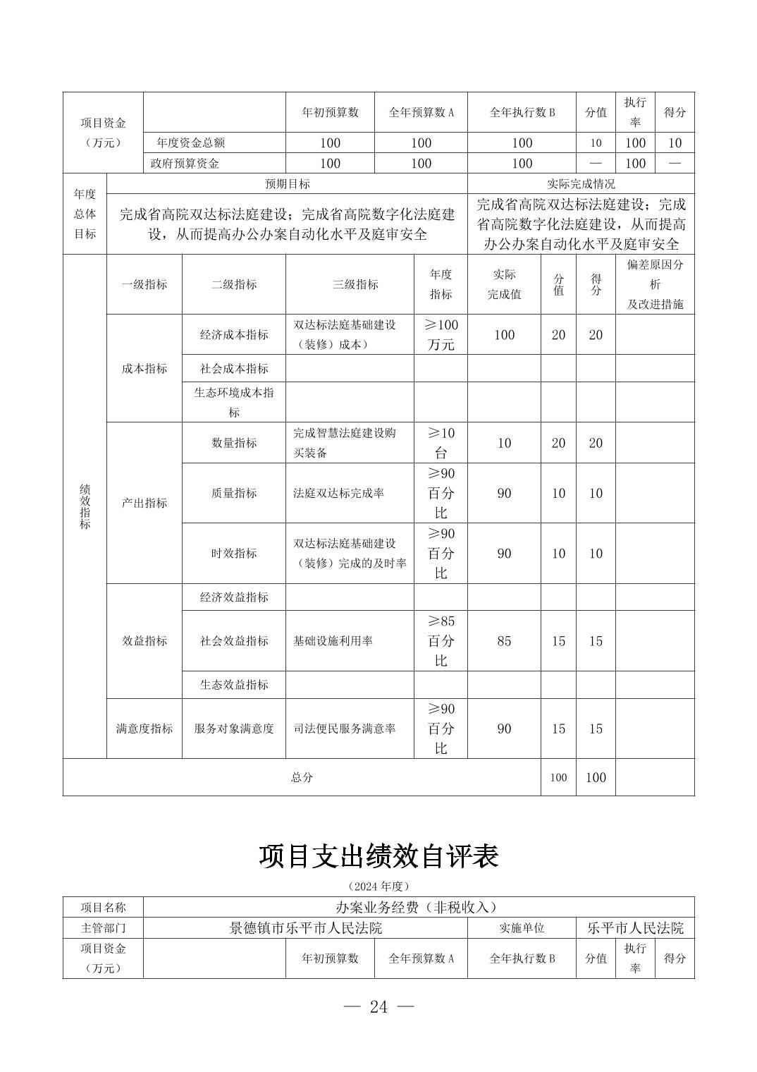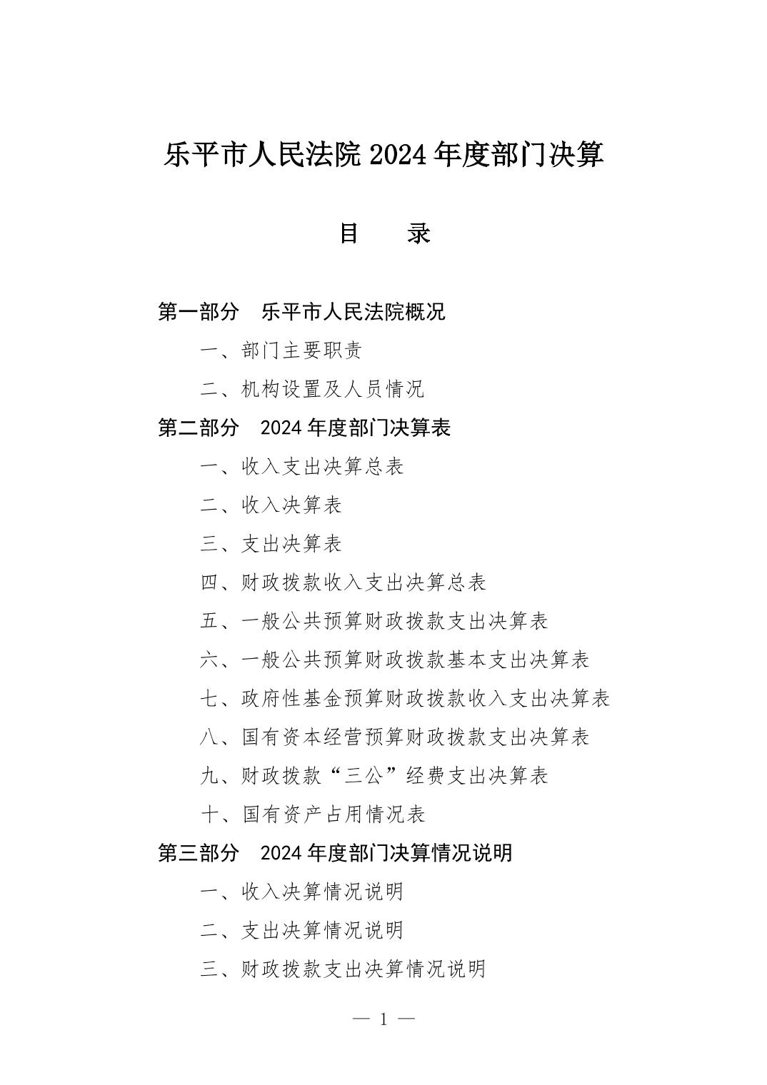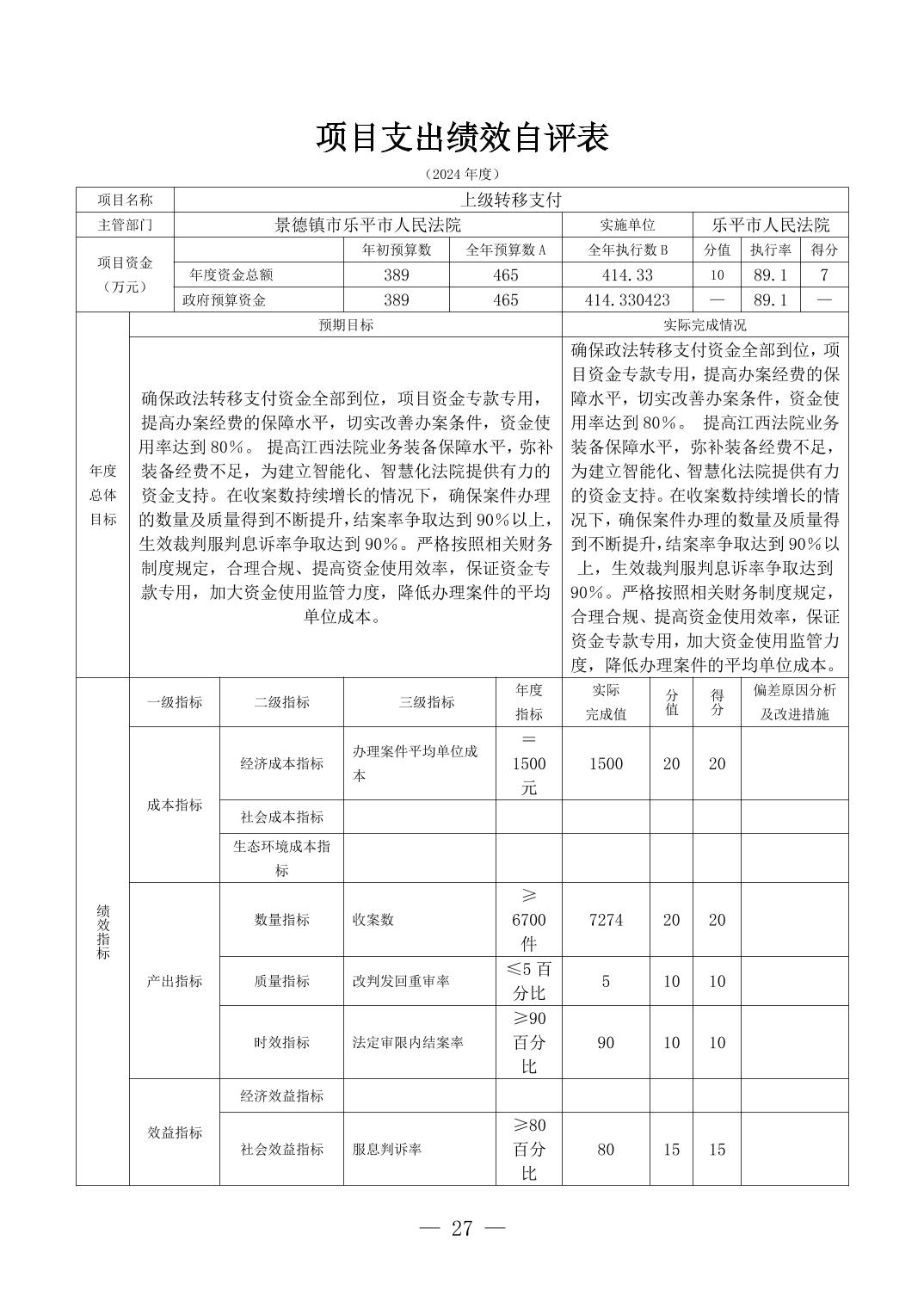 乐平市人民法院2024年度部门决算