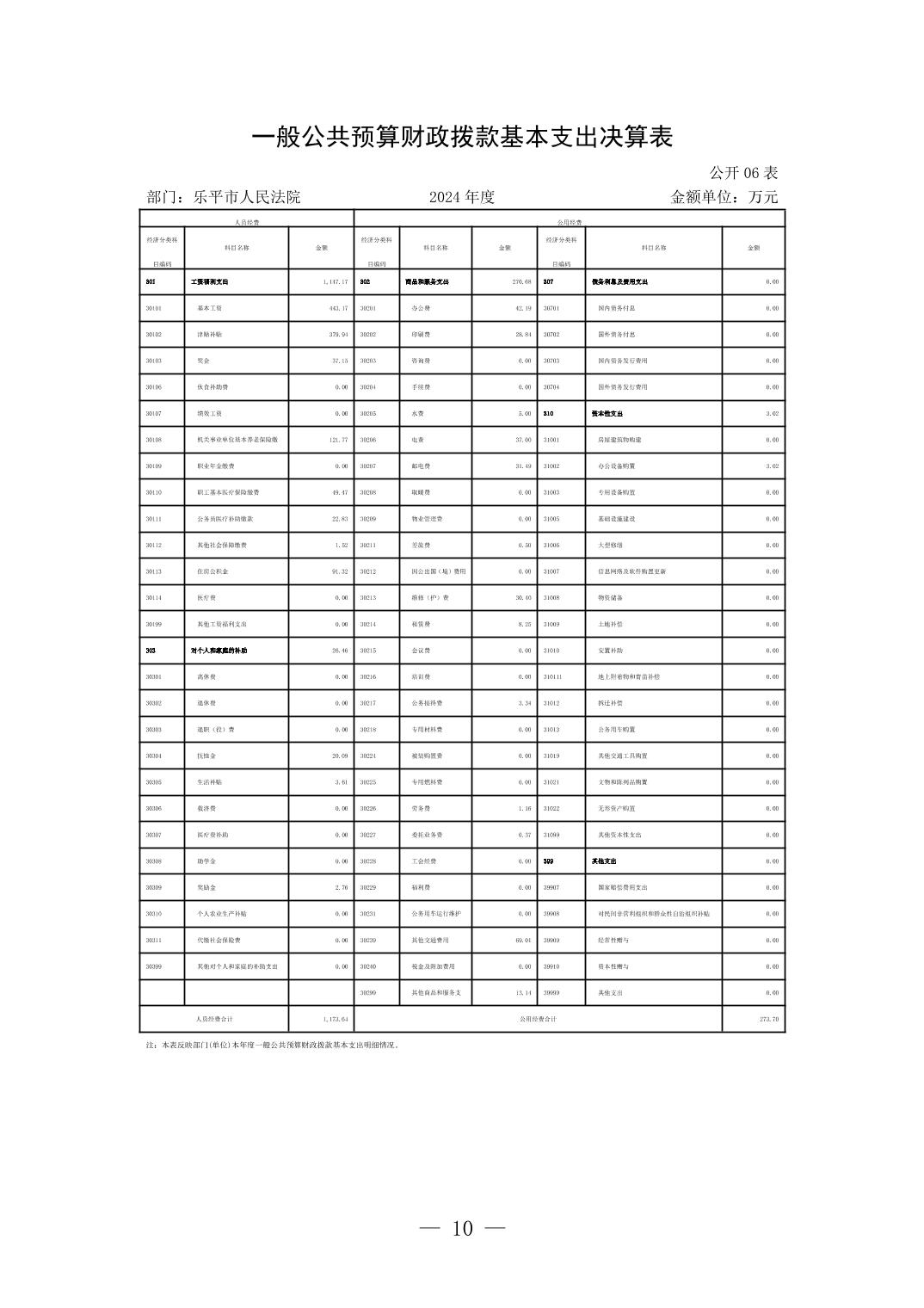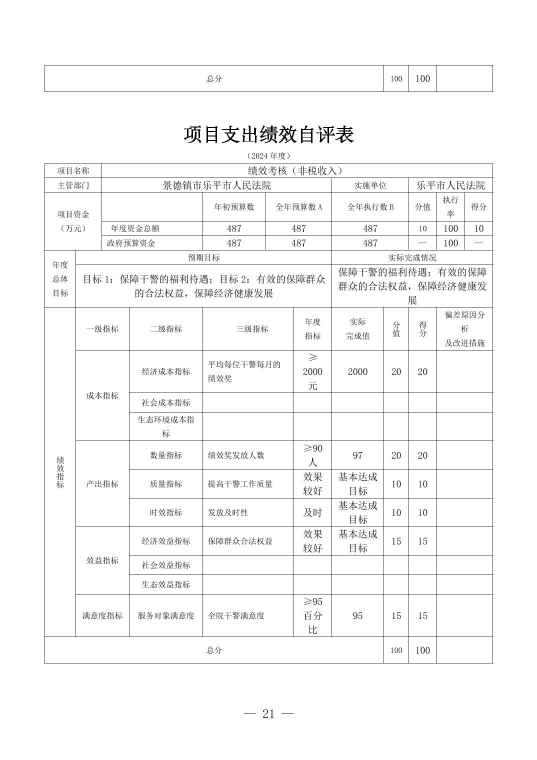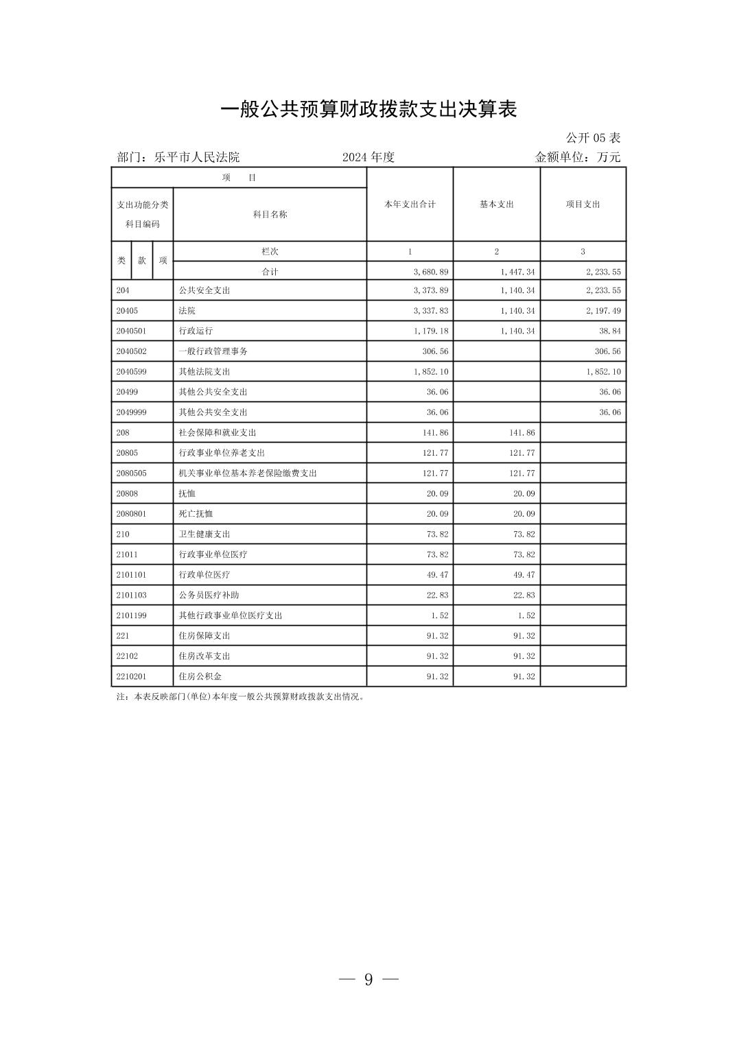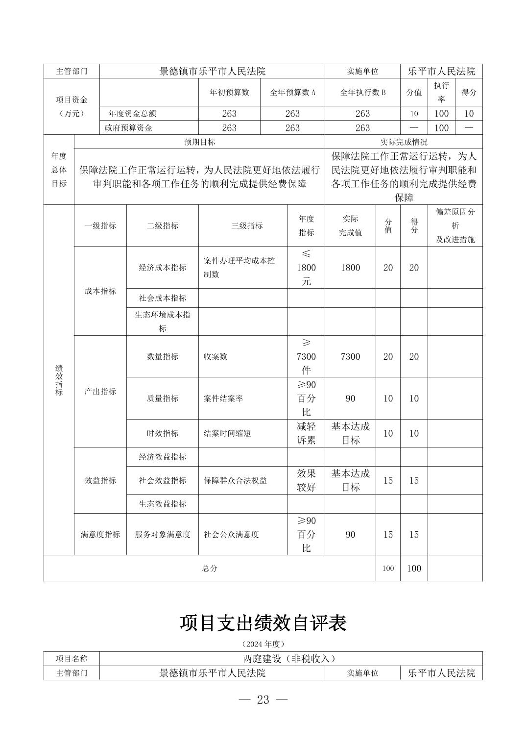乐平市人民法院2024年度部门决算