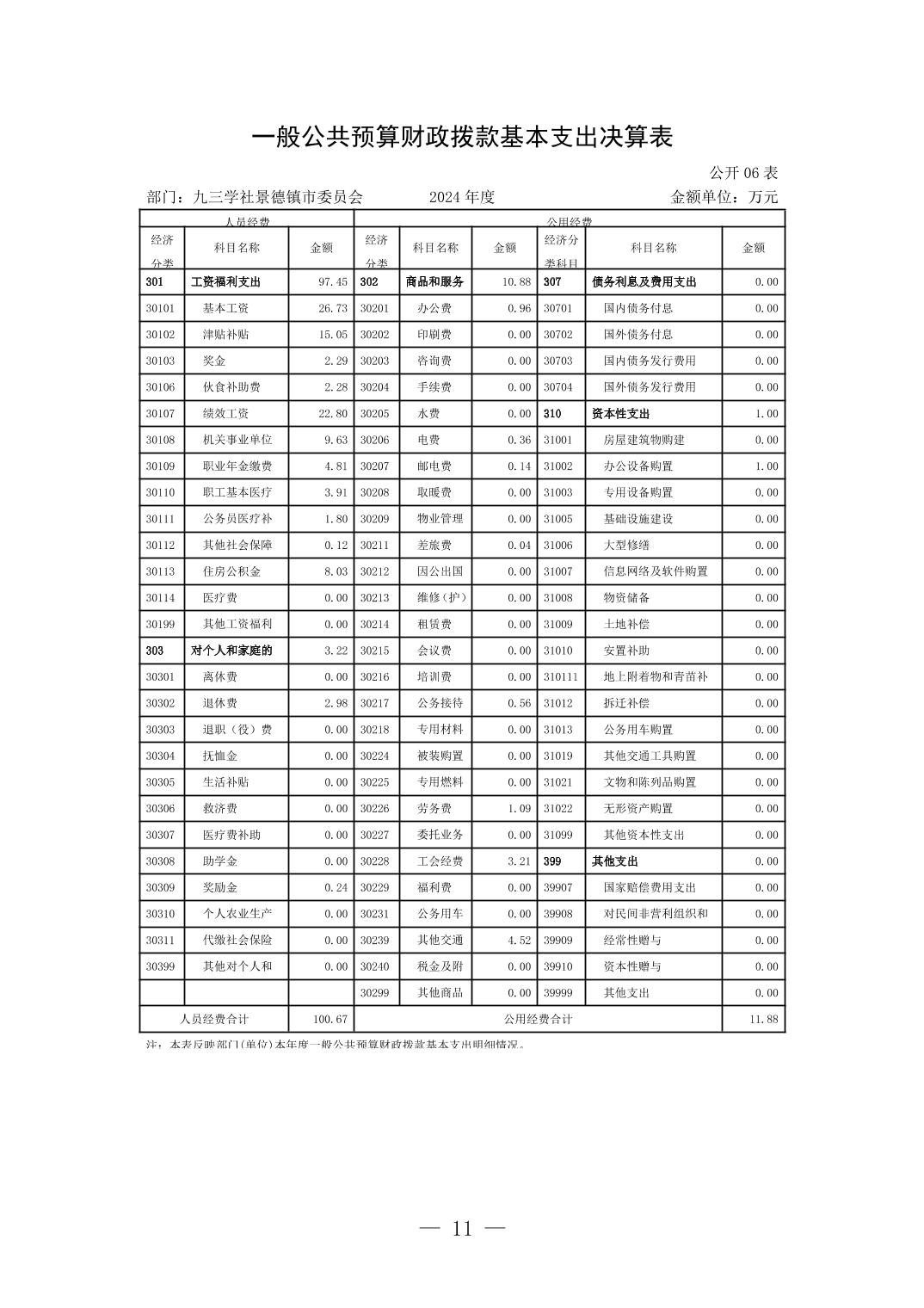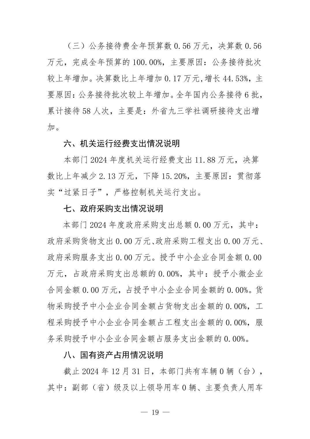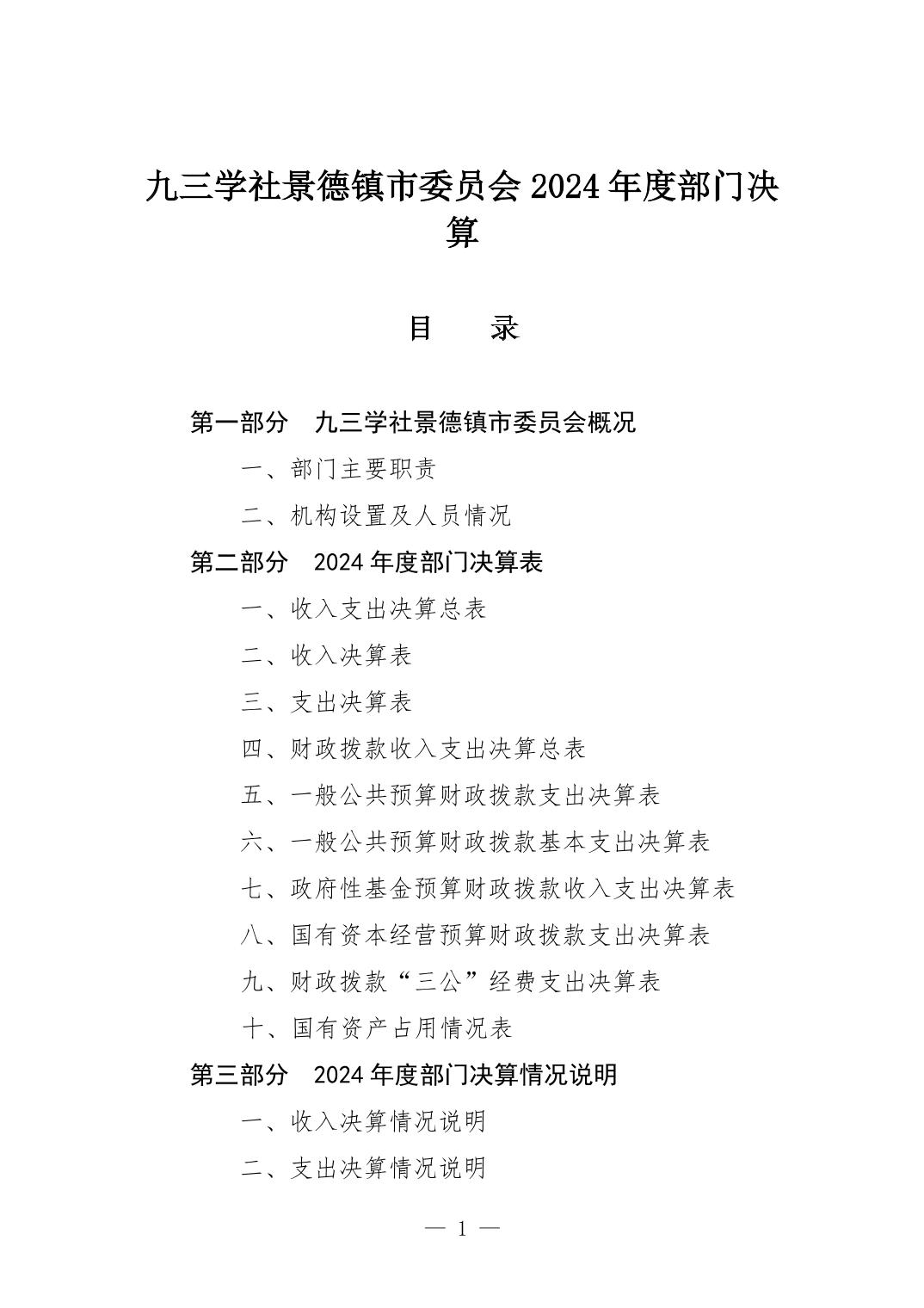 九三学社景德镇市委员会2024年度部门决算