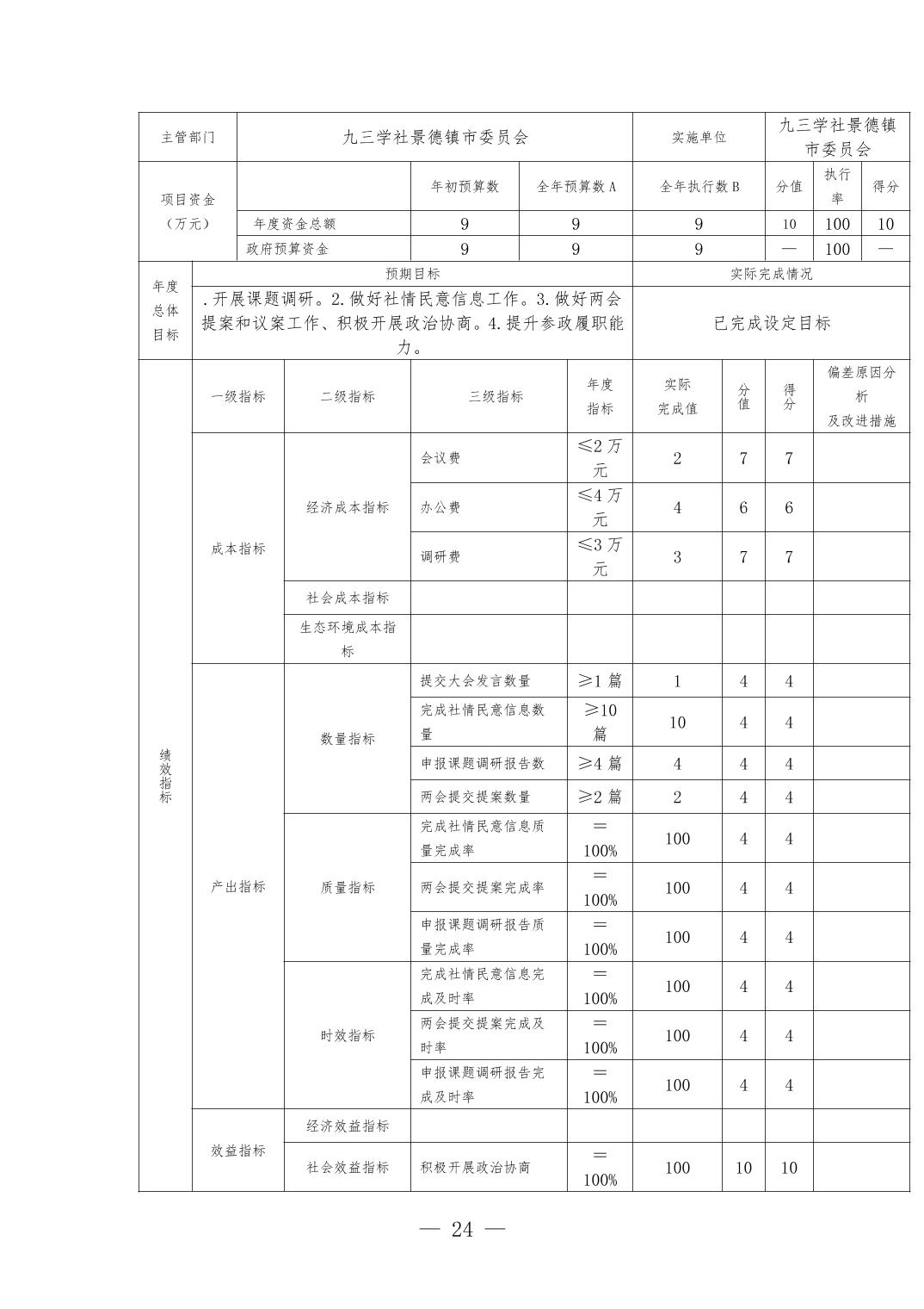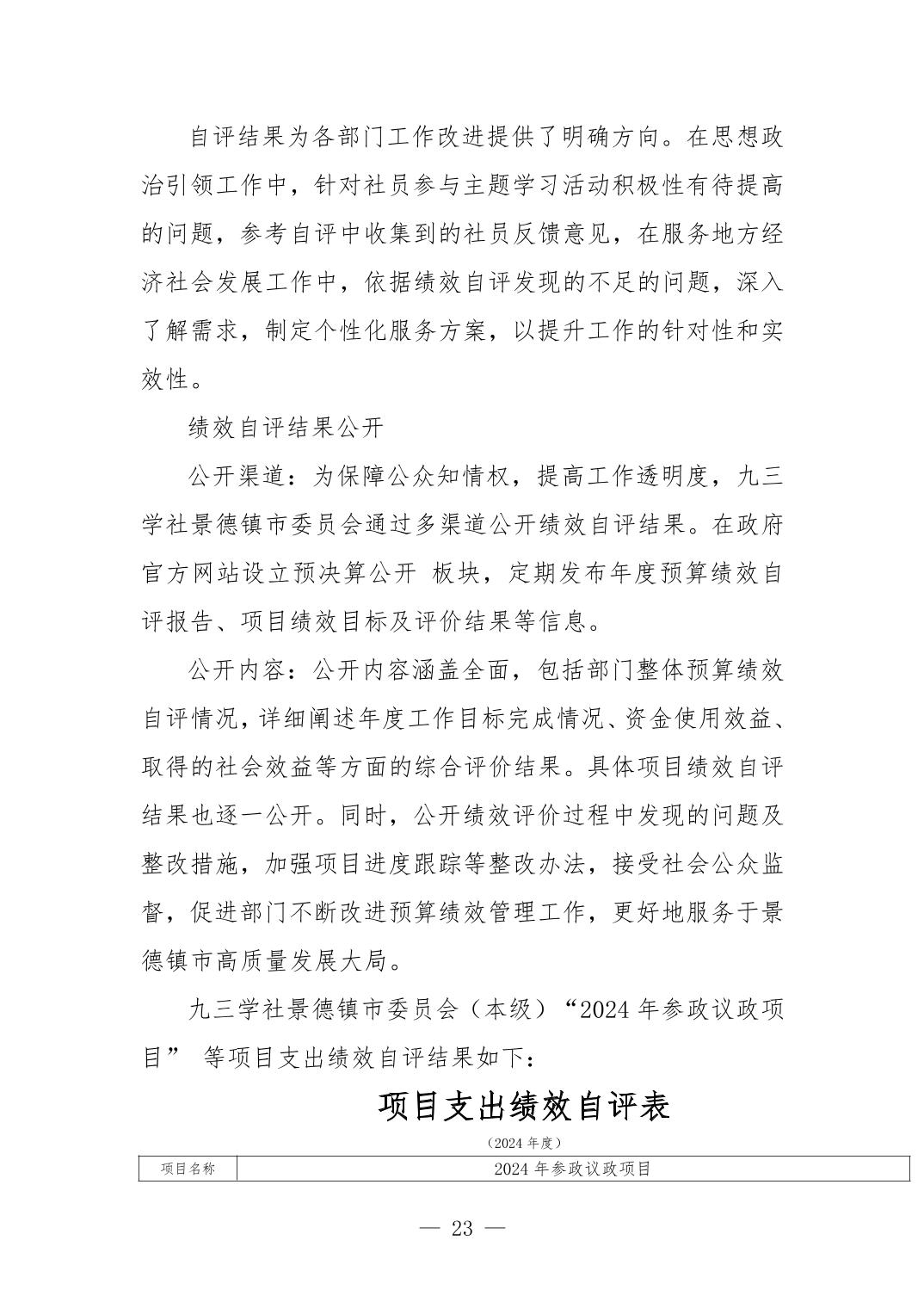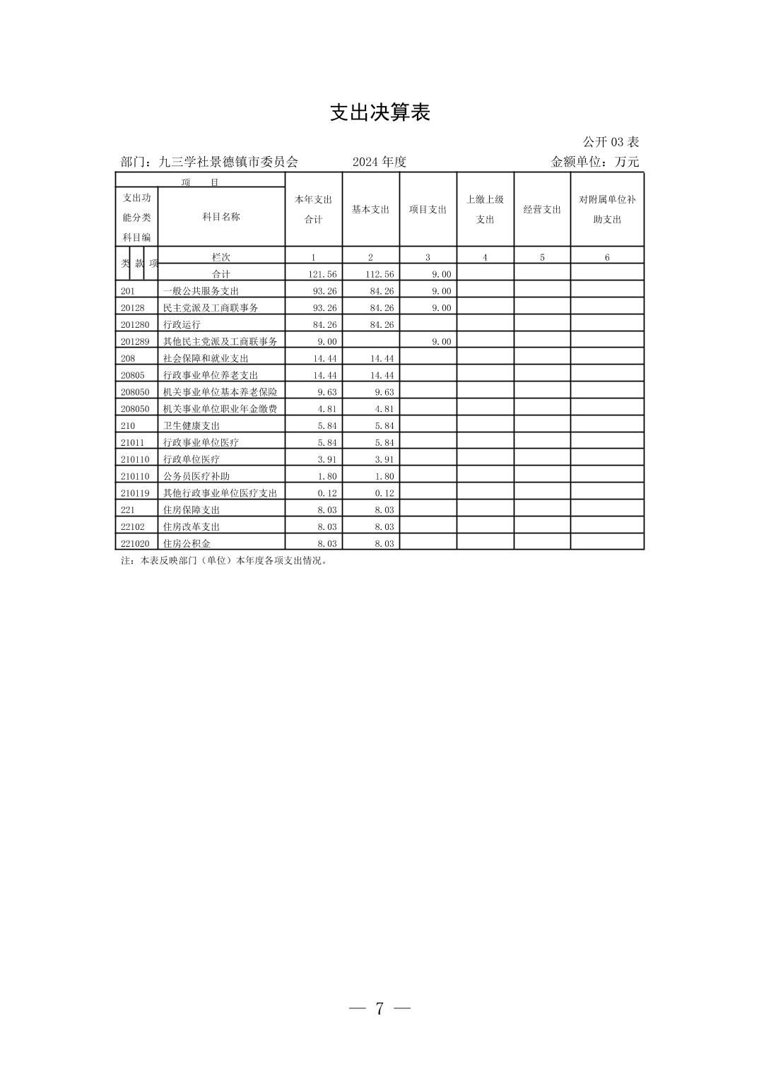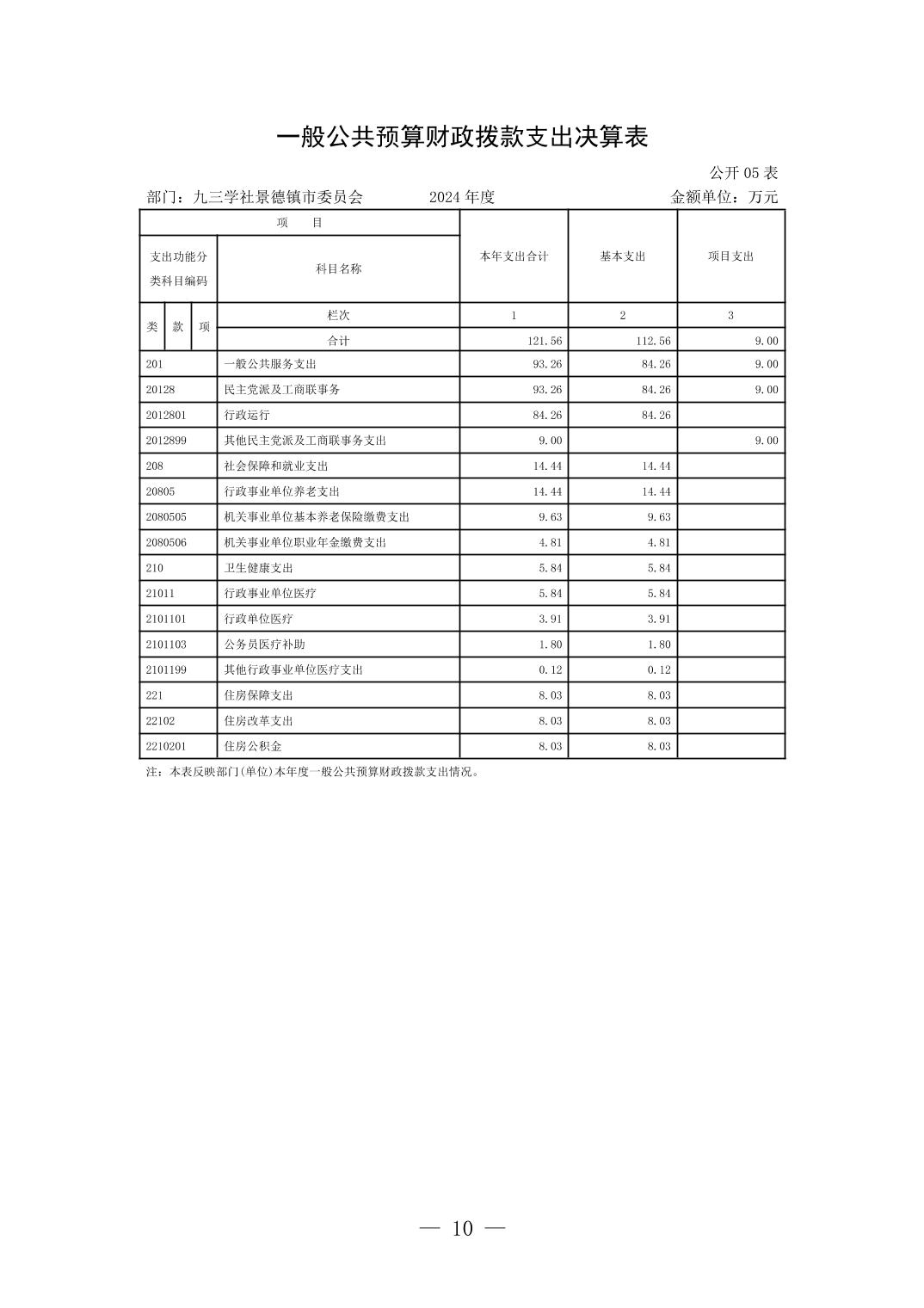 九三学社景德镇市委员会2024年度部门决算