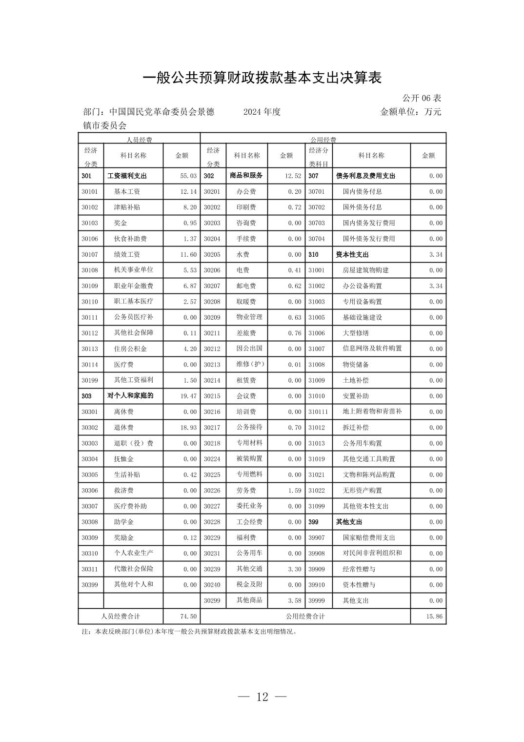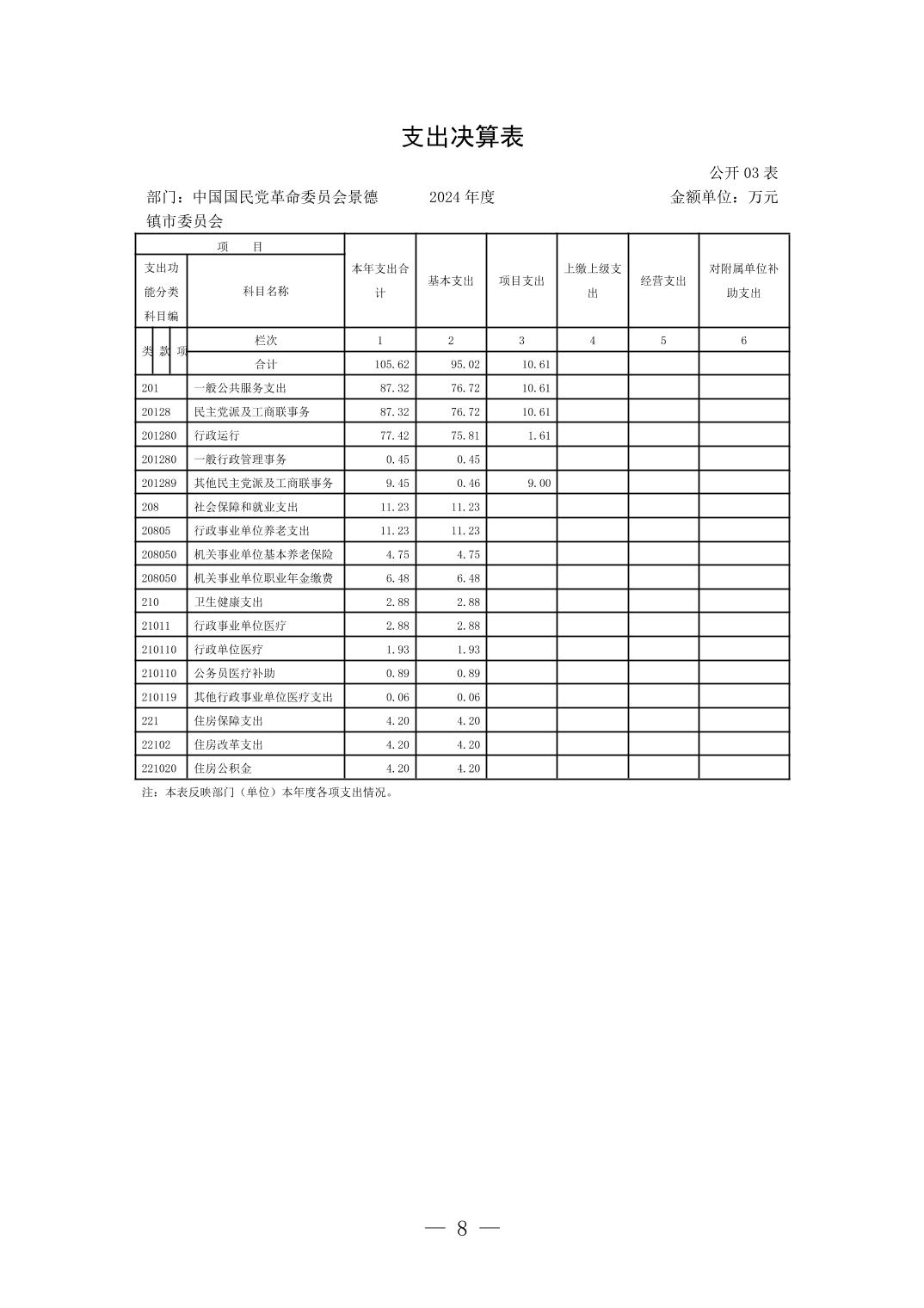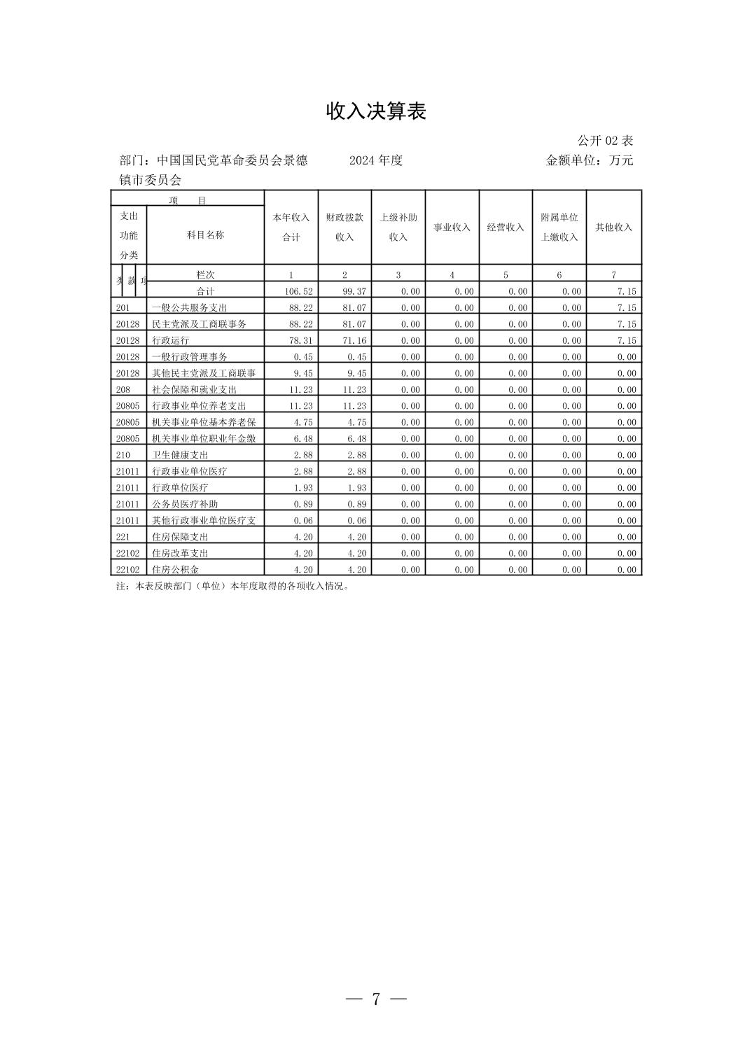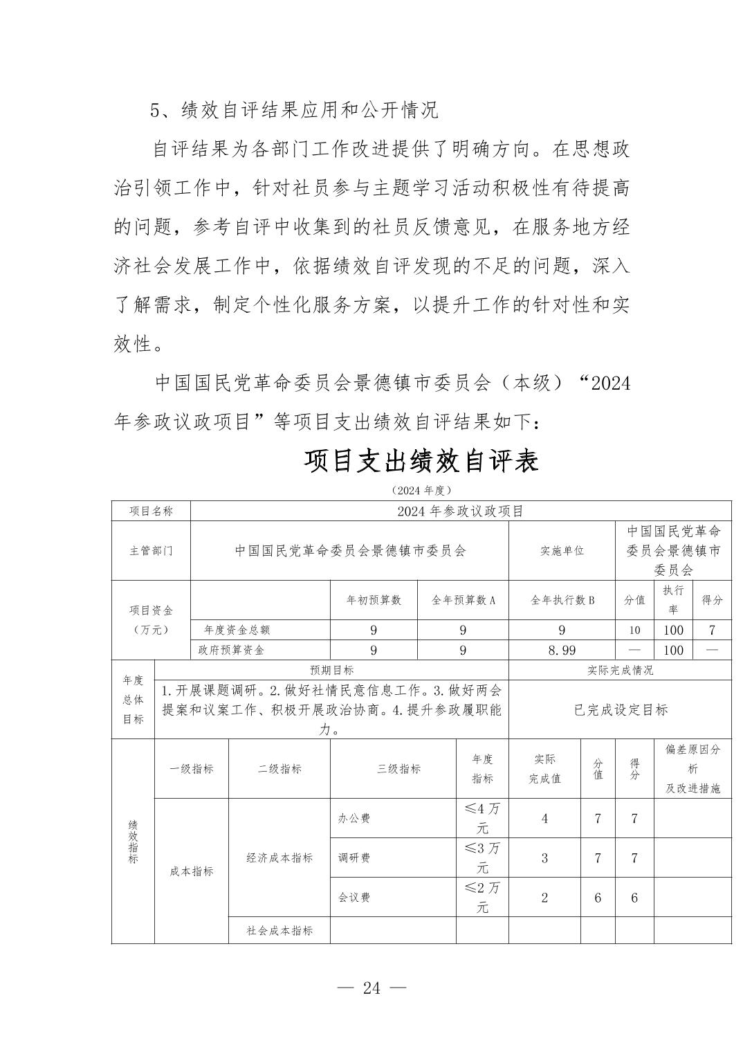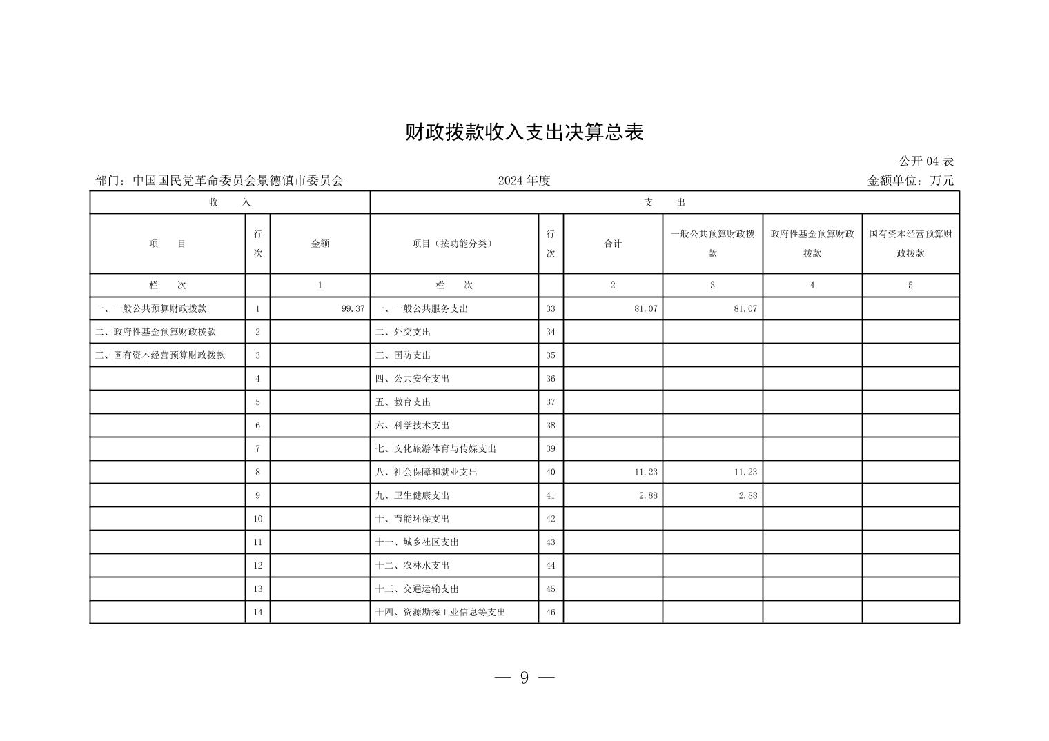 中国国民党革命委员会景德镇市委员会2024年度部门决算