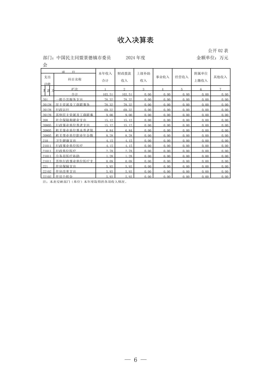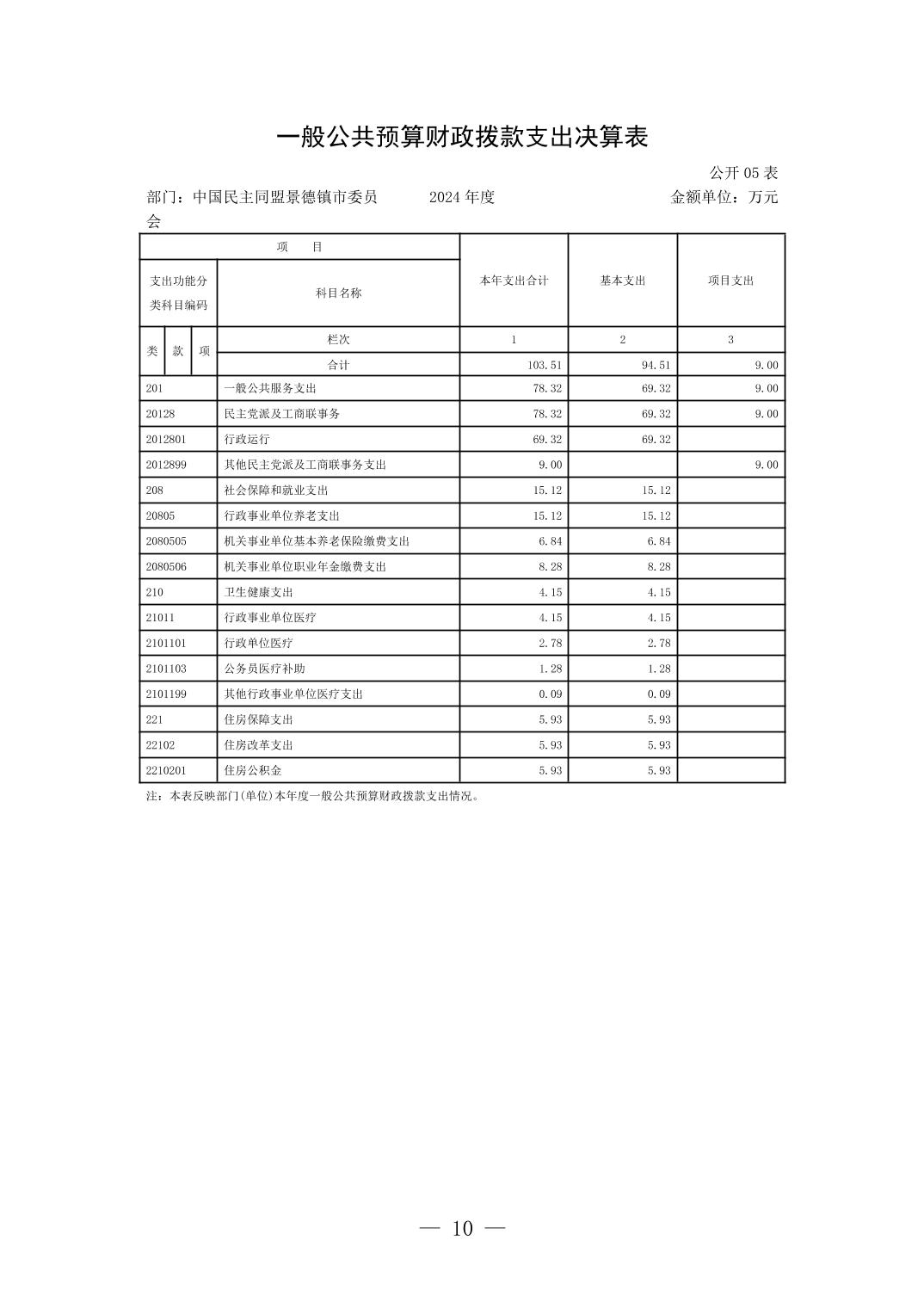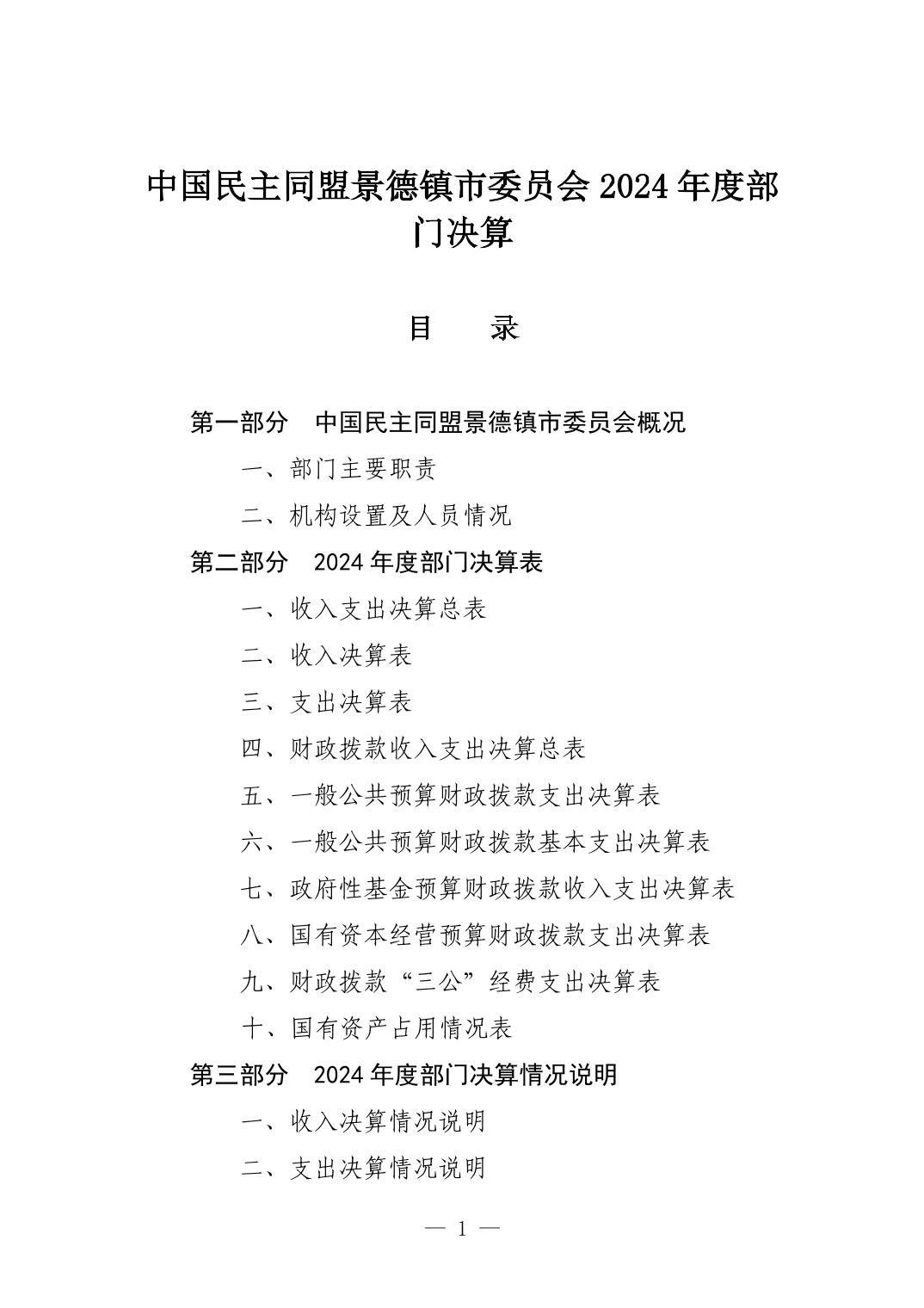 中国民主同盟景德镇市委员会2024年度部门决算
