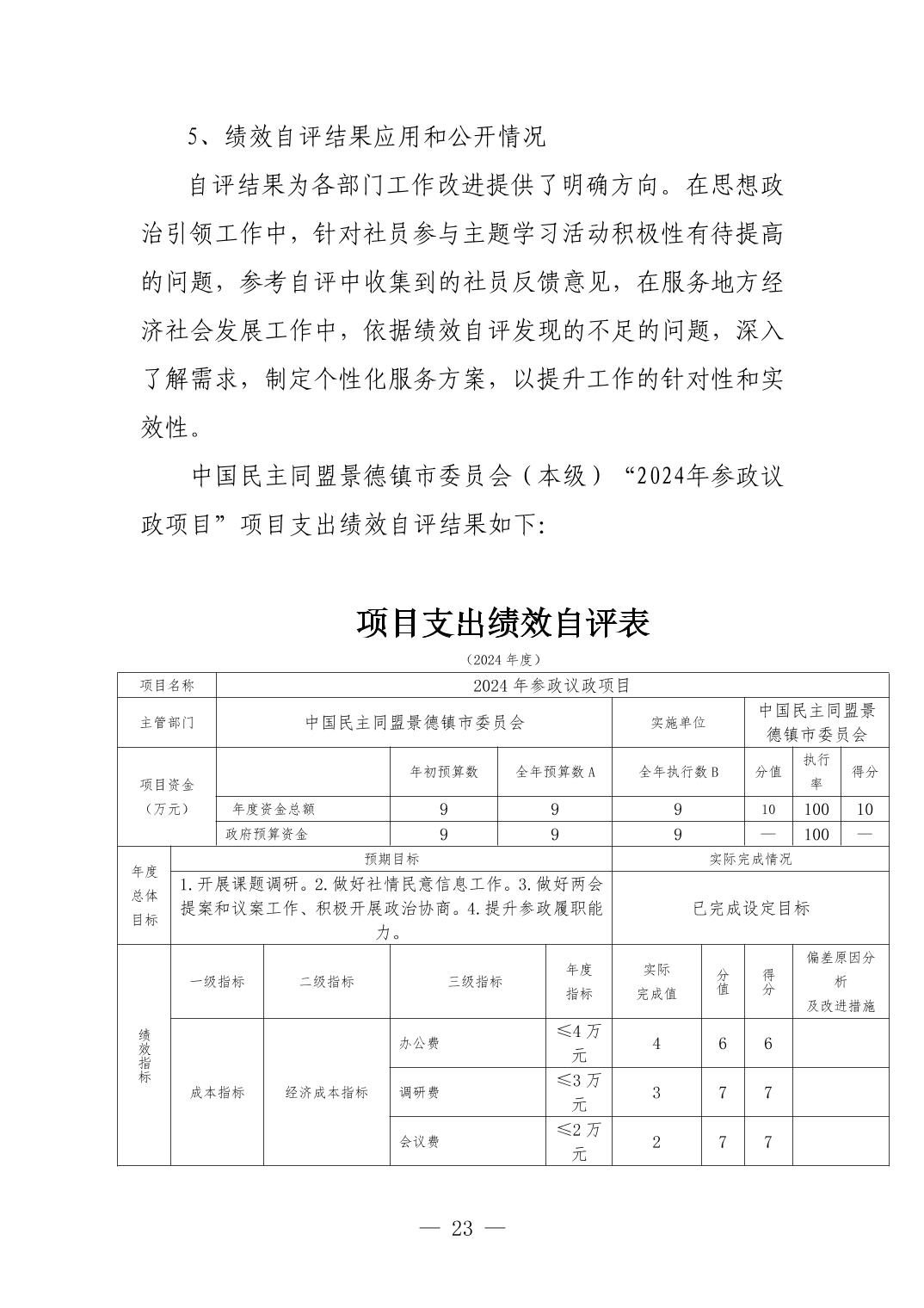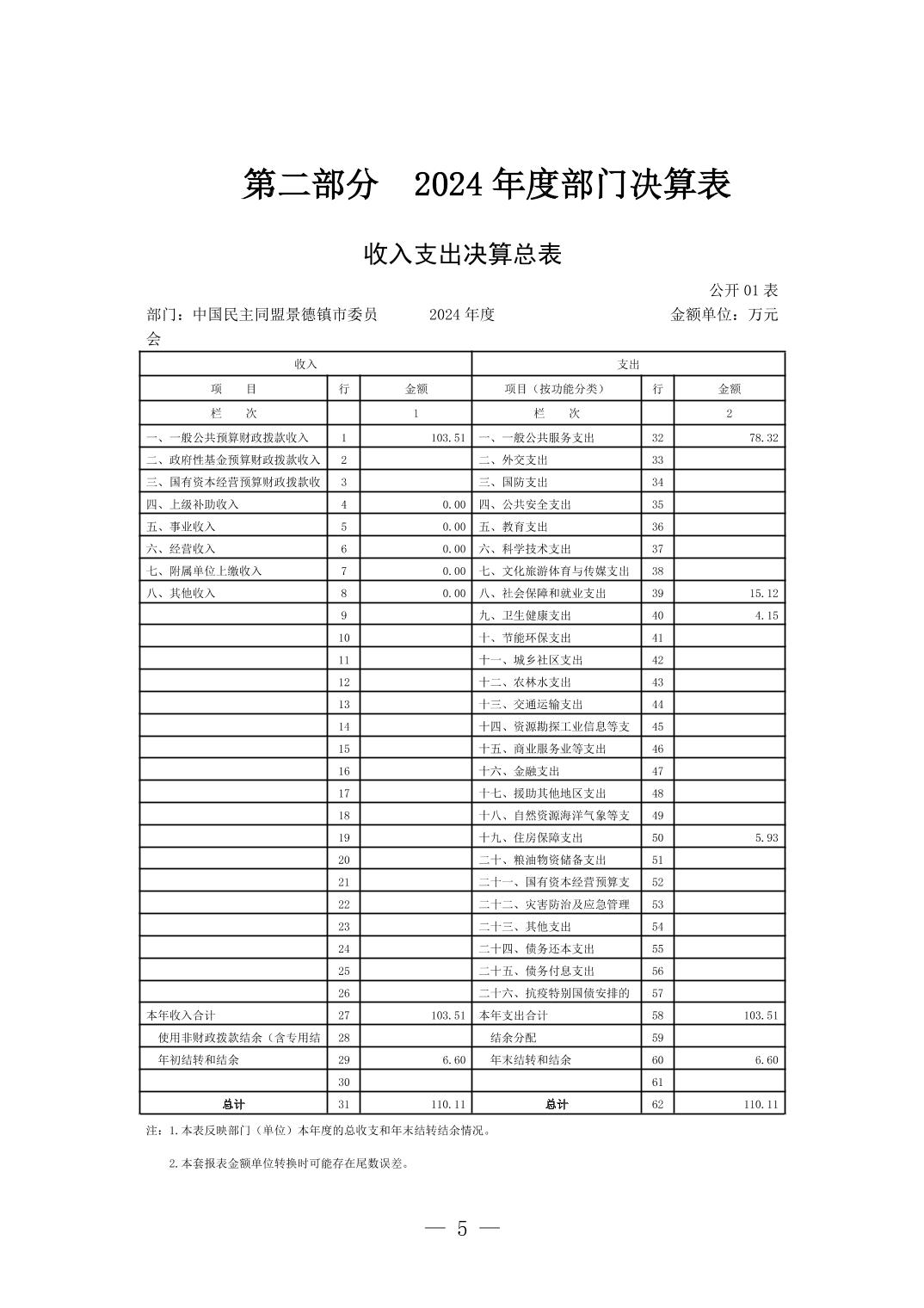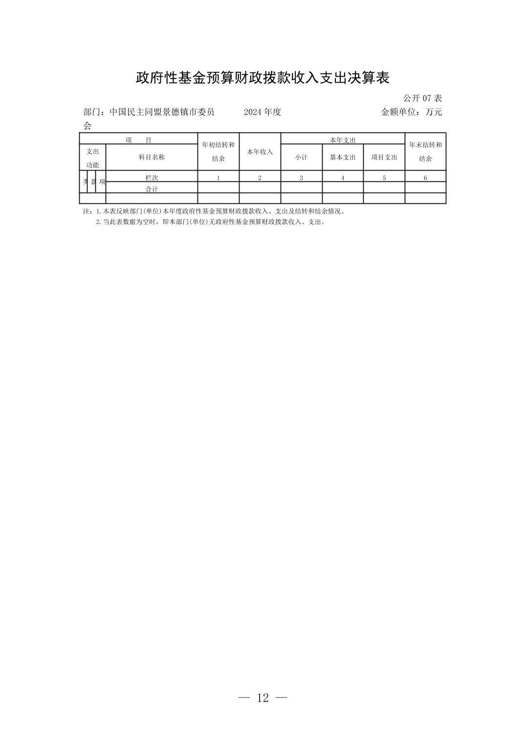 中国民主同盟景德镇市委员会2024年度部门决算