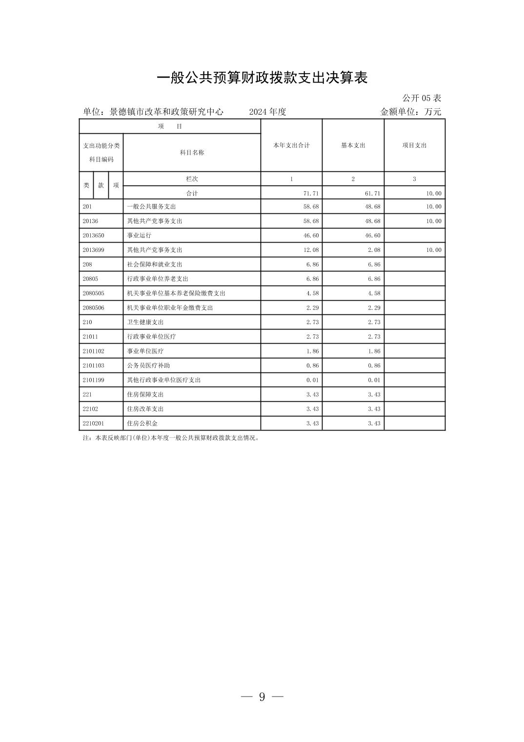景德镇市改革和政策研究中心2024年度单位决算