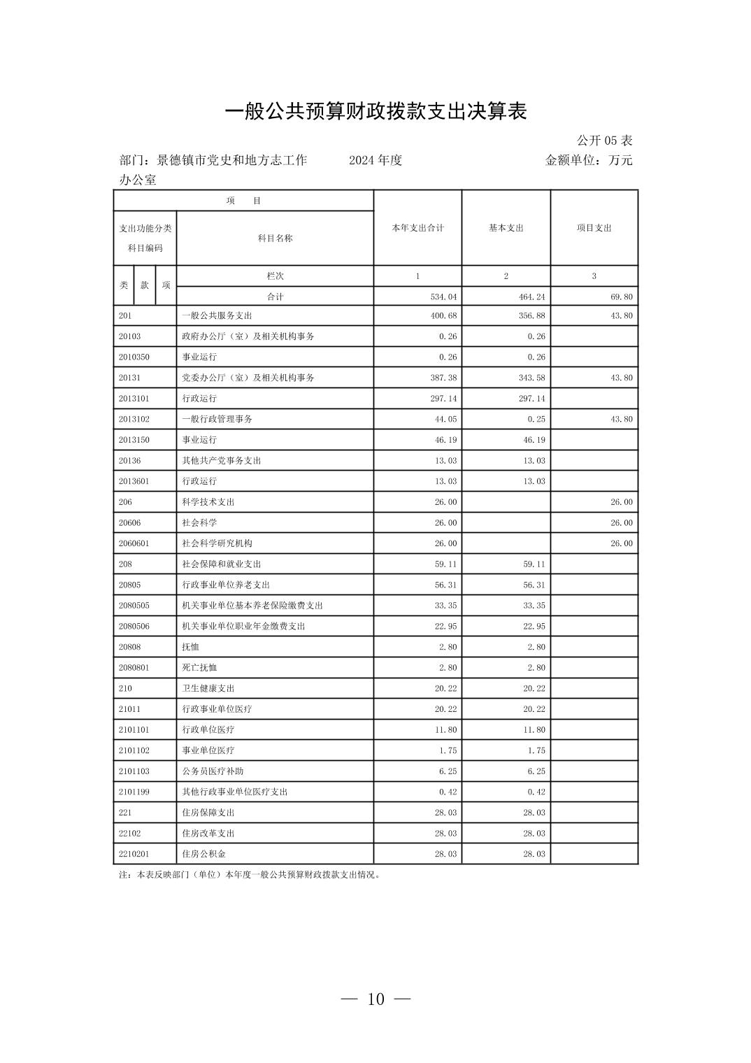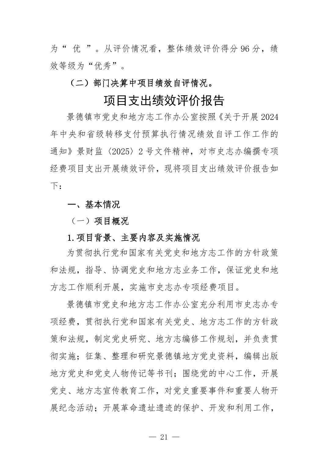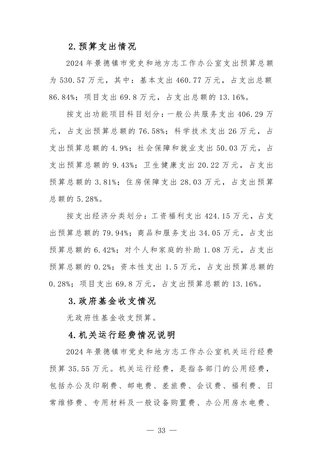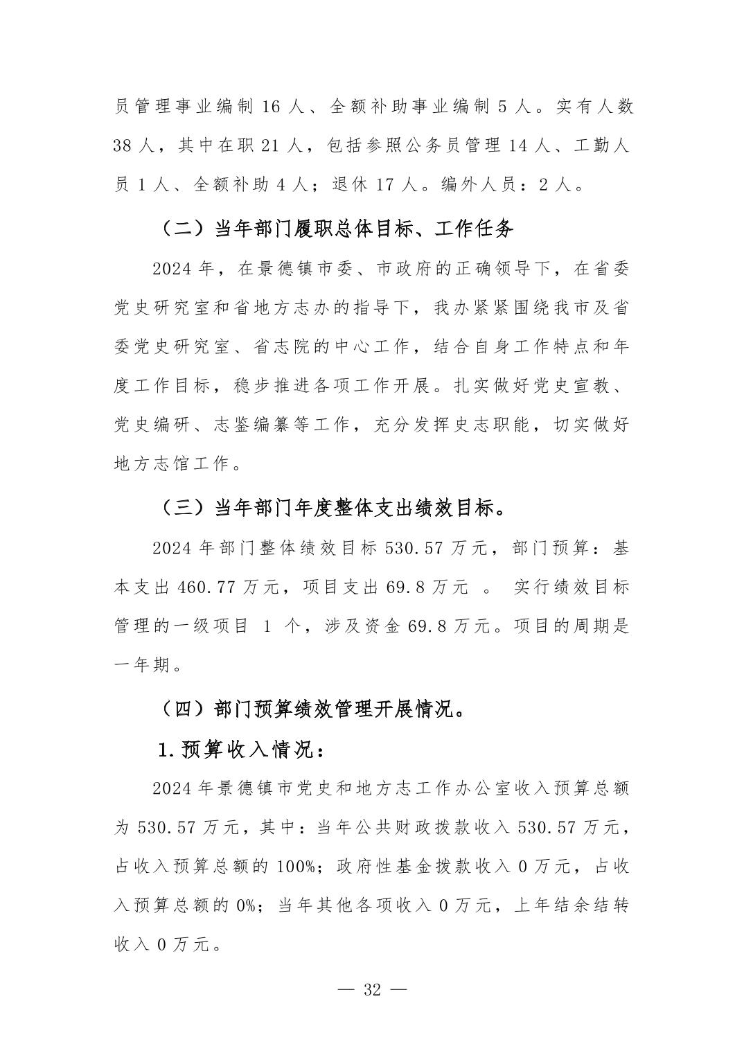 景德镇市党史和地方志工作办公室2024年度部门决算
