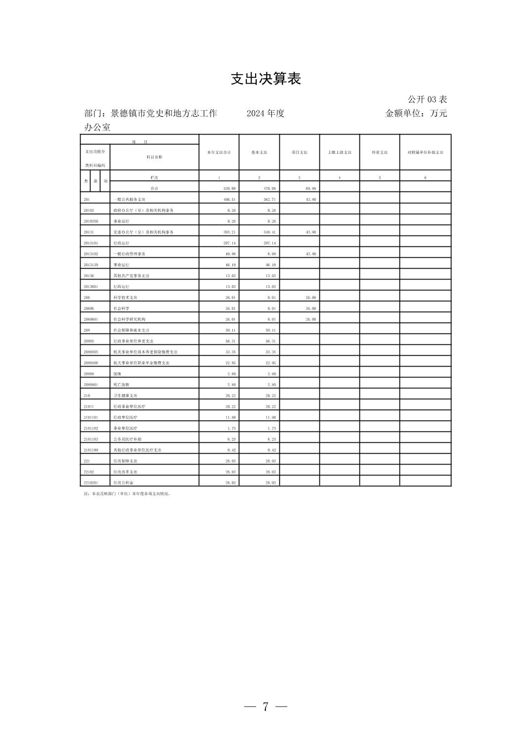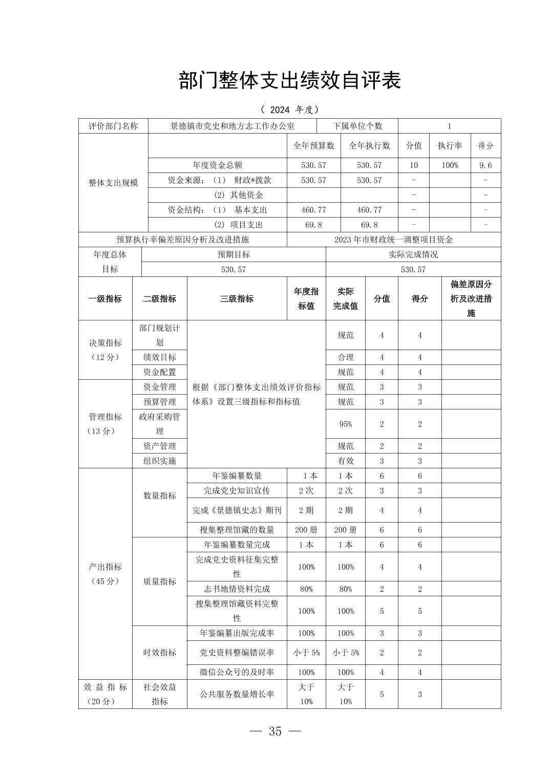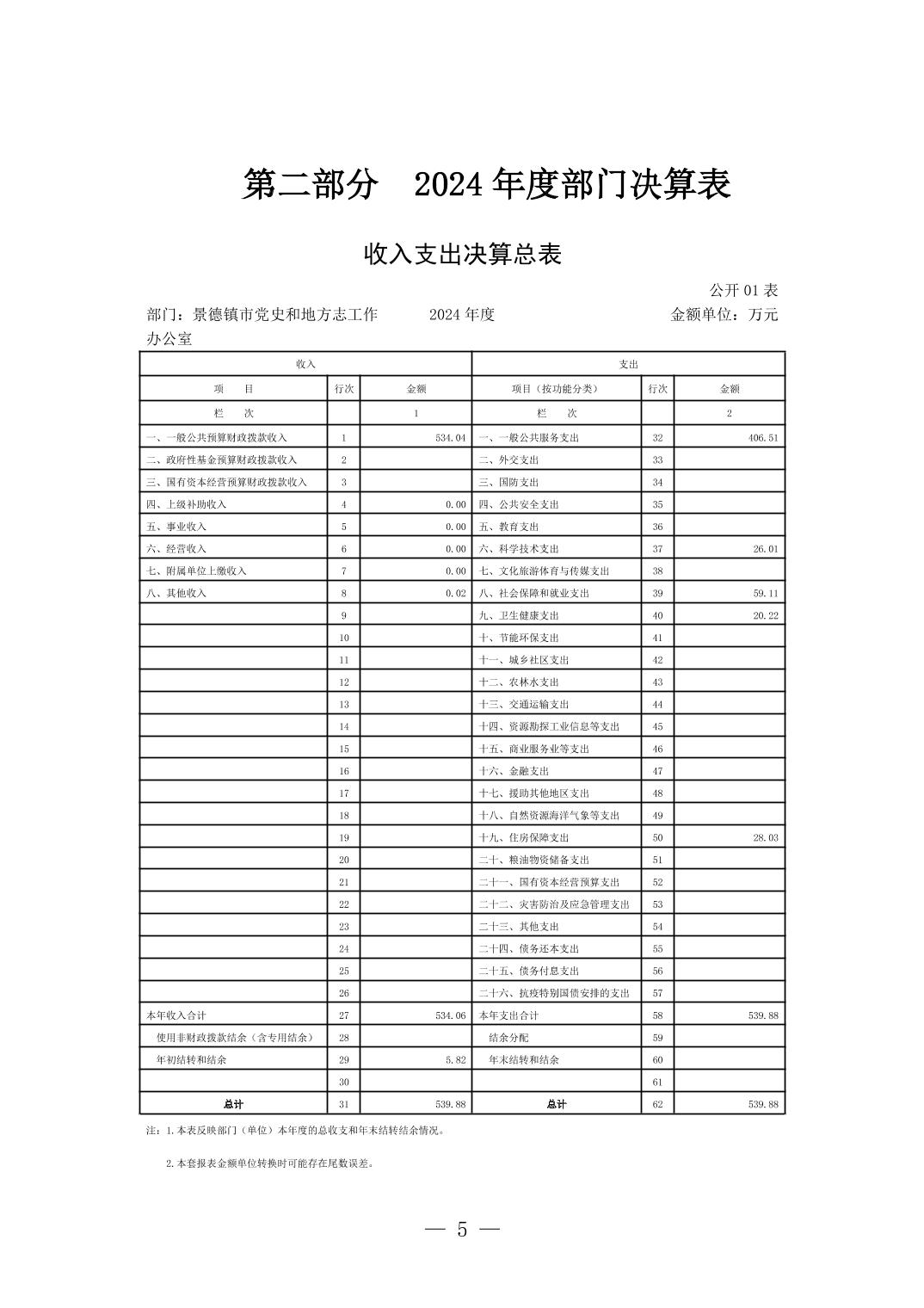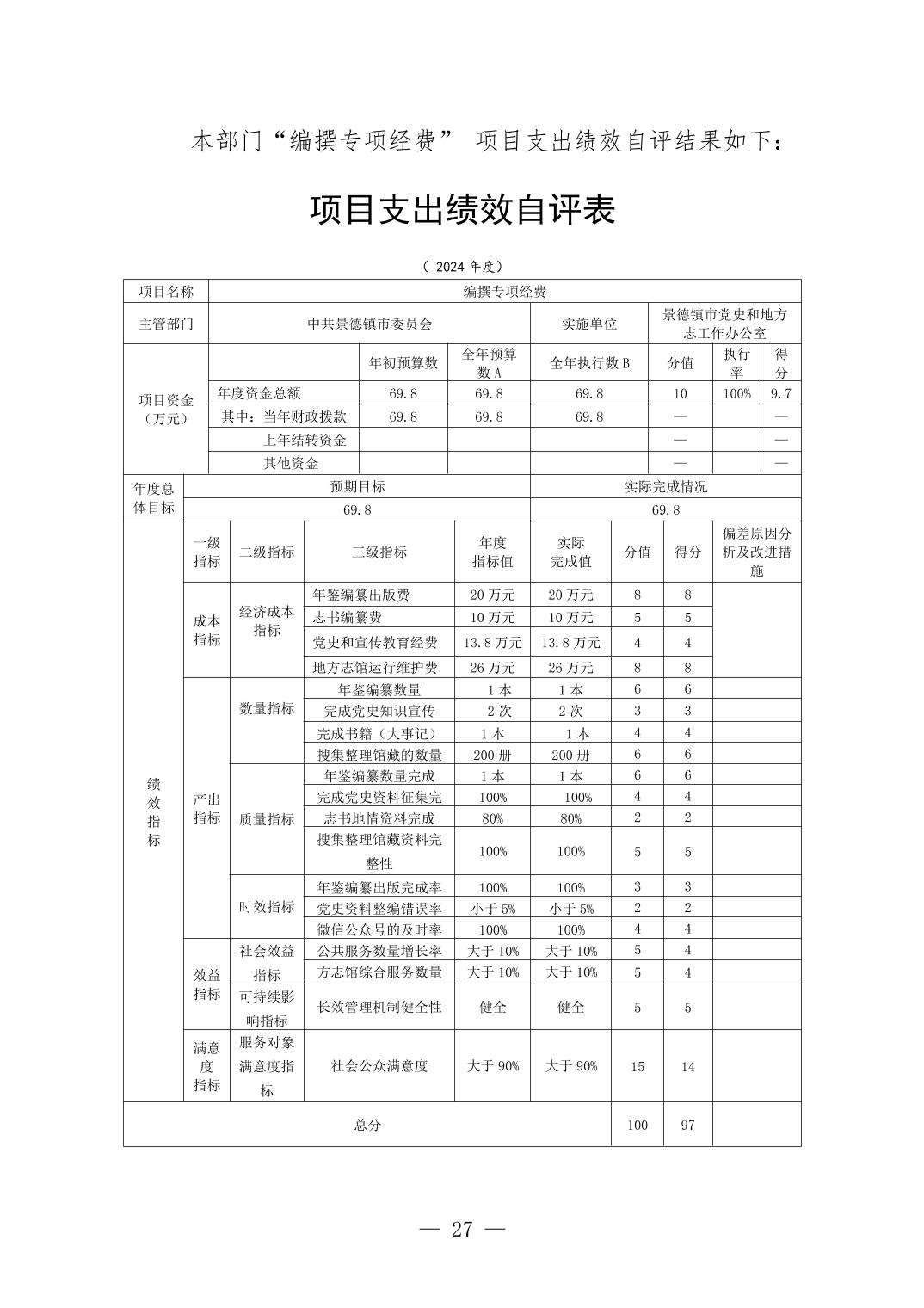 景德镇市党史和地方志工作办公室2024年度部门决算