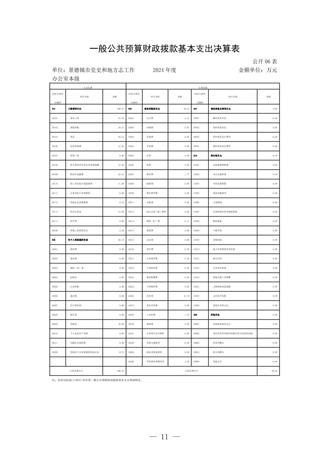 景德镇市党史和地方志工作办公室本级2024年度单位决算