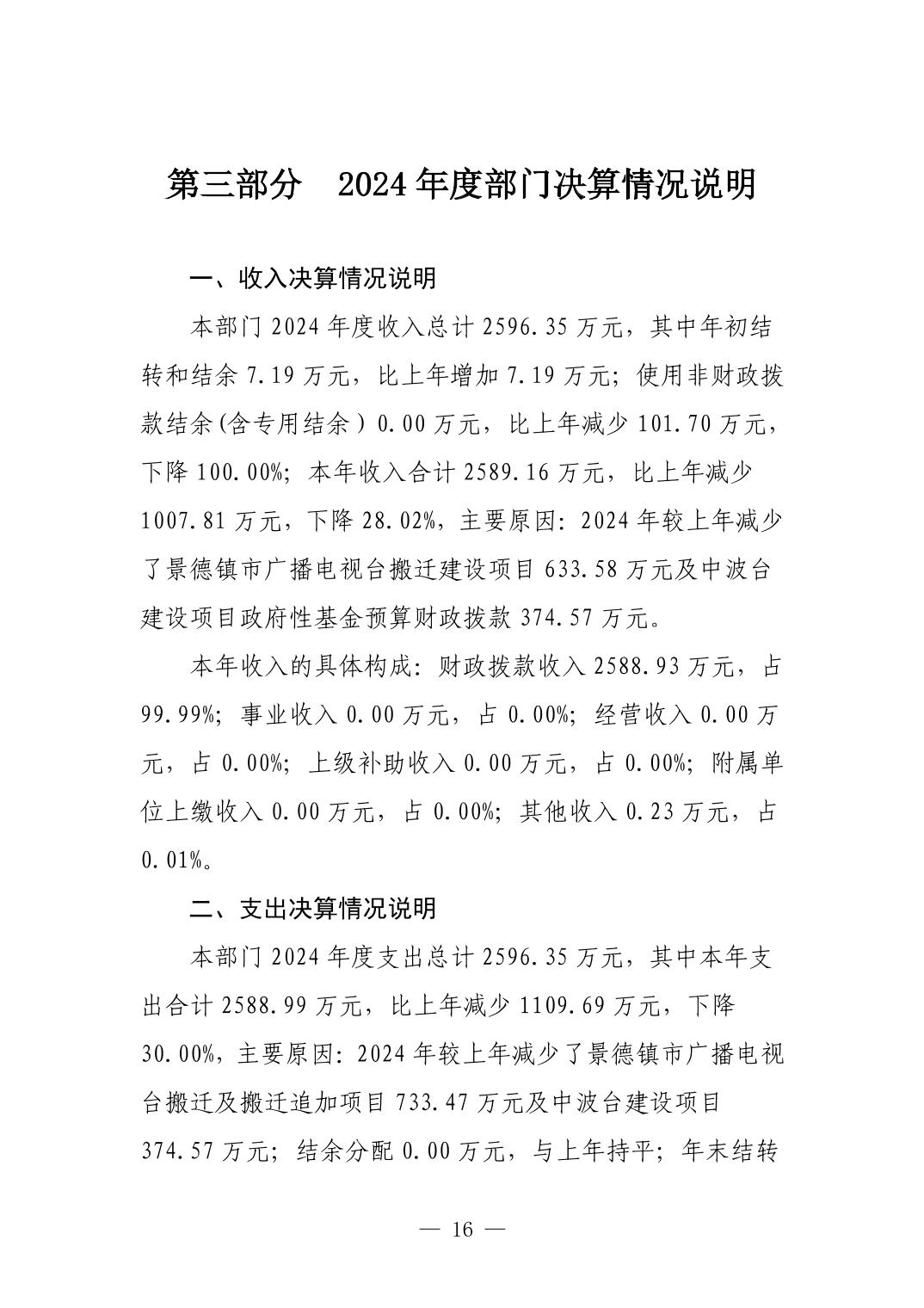 景德镇市广播电视台2024年度部门决算