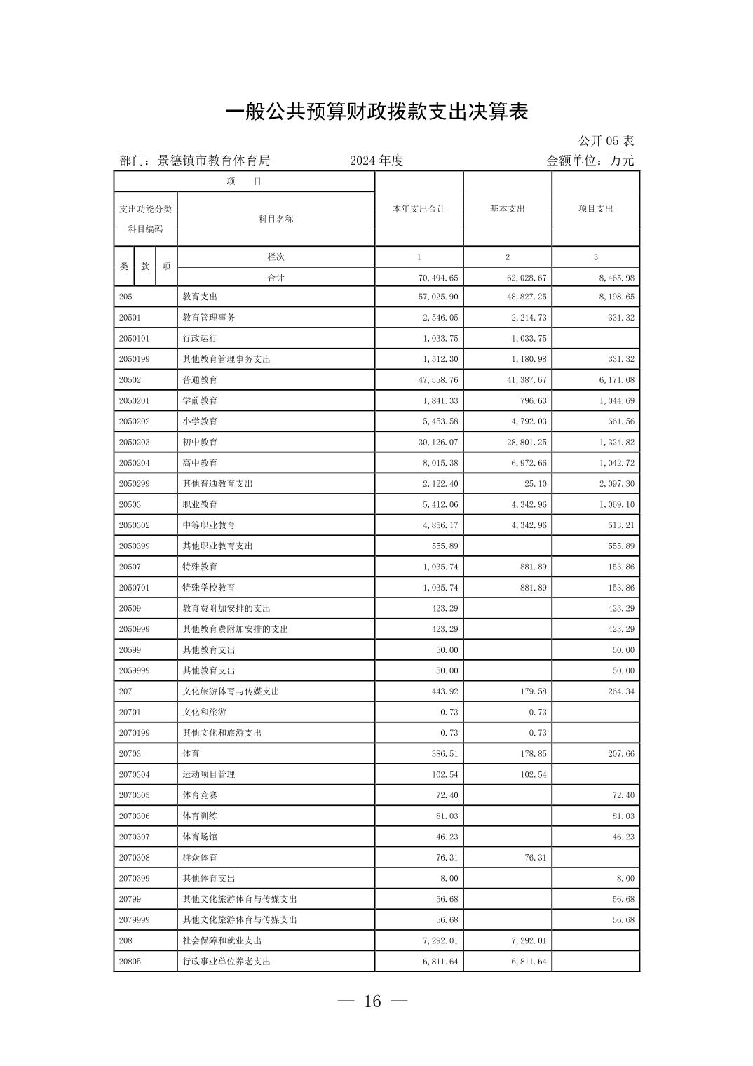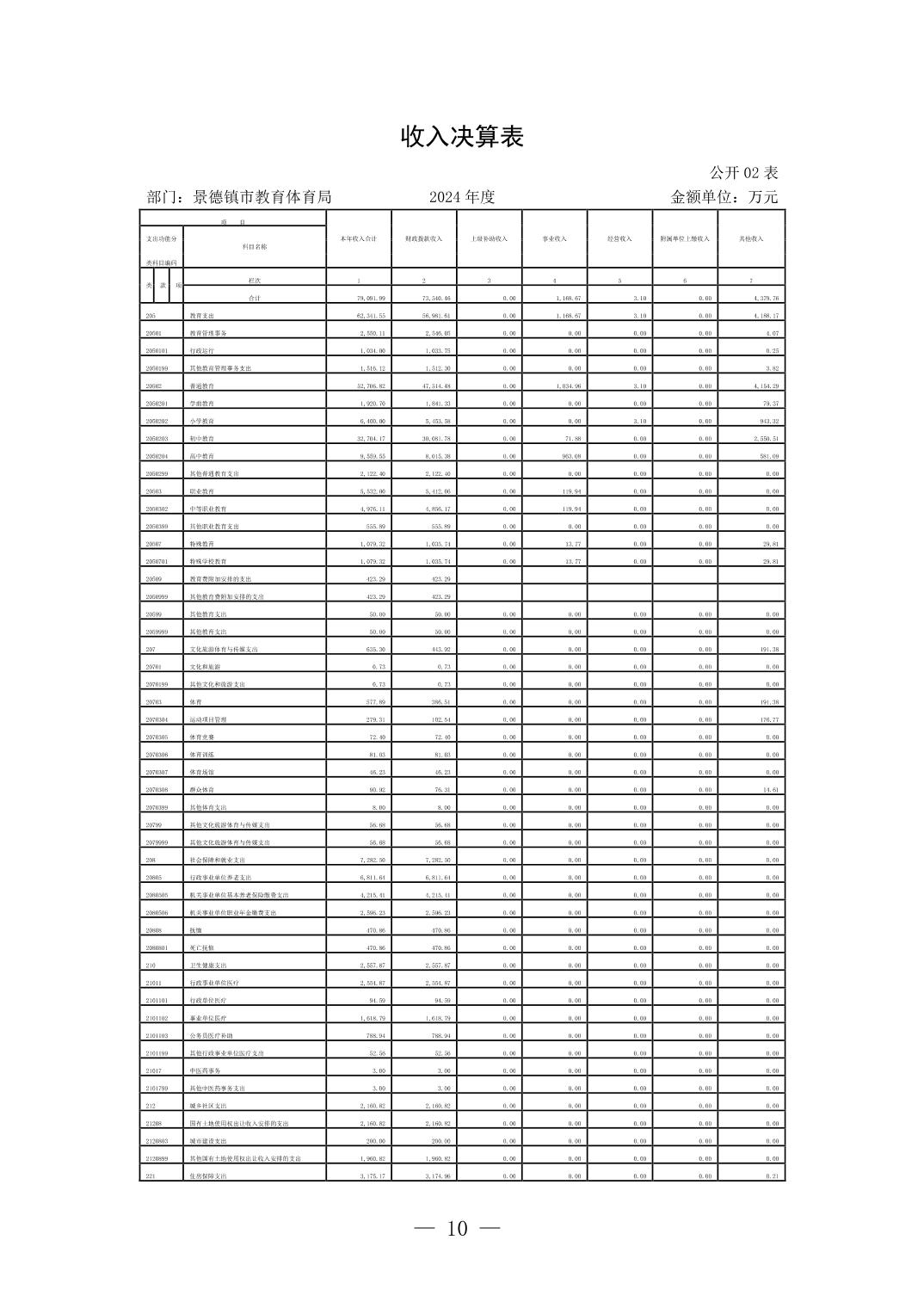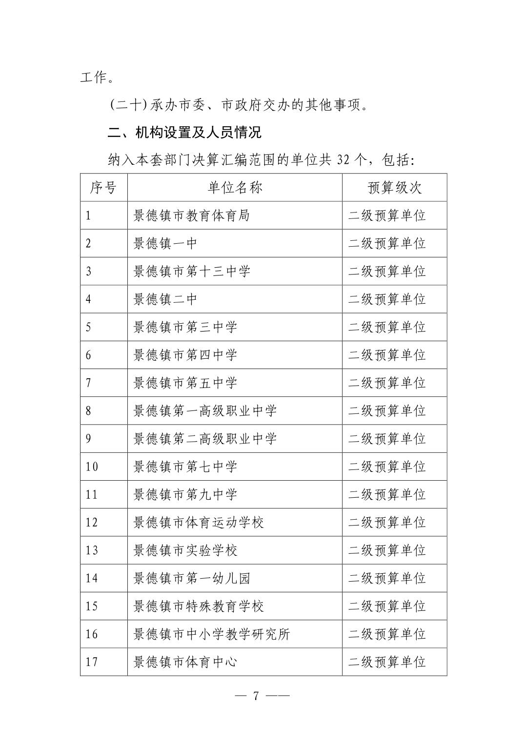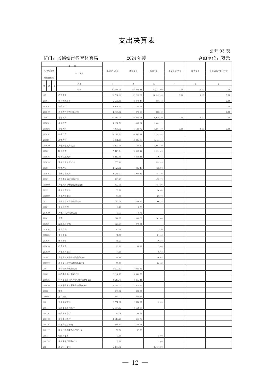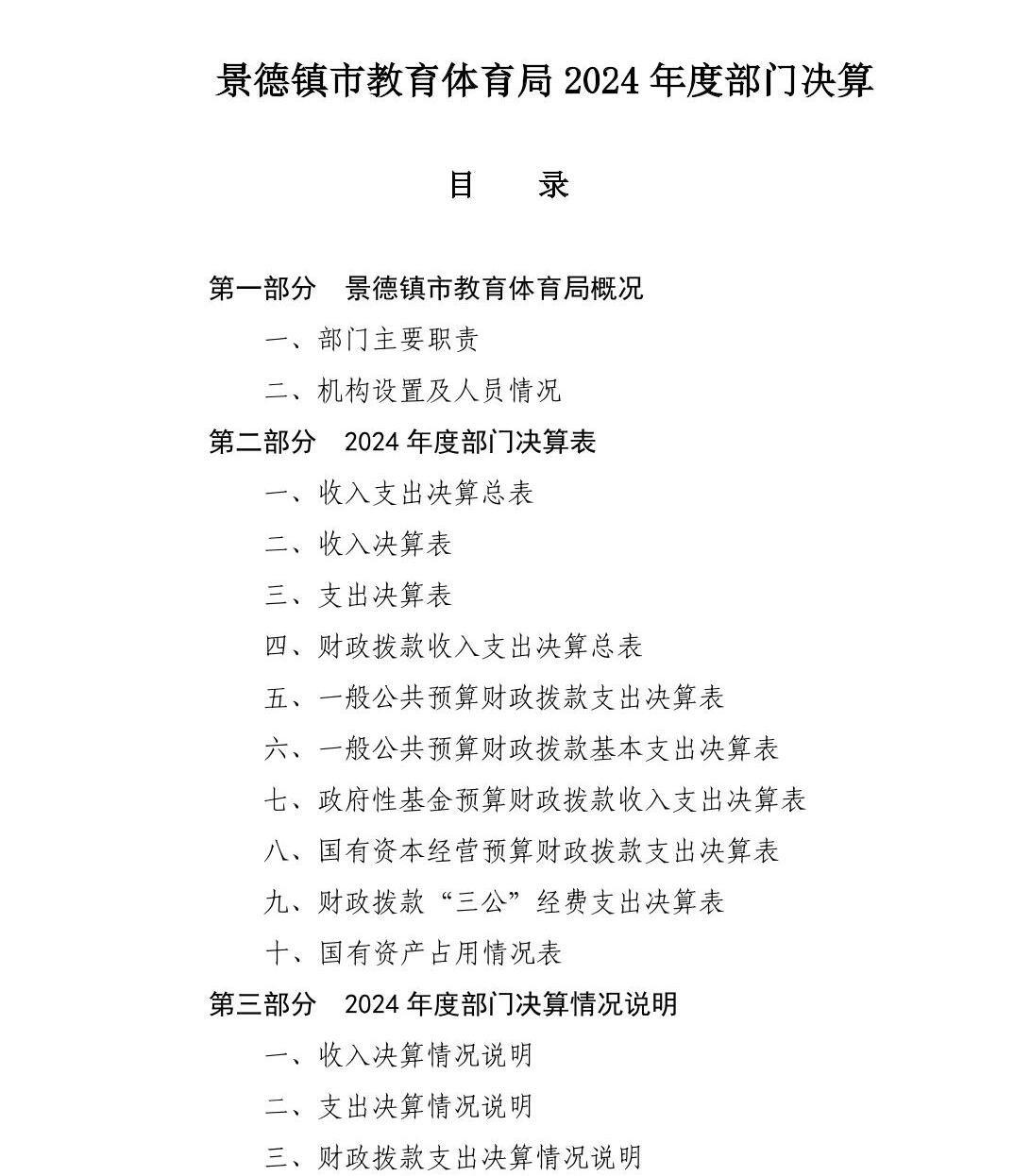 景德镇市教育体育局2024年度部门决算