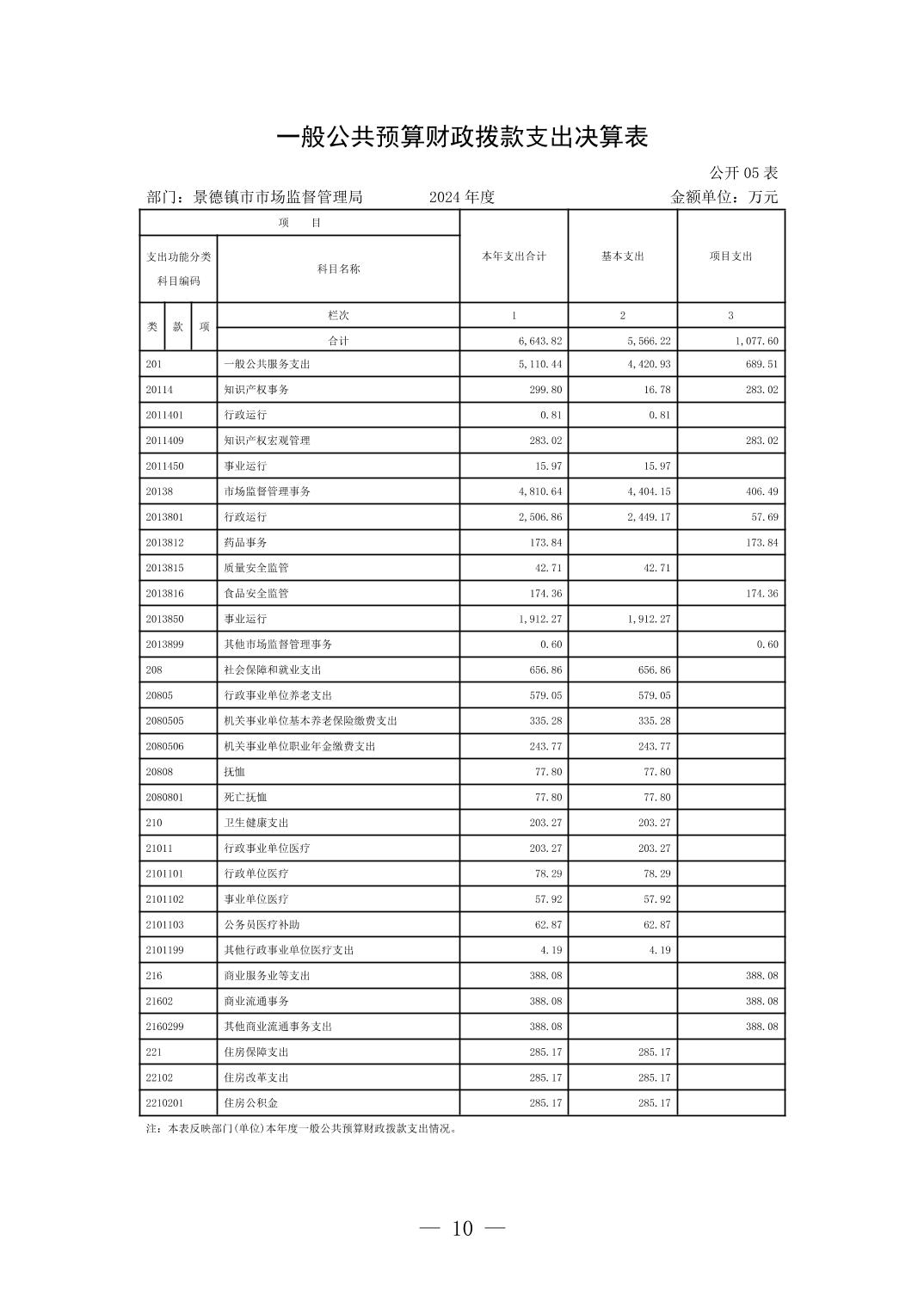 景德镇市市场监督管理局2024年度部门决算