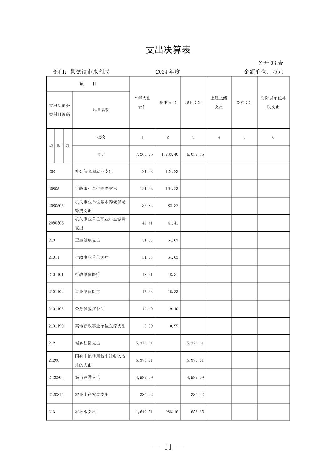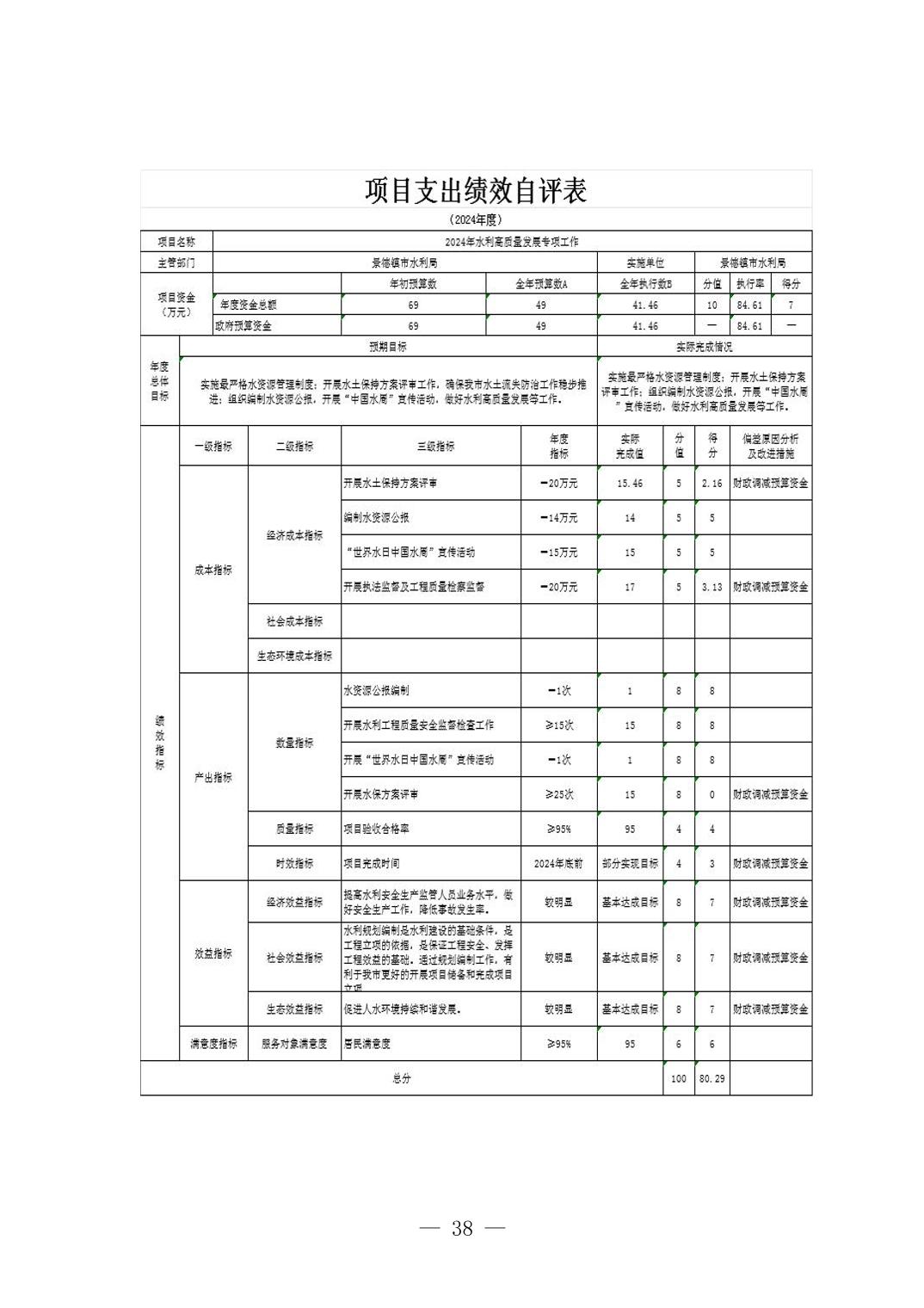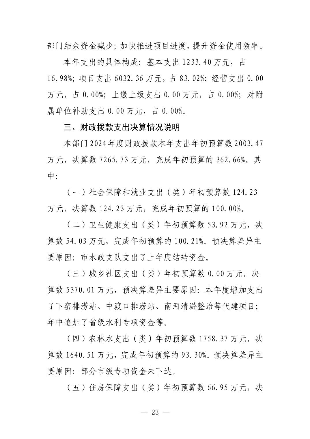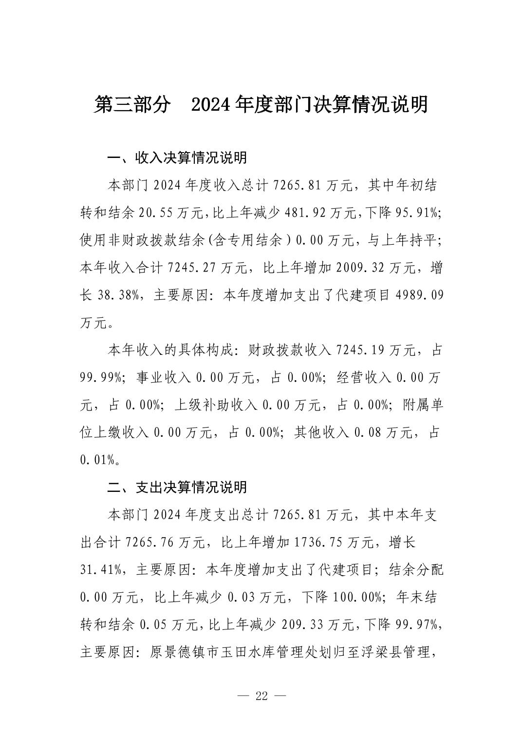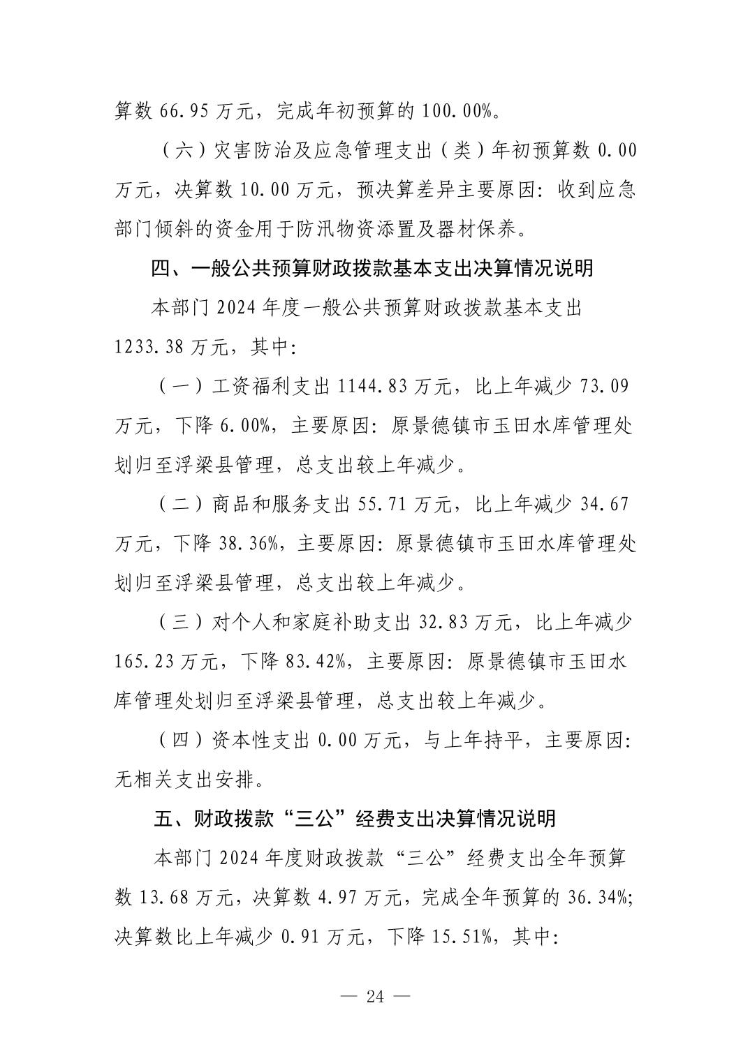 景德镇市水利局2024年度部门决算