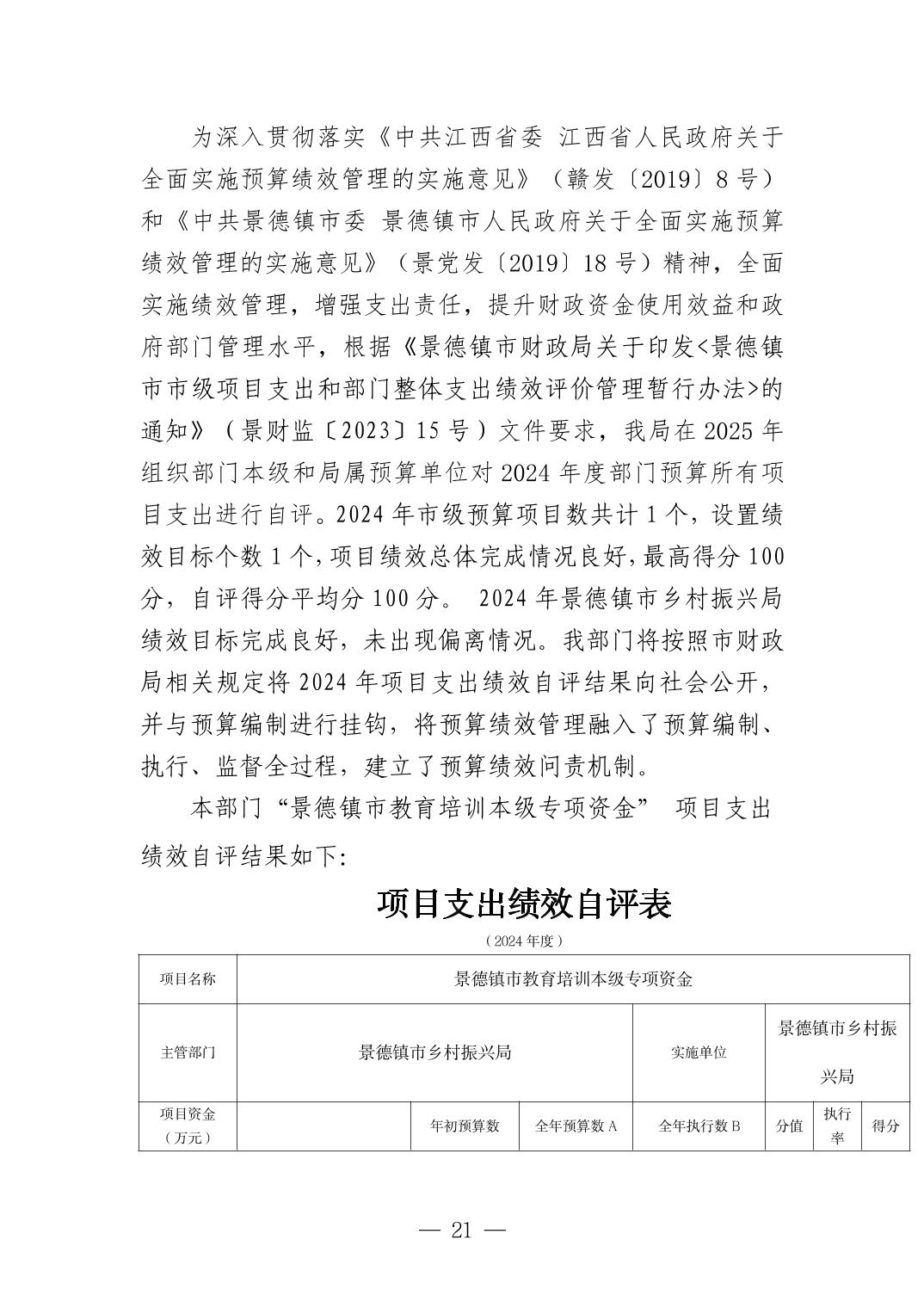 景德镇市乡村振兴局2024年度部门决算