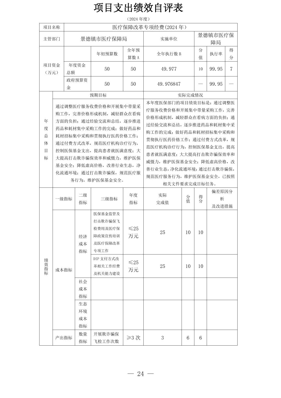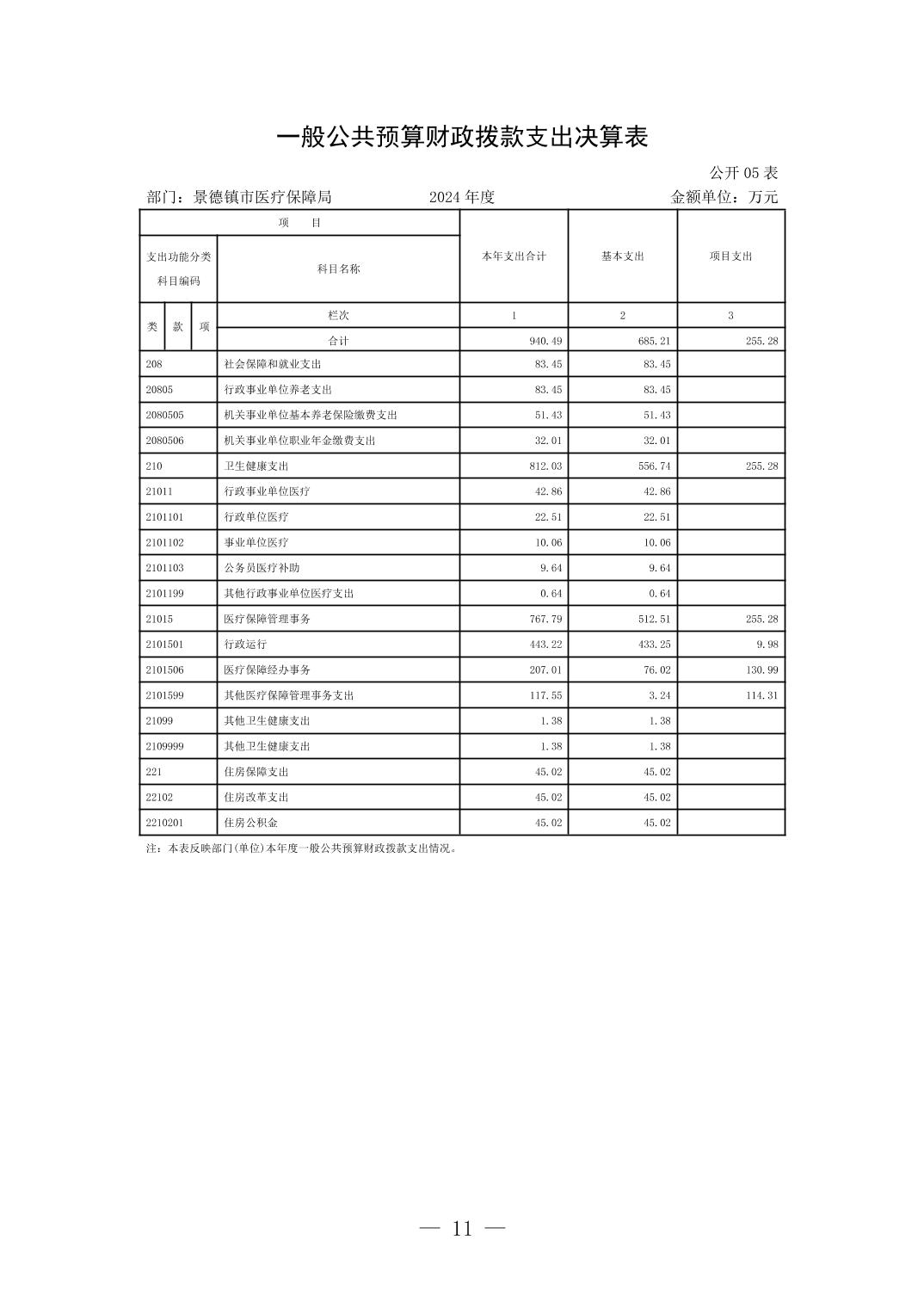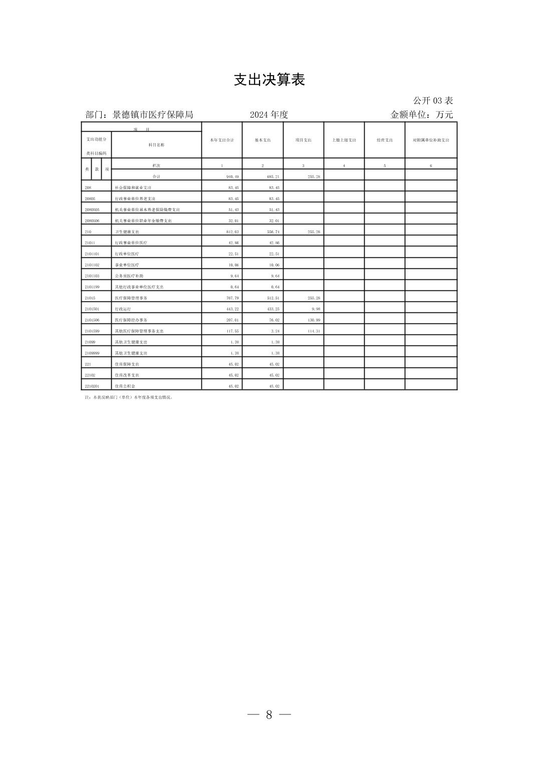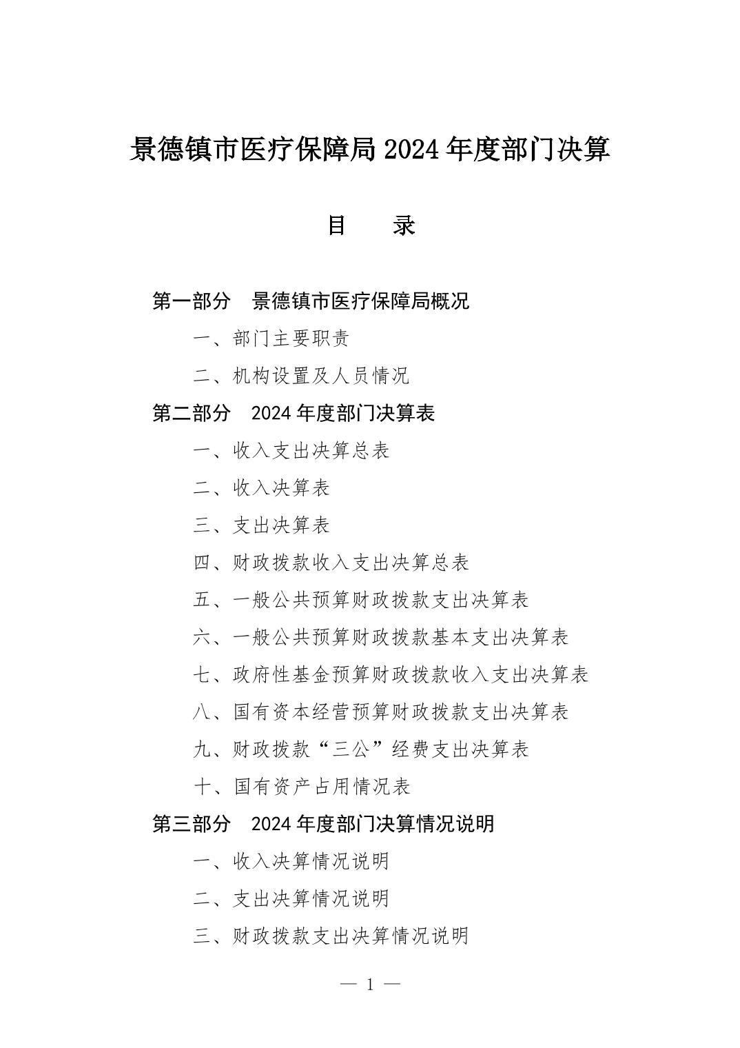 景德镇市医疗保障局2024年度部门决算