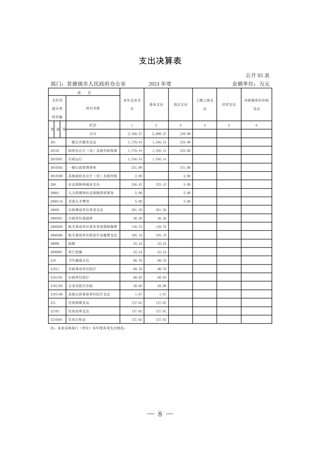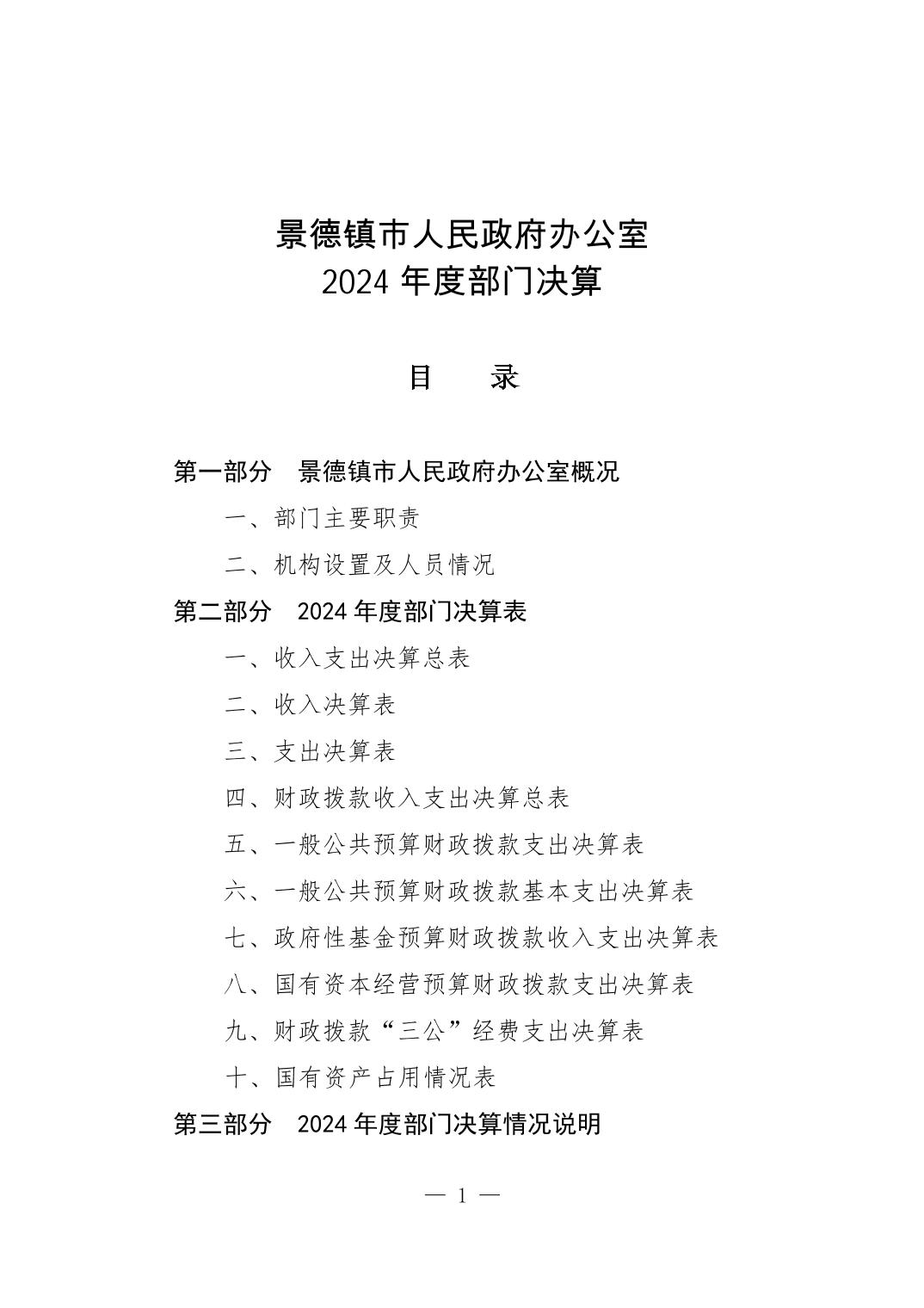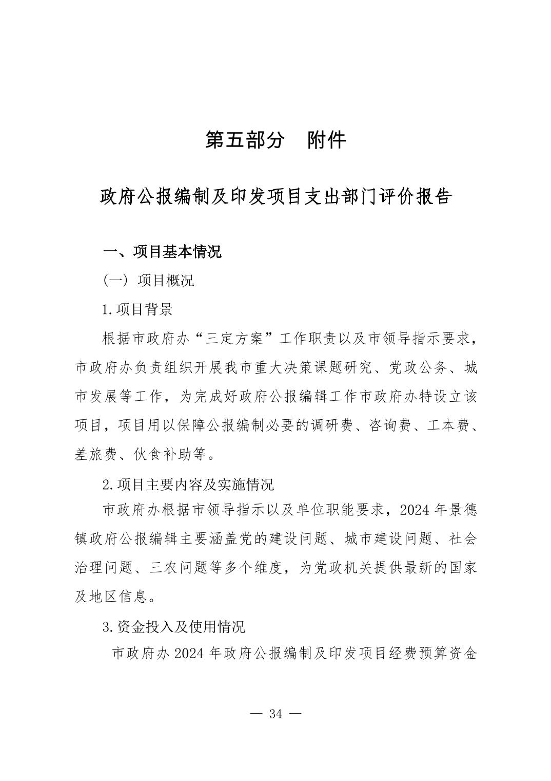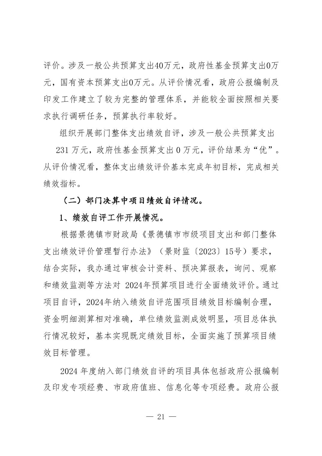 景德镇市人民政府办公室2024年度部门决算