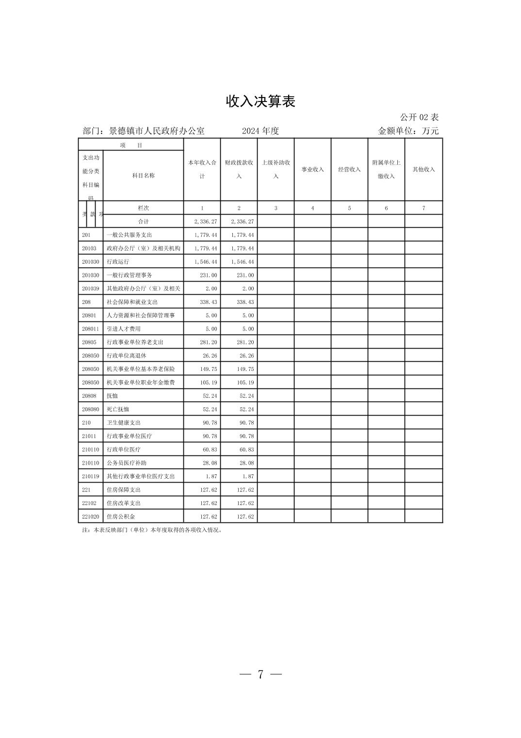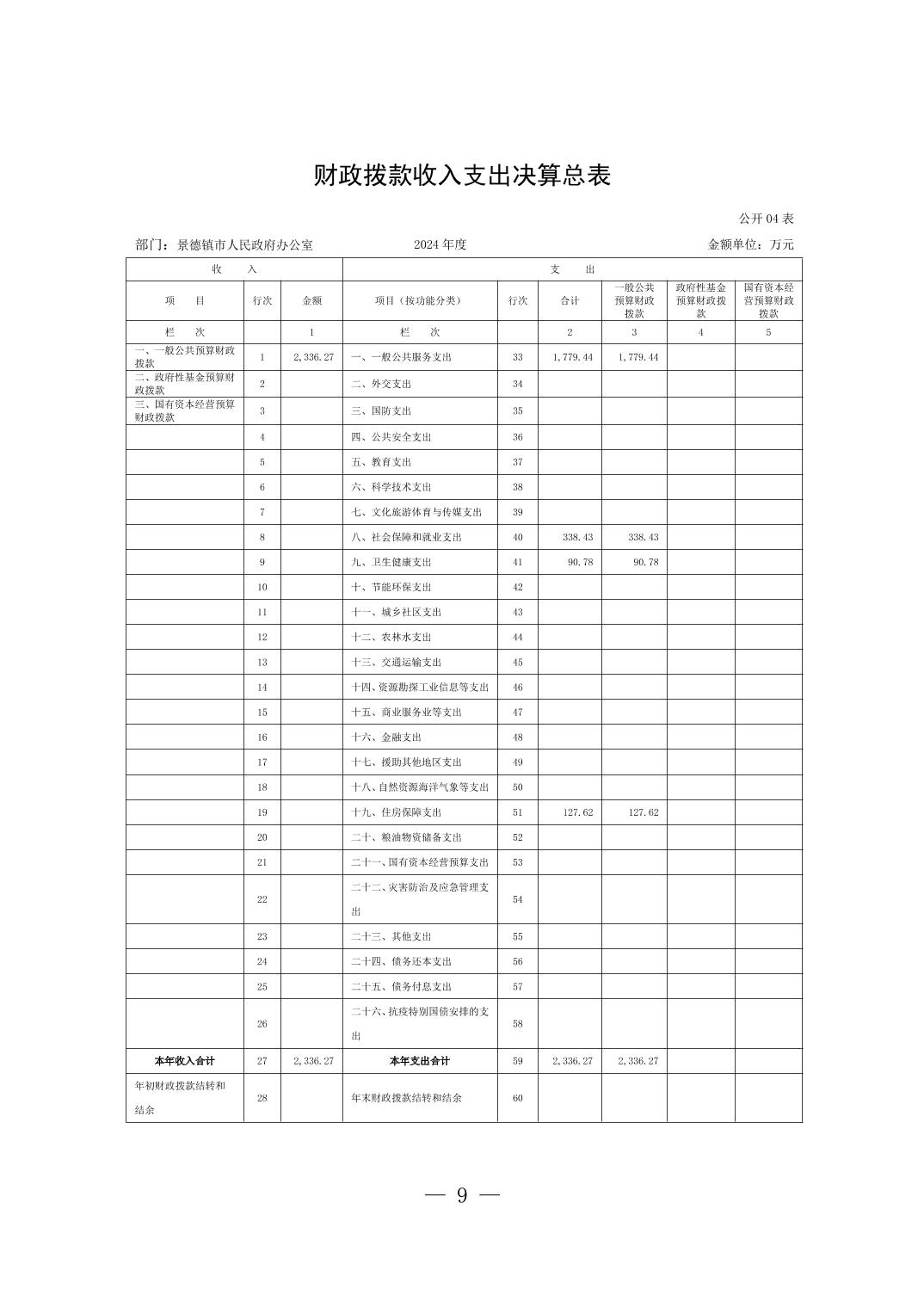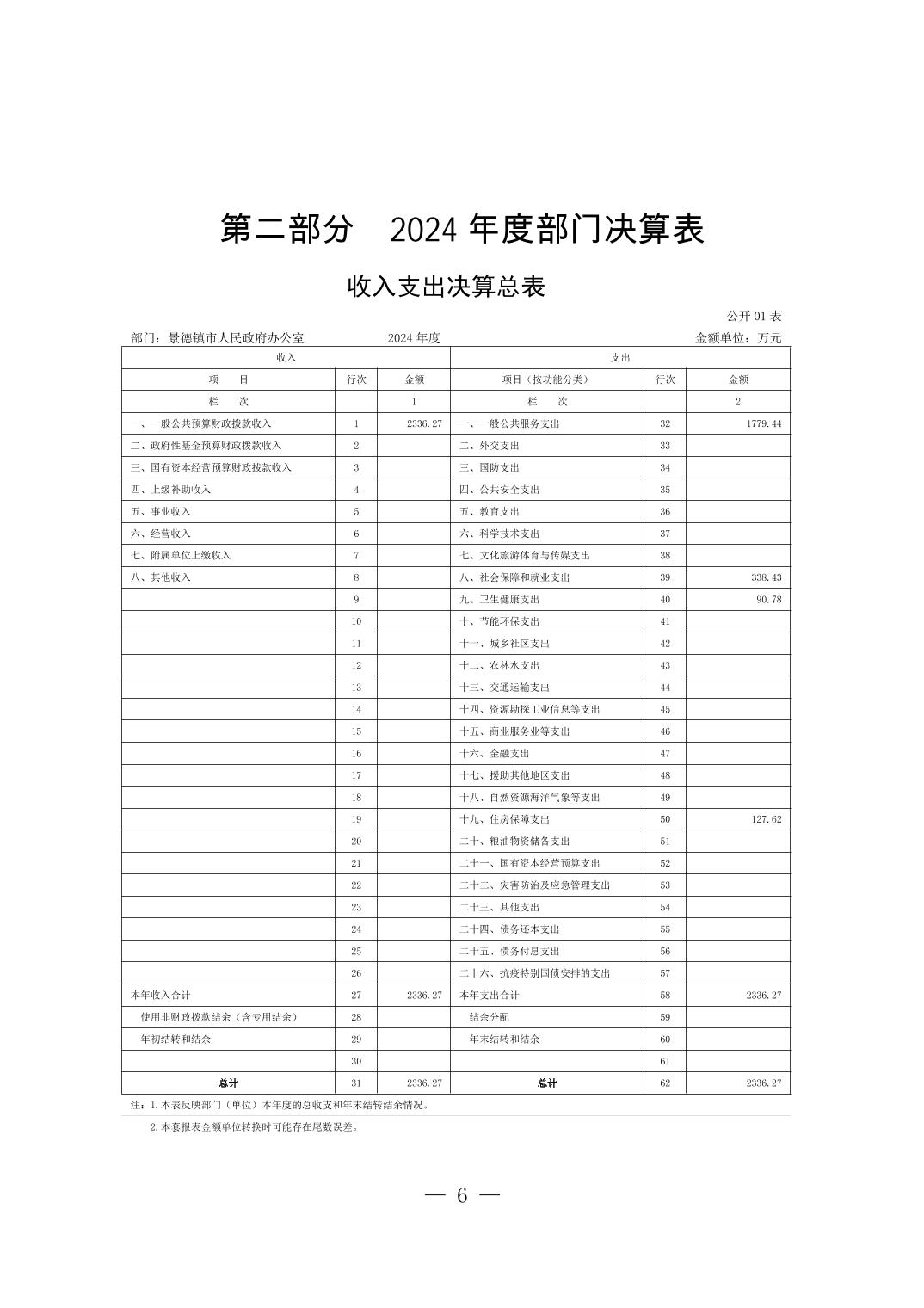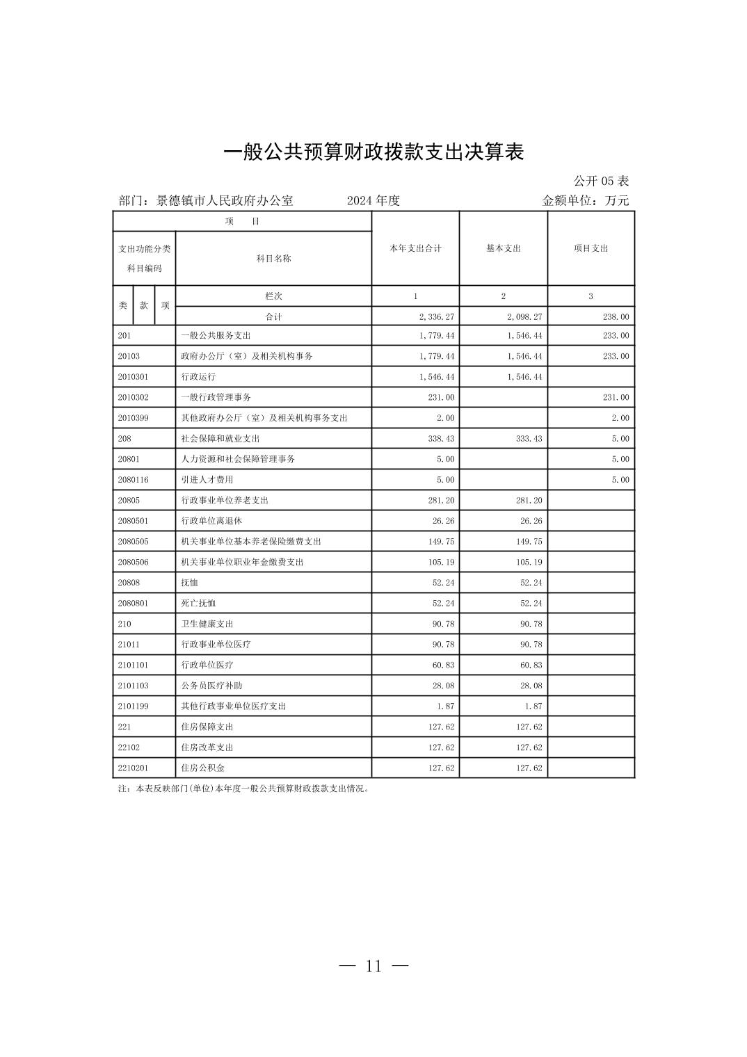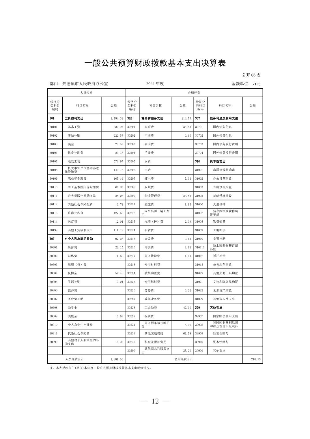 景德镇市人民政府办公室2024年度部门决算