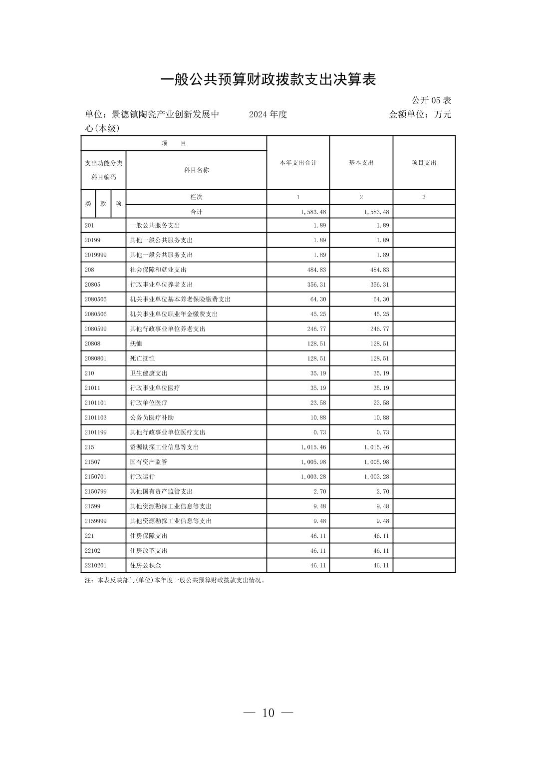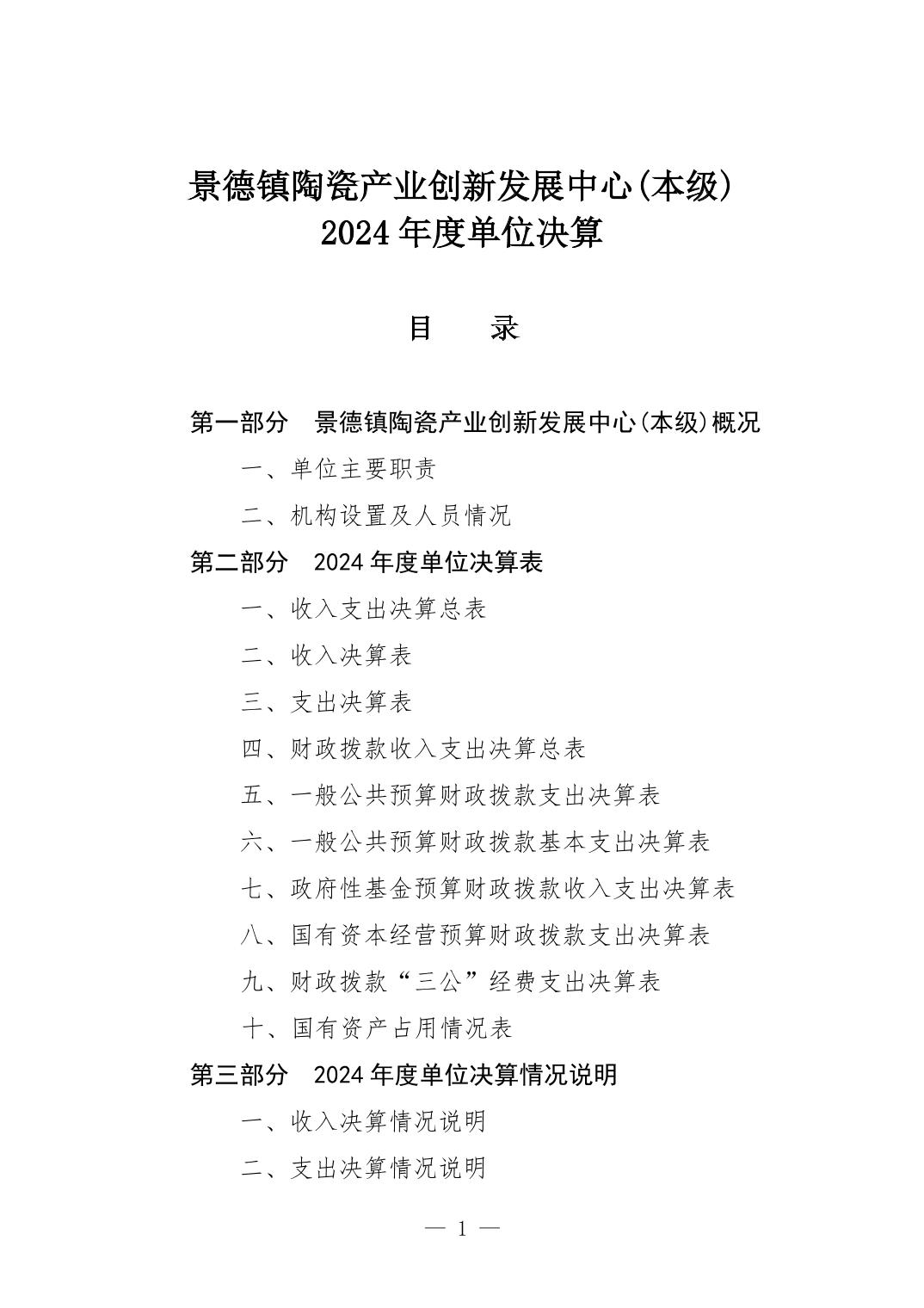 景德镇陶瓷产业创新发展中心(本级)2024年单位决算