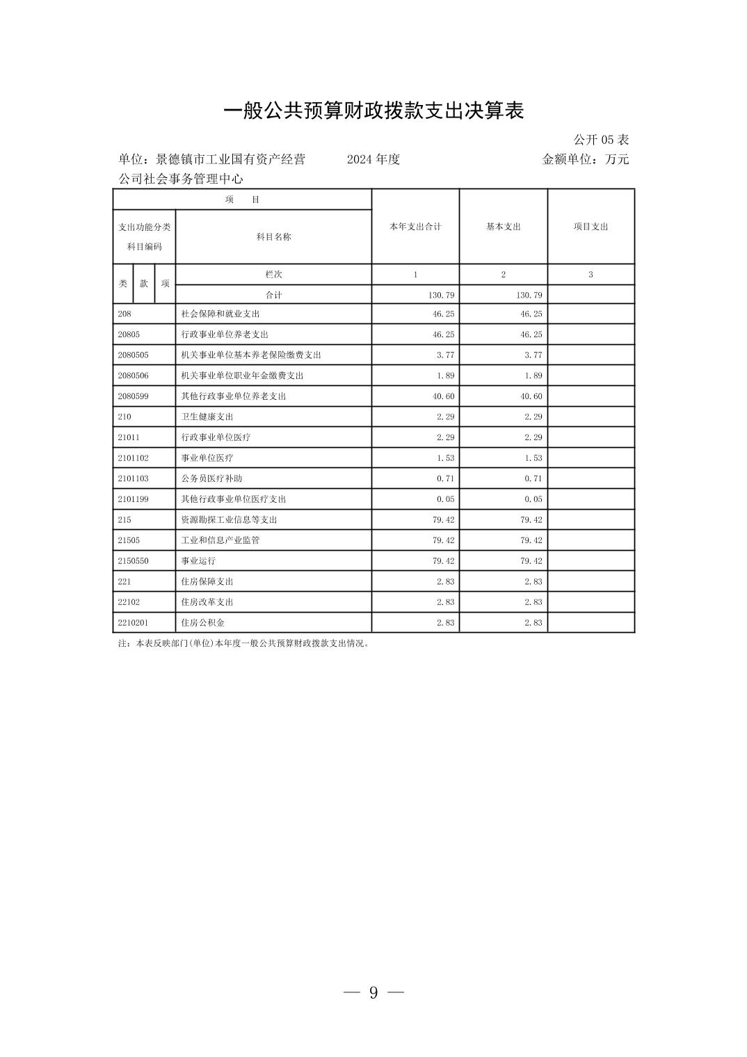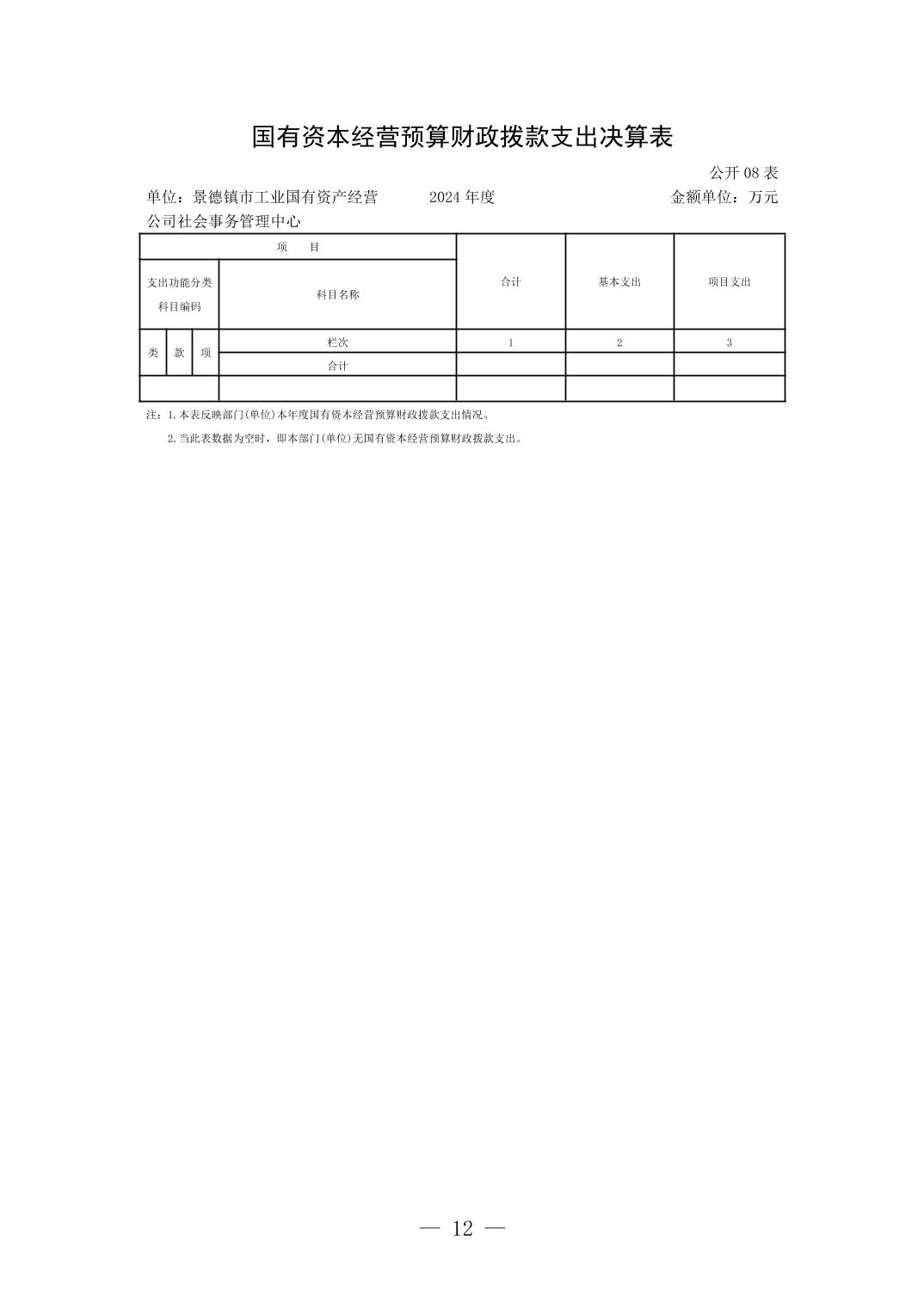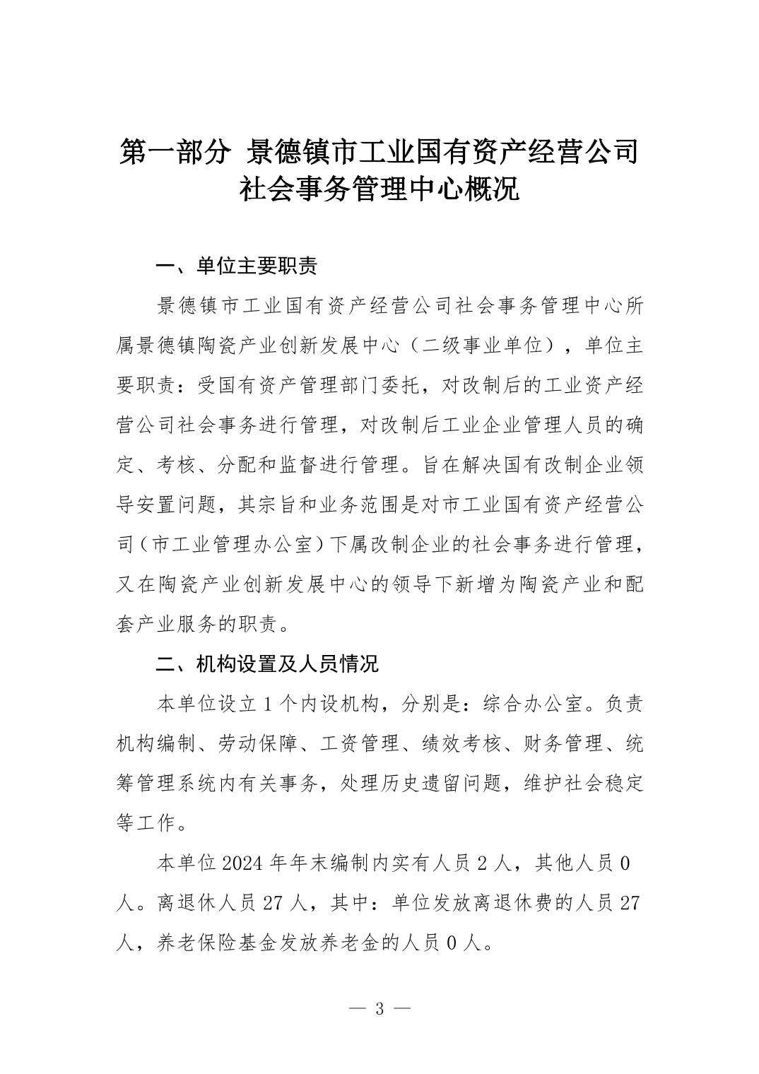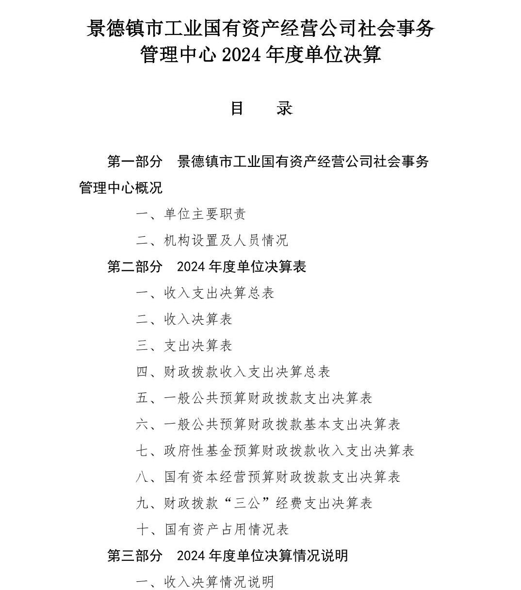景德镇市工业国有资产经营公司社会事务管理中心2024年单位决算公开