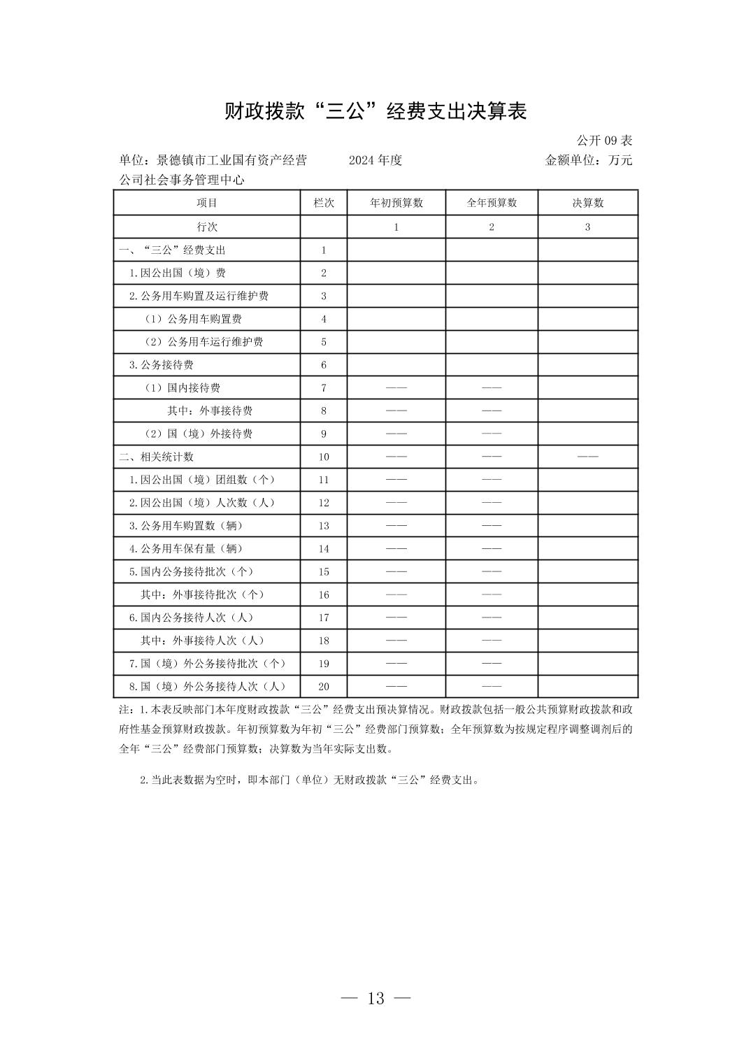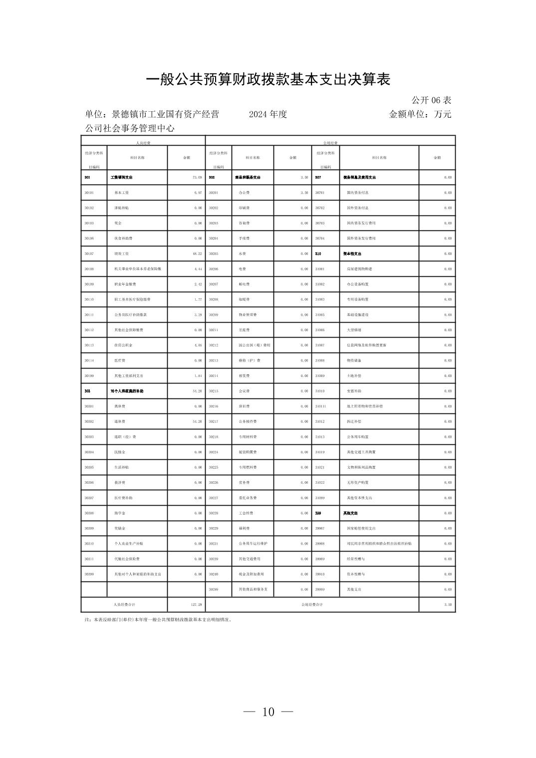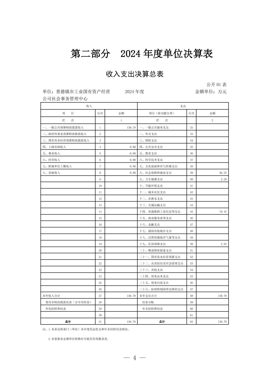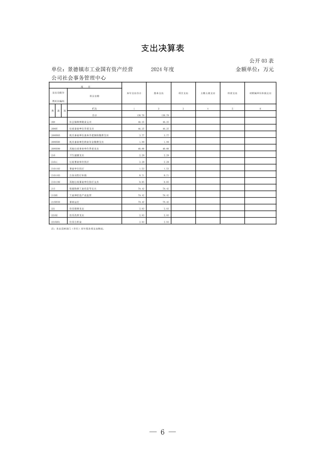 景德镇市工业国有资产经营公司社会事务管理中心2024年单位决算公开