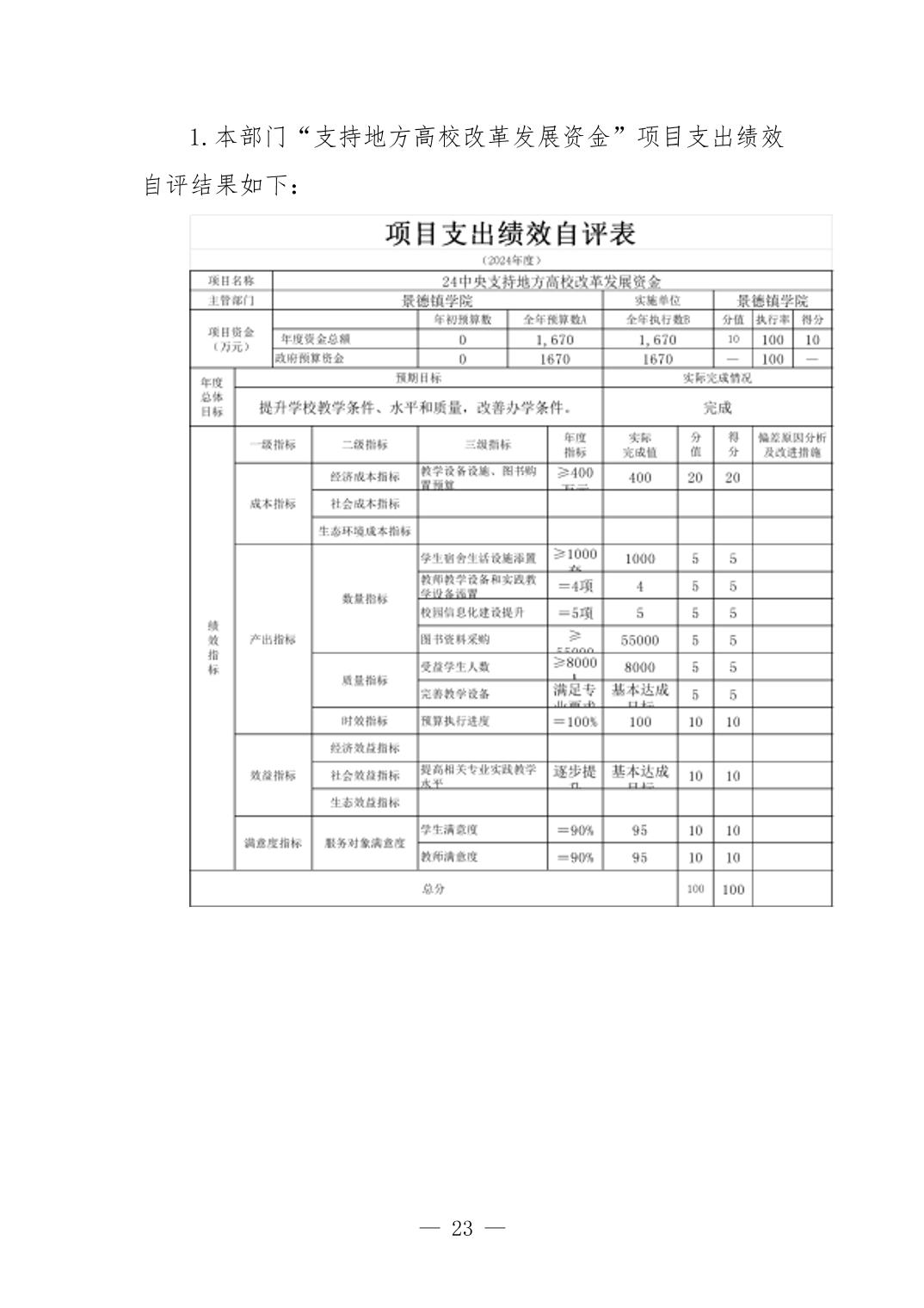 景德镇学院2024年度部门决算