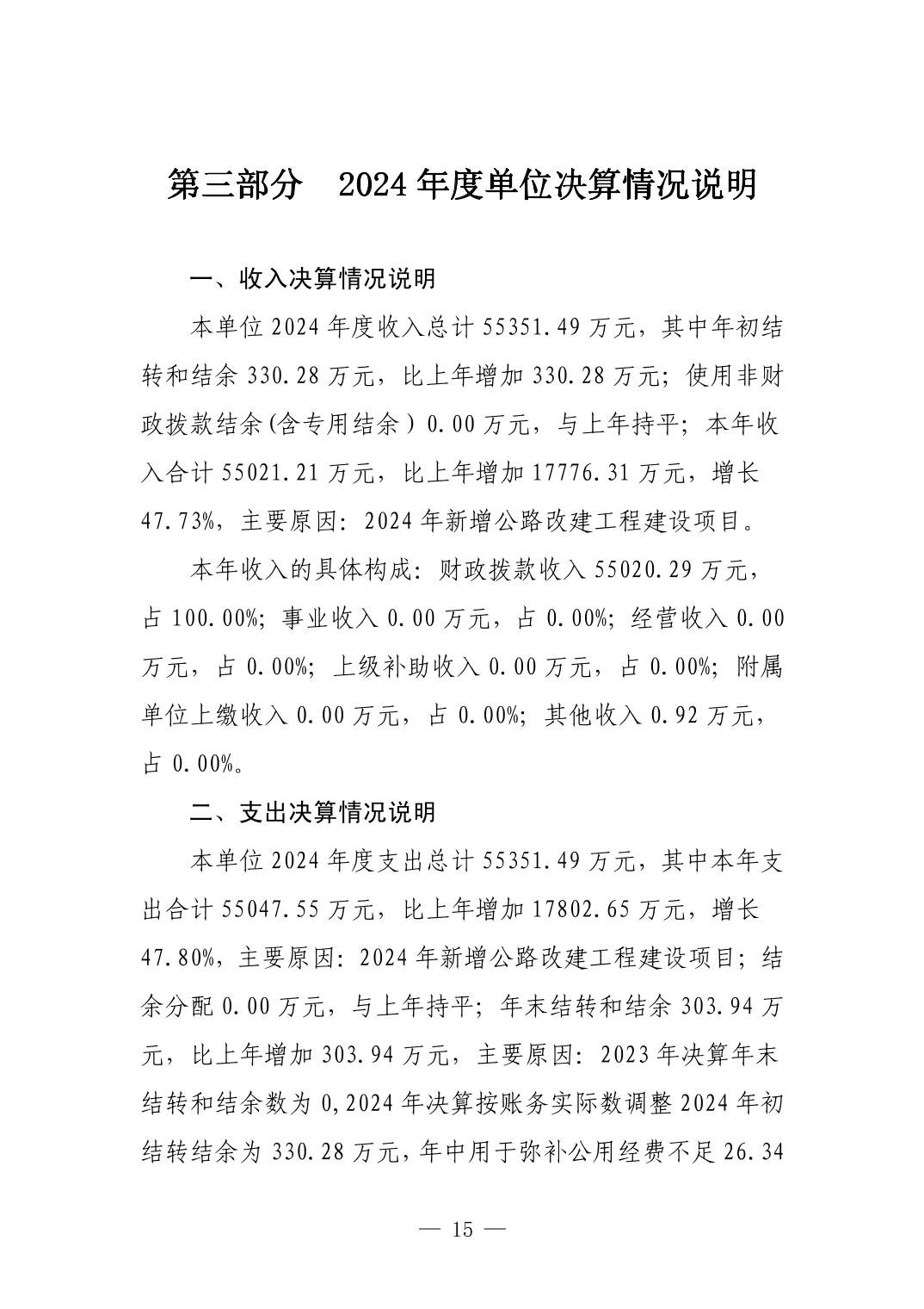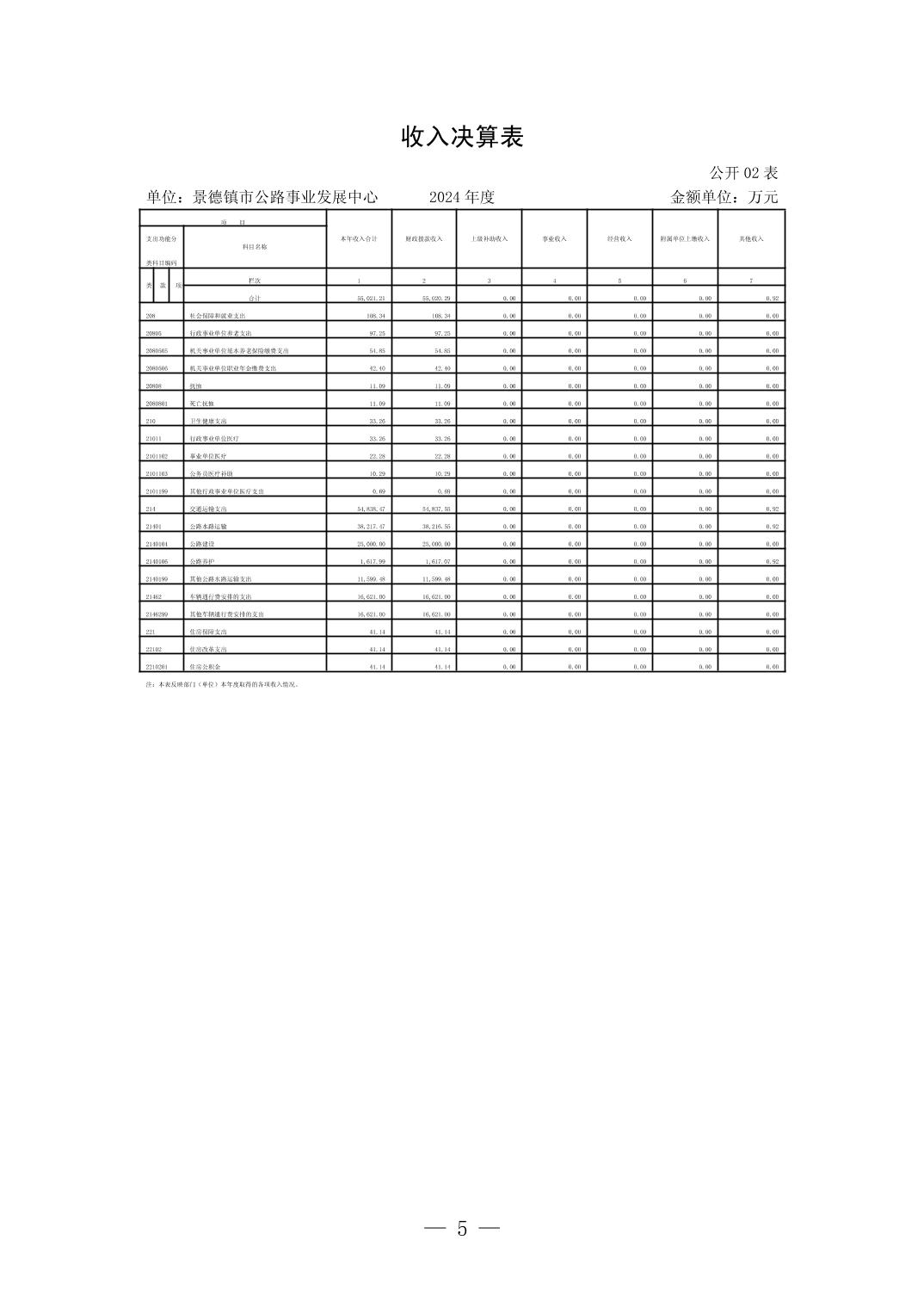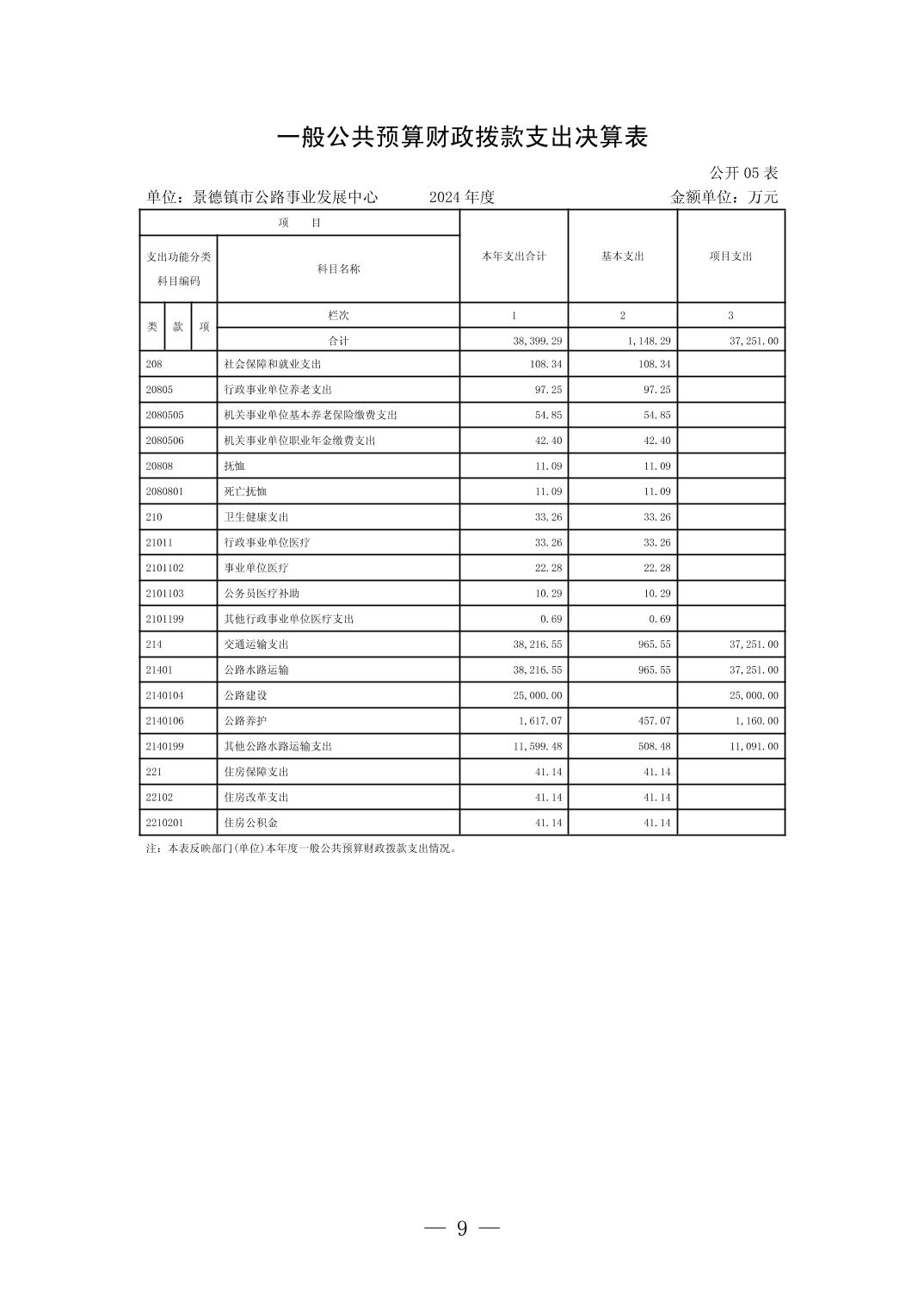景德镇市公路事业发展中心2024年度单位决算