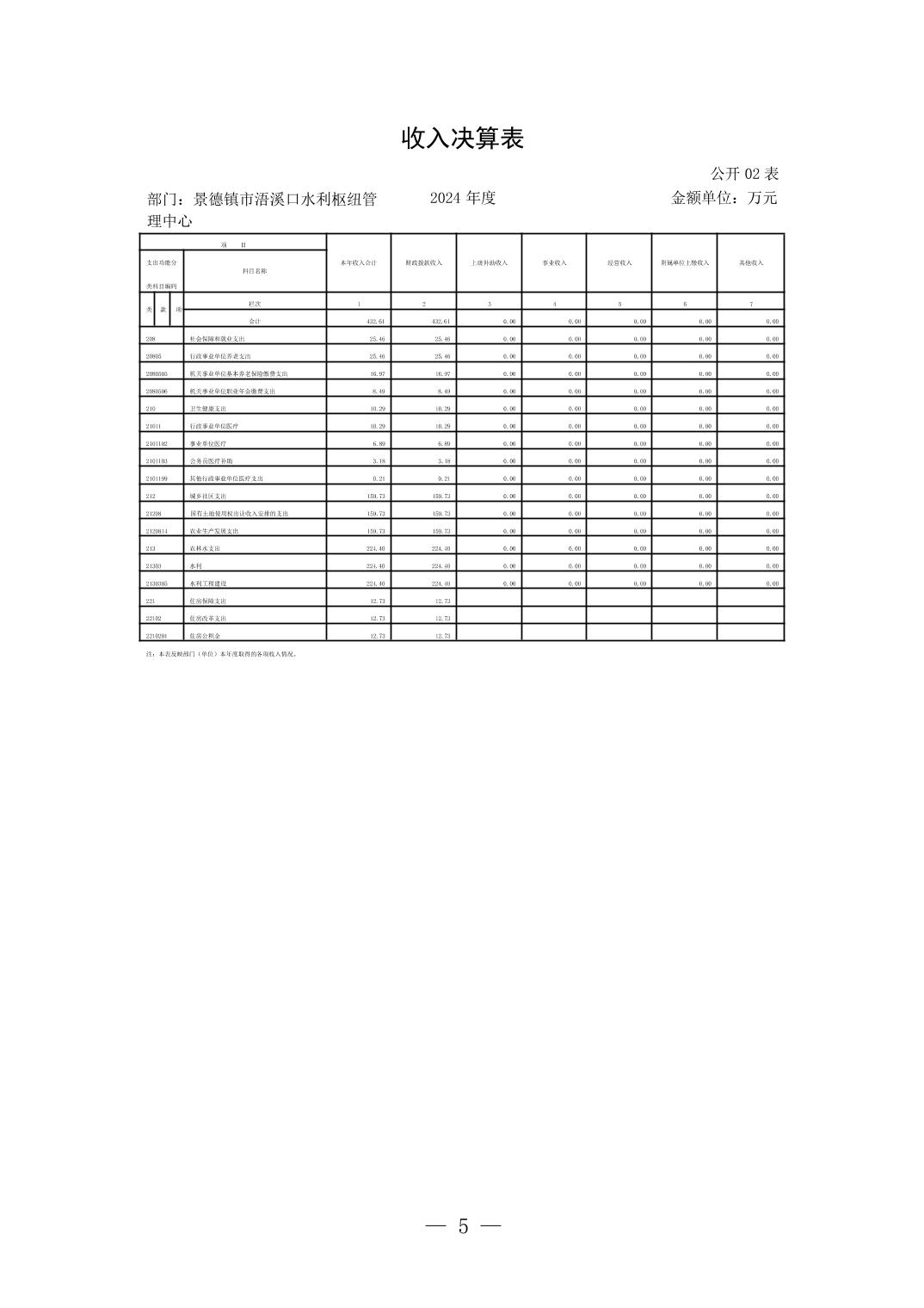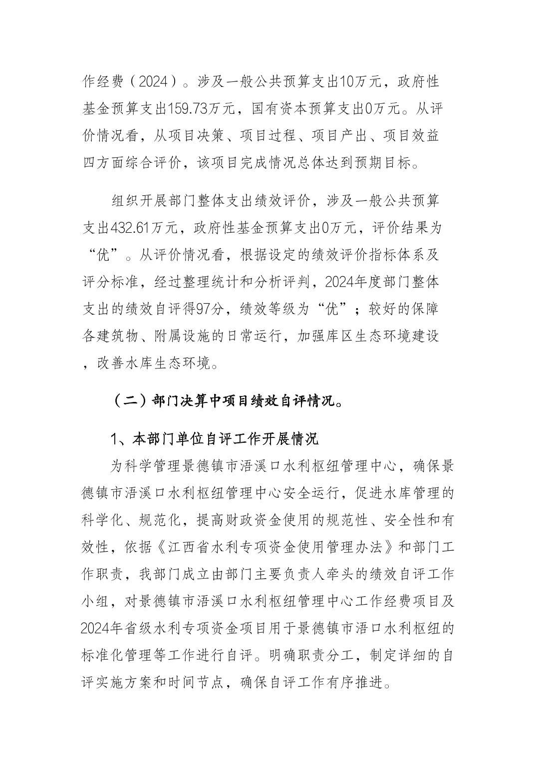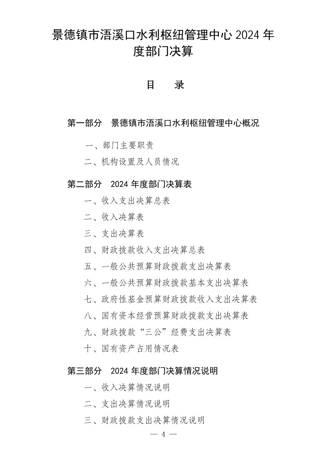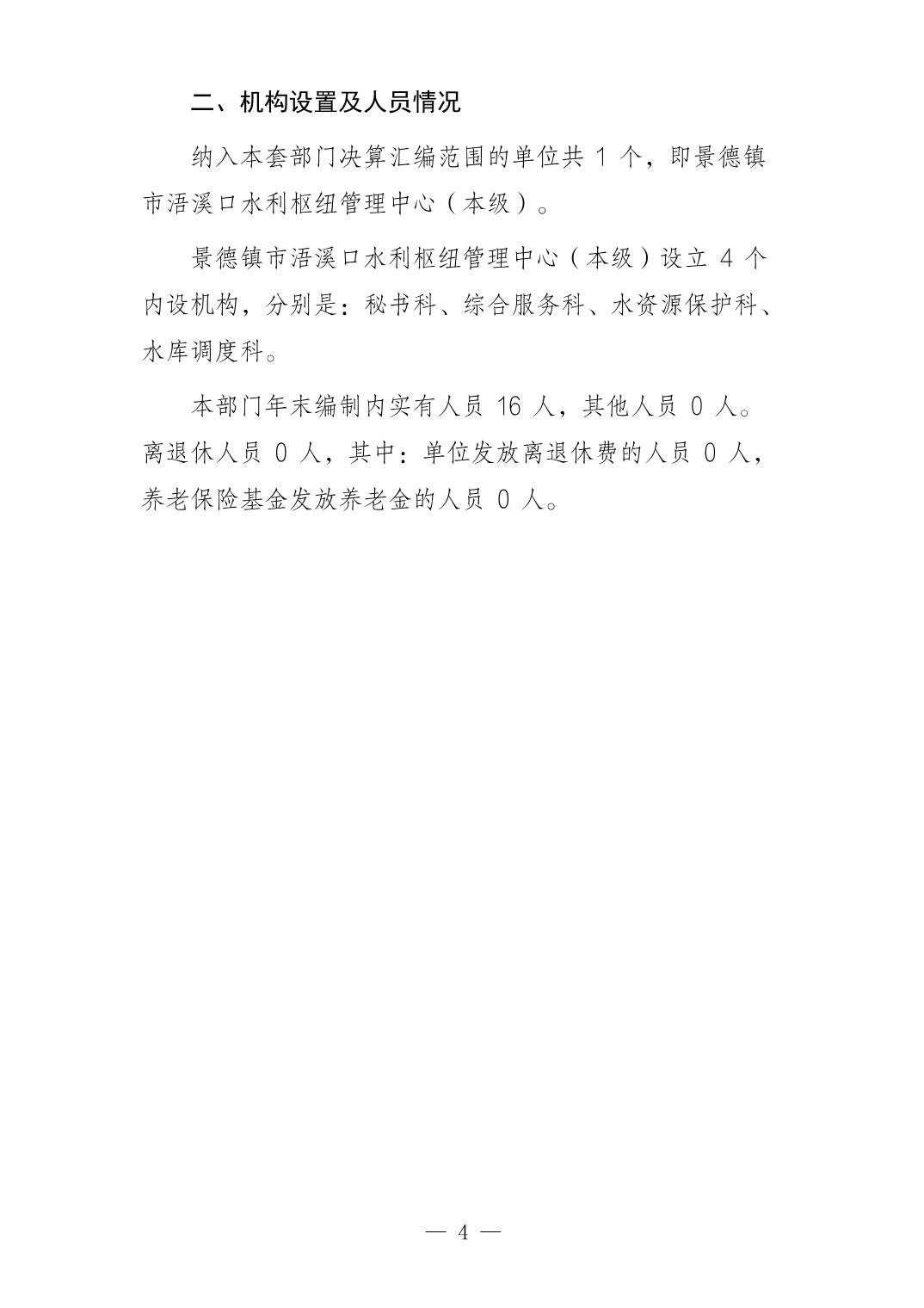 景德镇市浯溪口水利枢纽管理中心2024年度部门决算