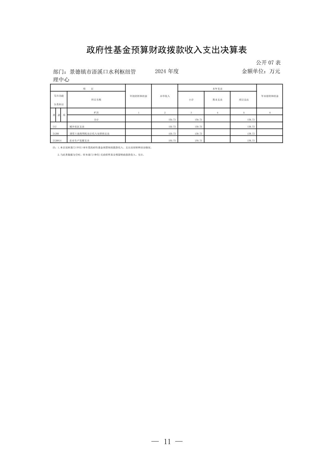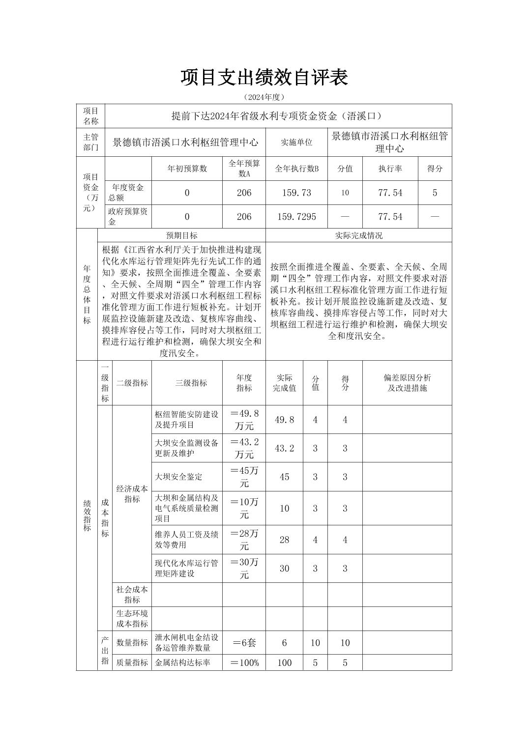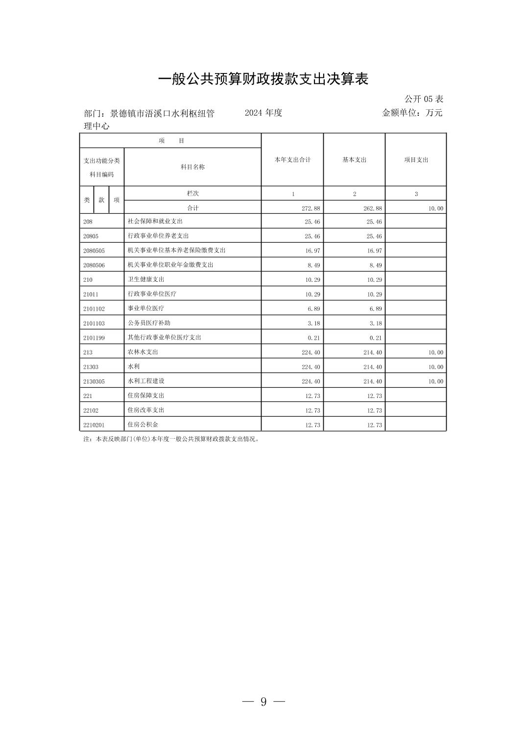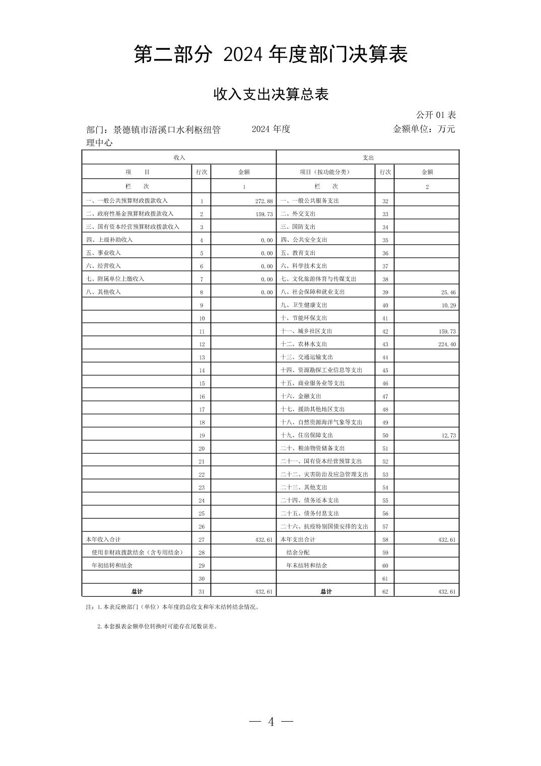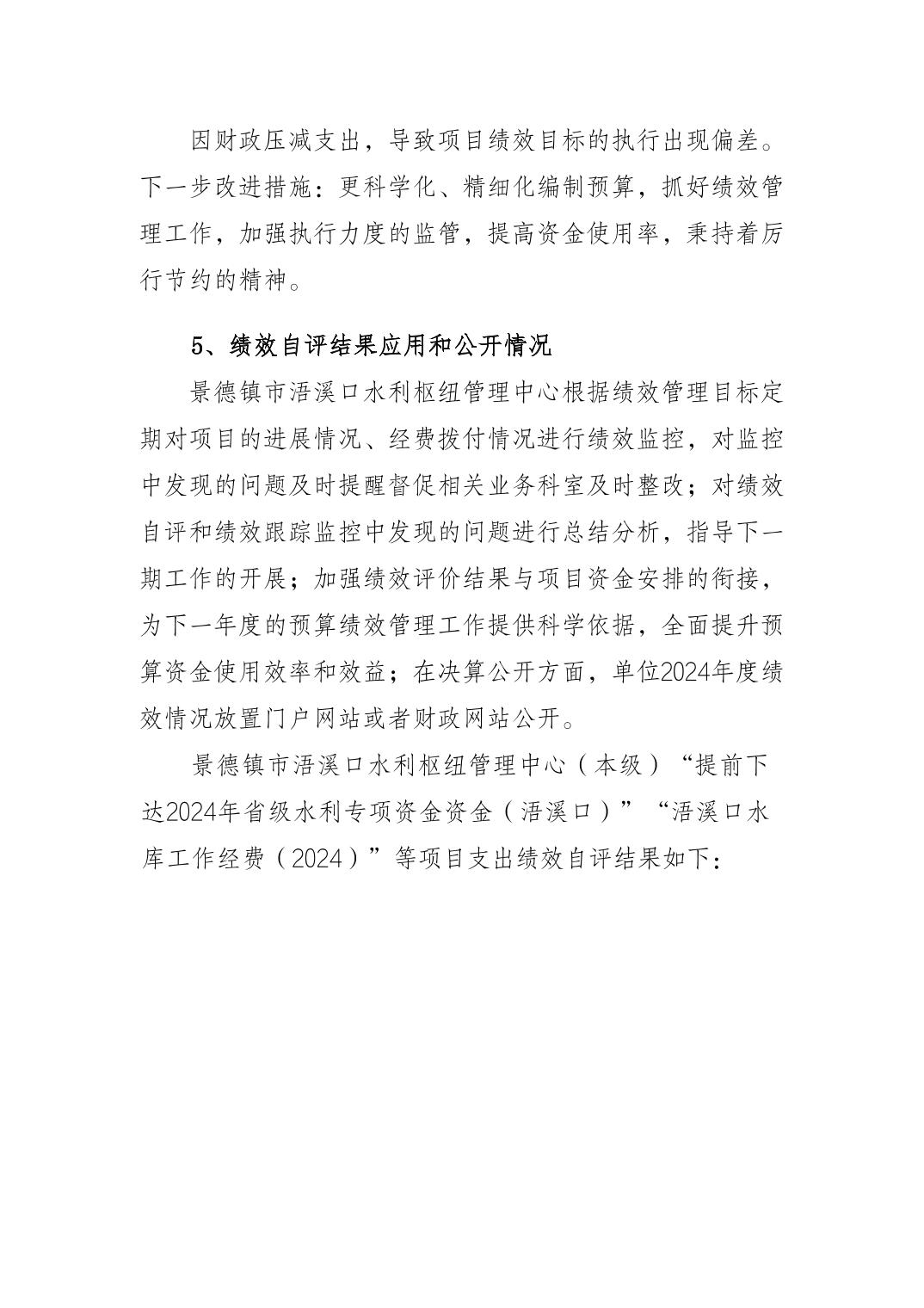 景德镇市浯溪口水利枢纽管理中心2024年度部门决算